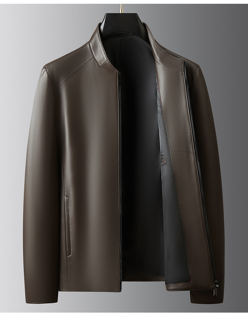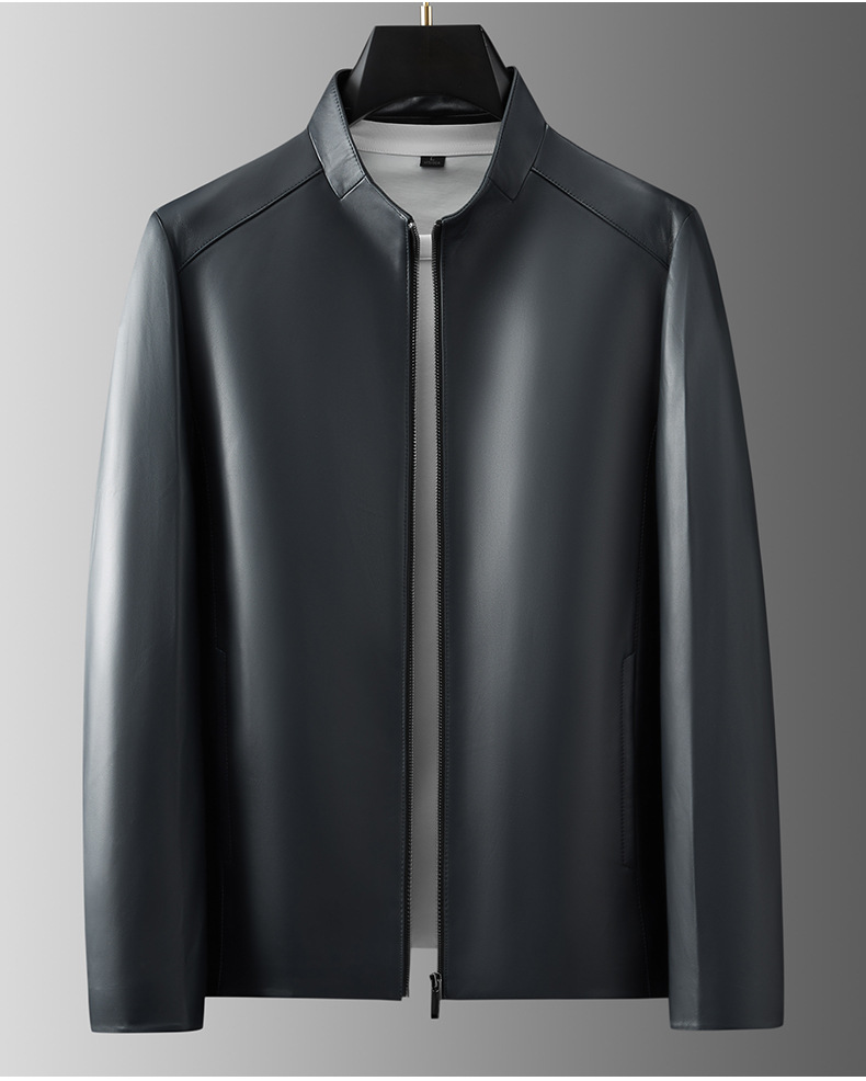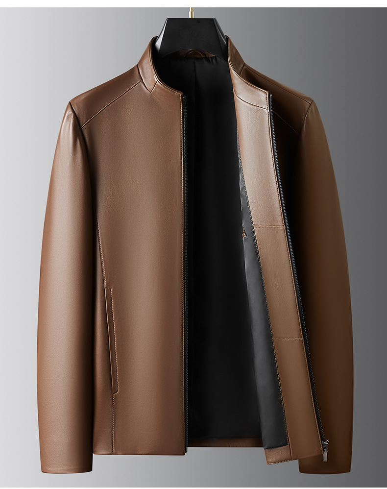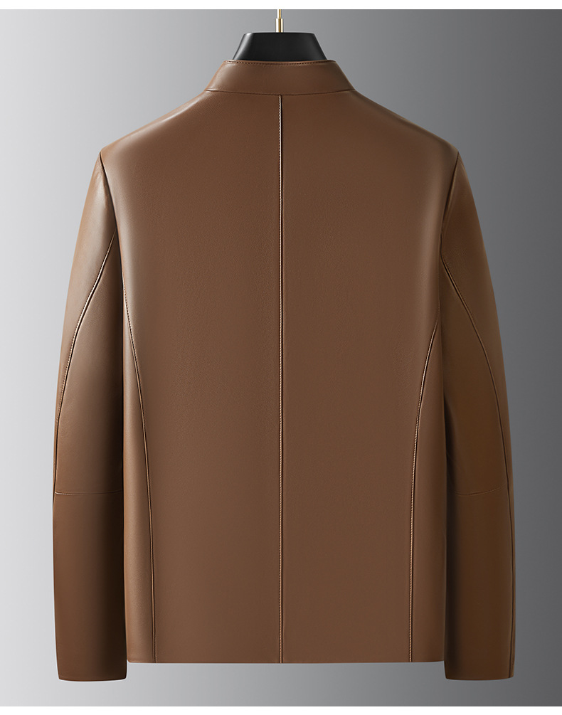 881065 Jaket Kulit Haining Baru Musim Gugur dan Musim Dingin Jaket Kulit Pakaian Kerja Pria Pakaian Bisnis Pria Kulit Kambing