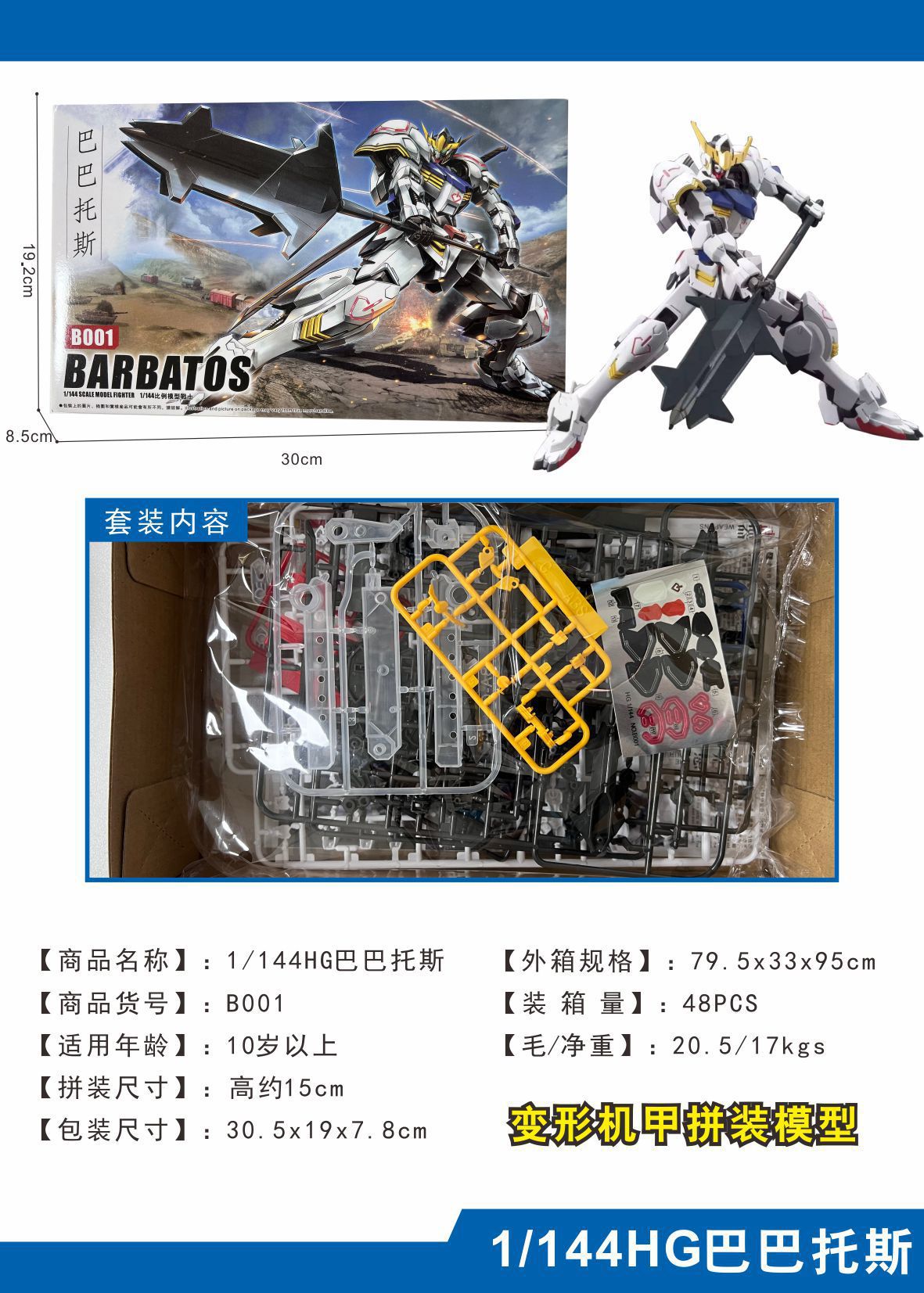高高 HG 巴巴托斯 铁血孤儿团巴尔巴托斯高达模型手办玩具送支架