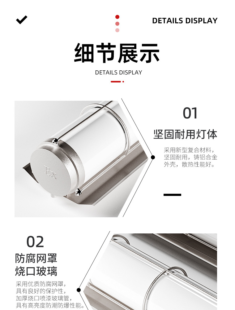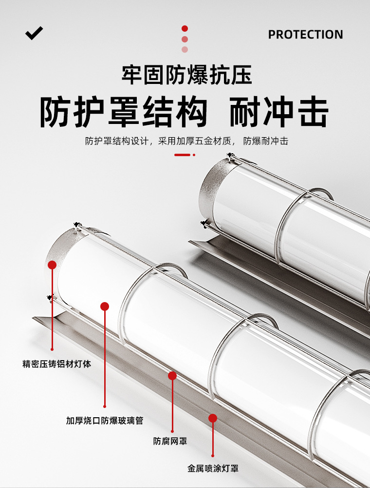 Bengkel industri, pabrik kimia, gudang, lampu tahan tiga kondisi, lampu tabung fluorescent LED terintegrasi pelindung, penerangan gudang