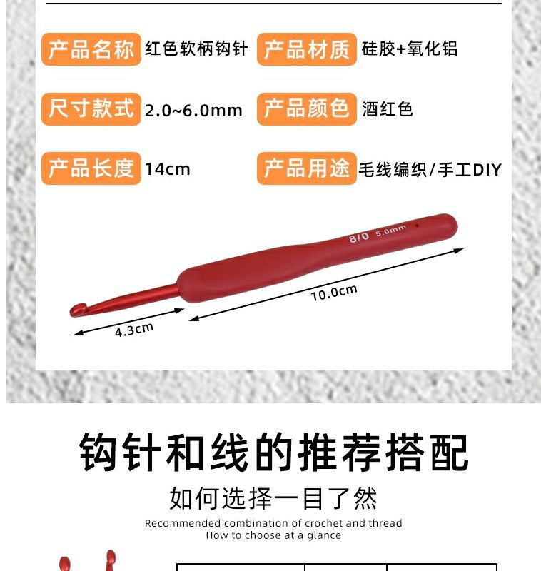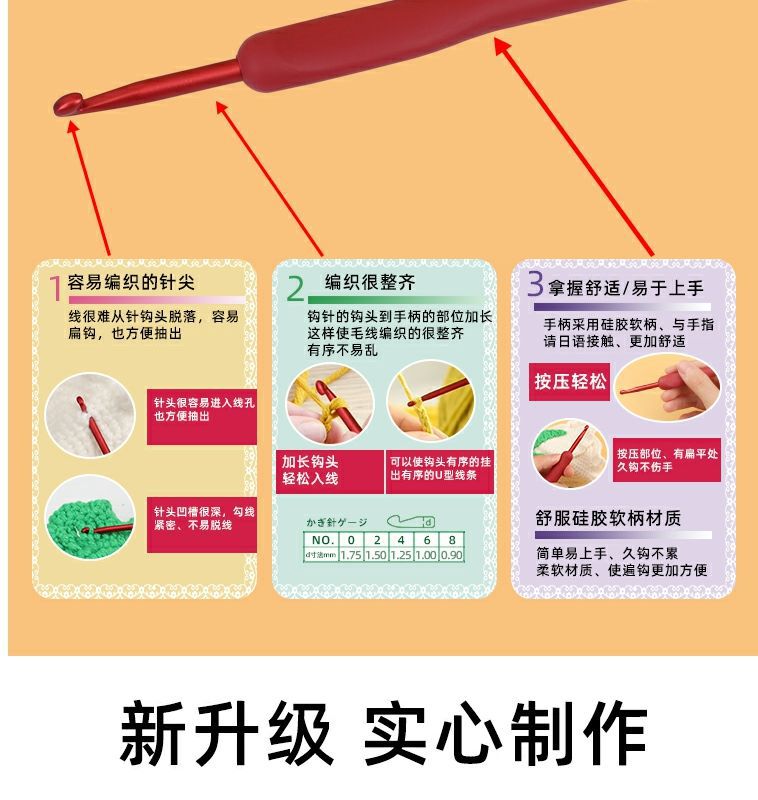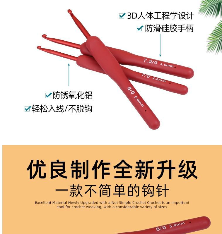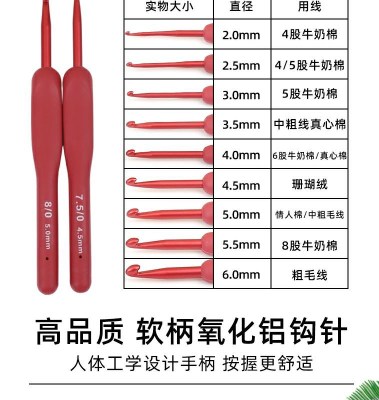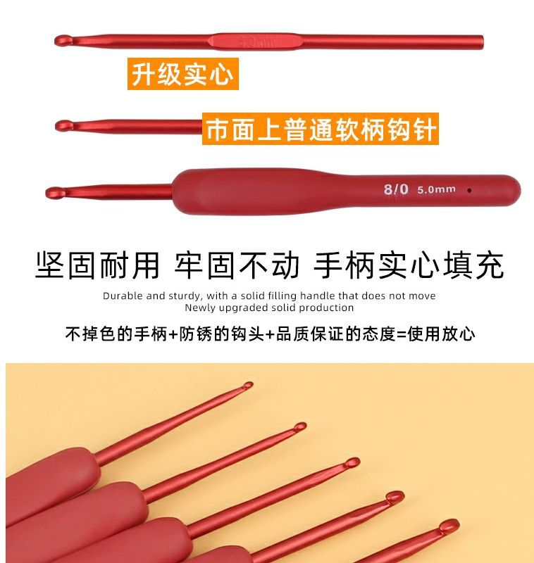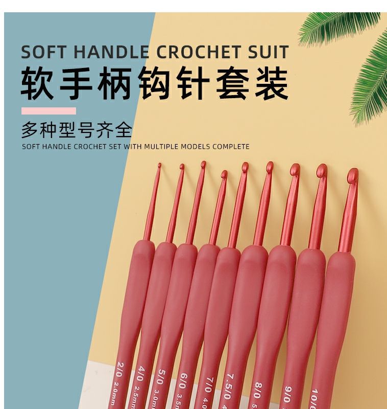 Alat rajut tangan pegangan lembut crochet silikon karang merah baru setelan peralatan jahit tangan tenun set lengkap bukan A3 crochet