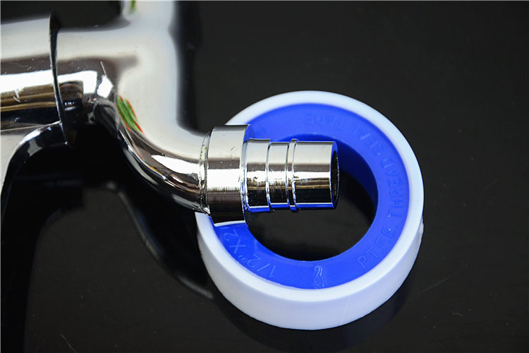 4.将水龙头进口水套如装饰盖,在螺纹缠上生料带,然后璇如安装管口。