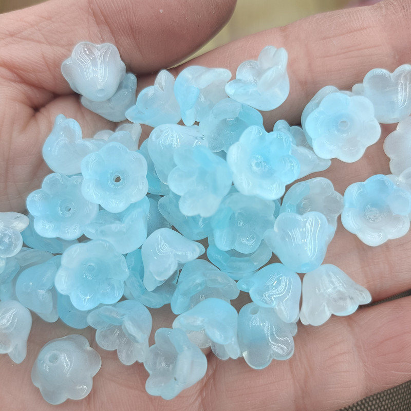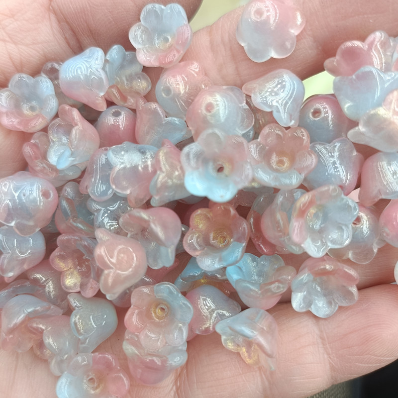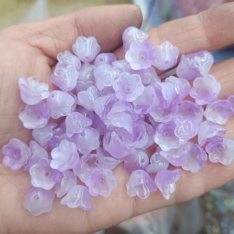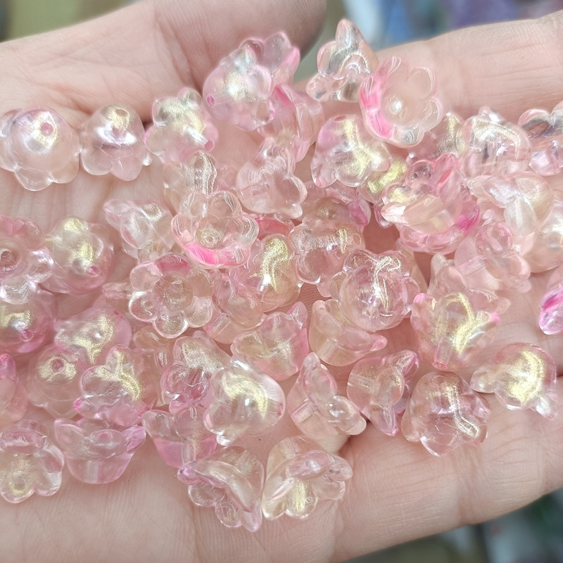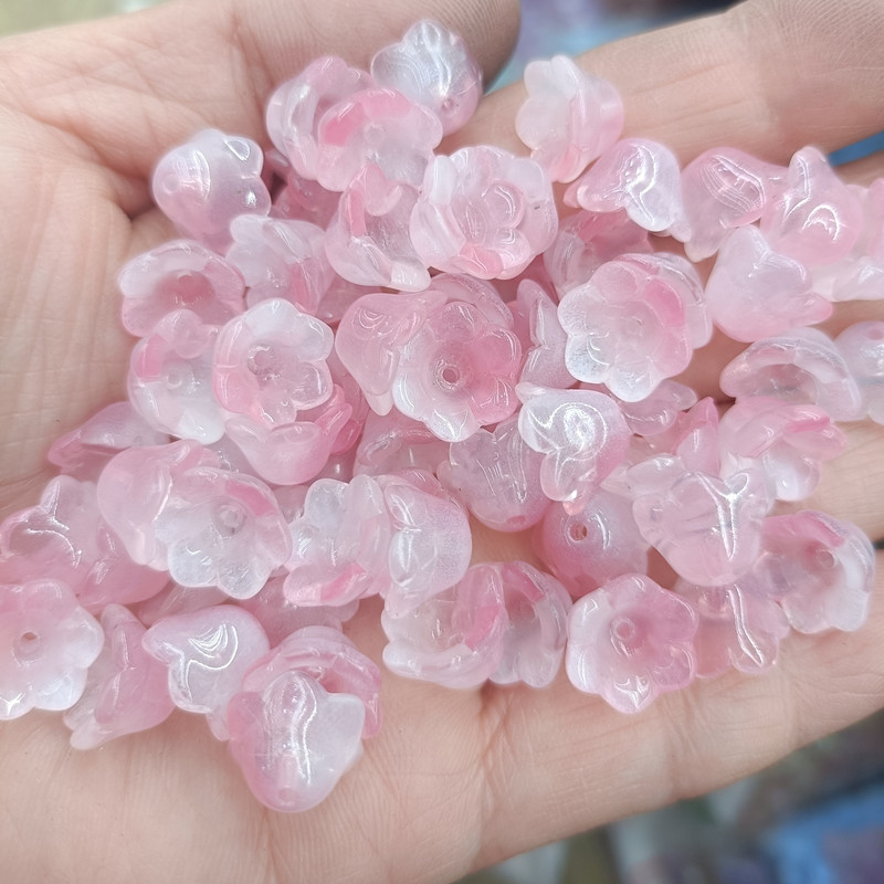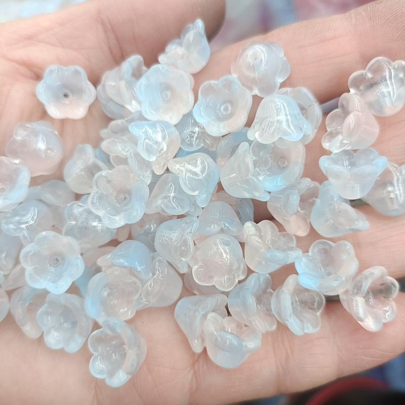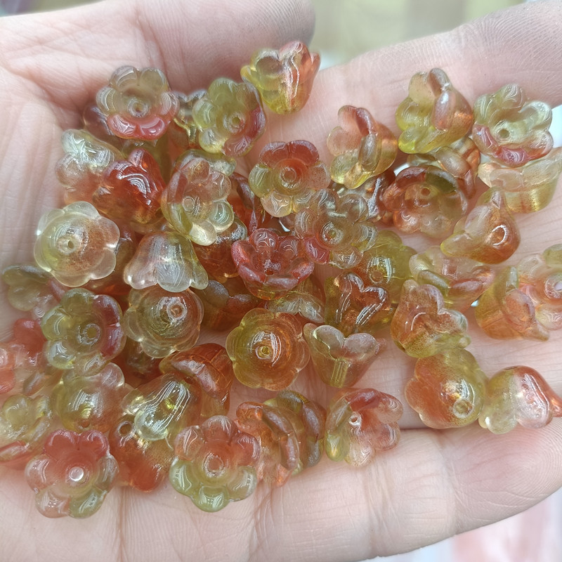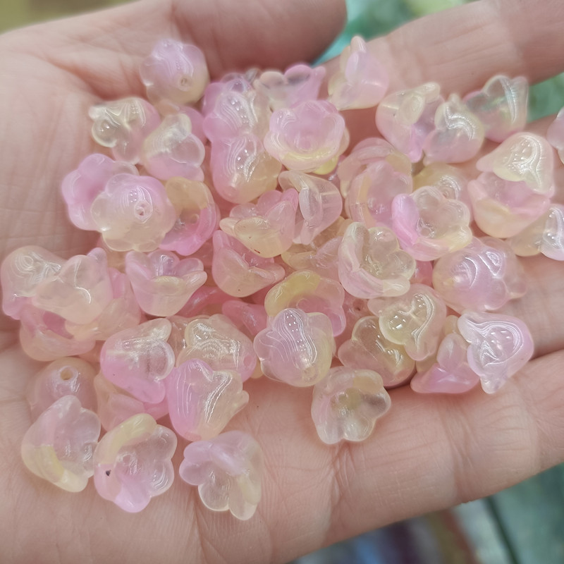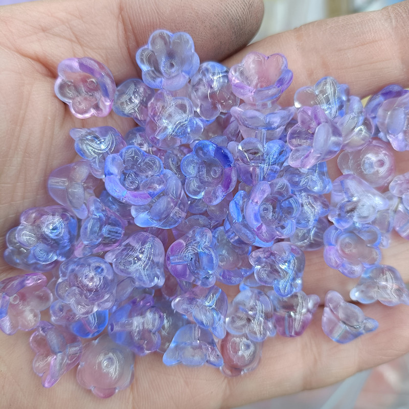 Manik-manik bunga lonceng angin dua warna kristal, manik-manik kaca gradasi berlubang, alas bunga buatan tangan DIY, aksesoris perhiasan.