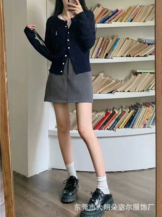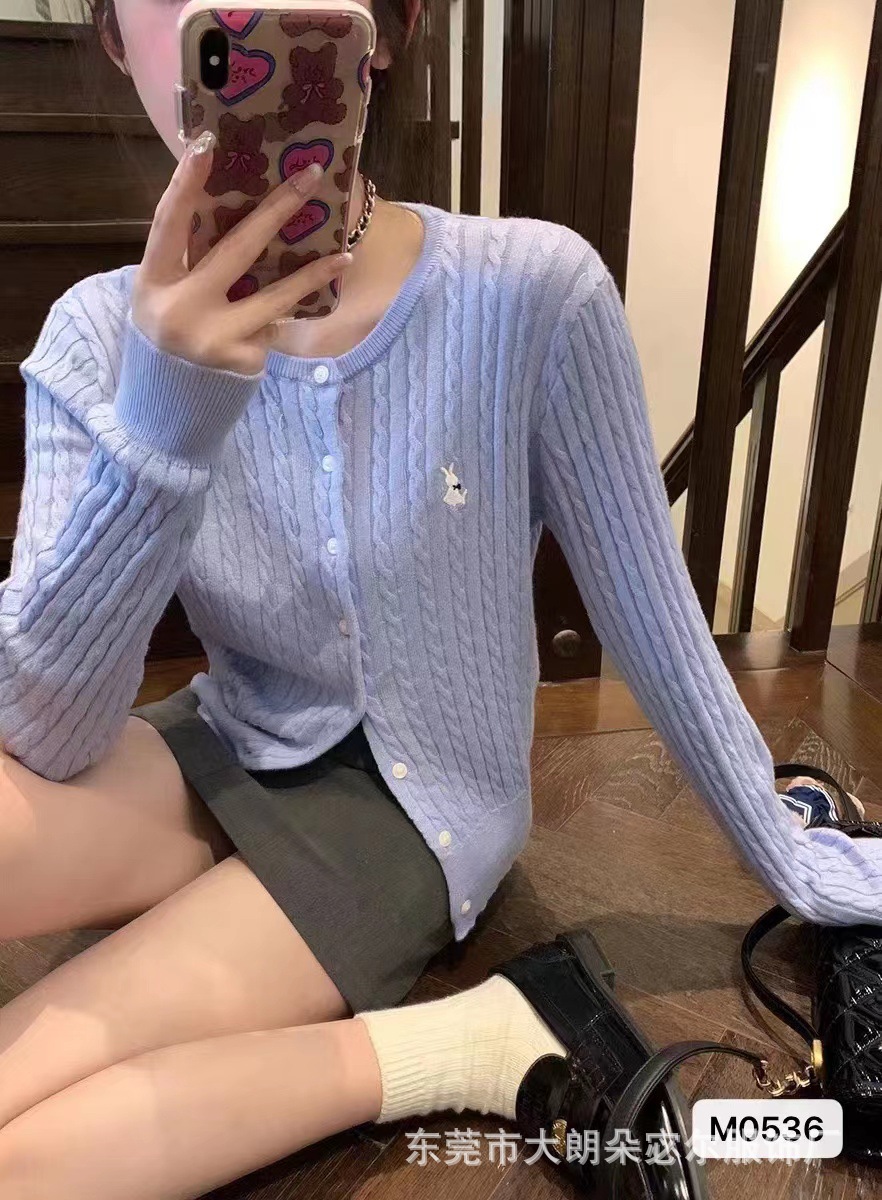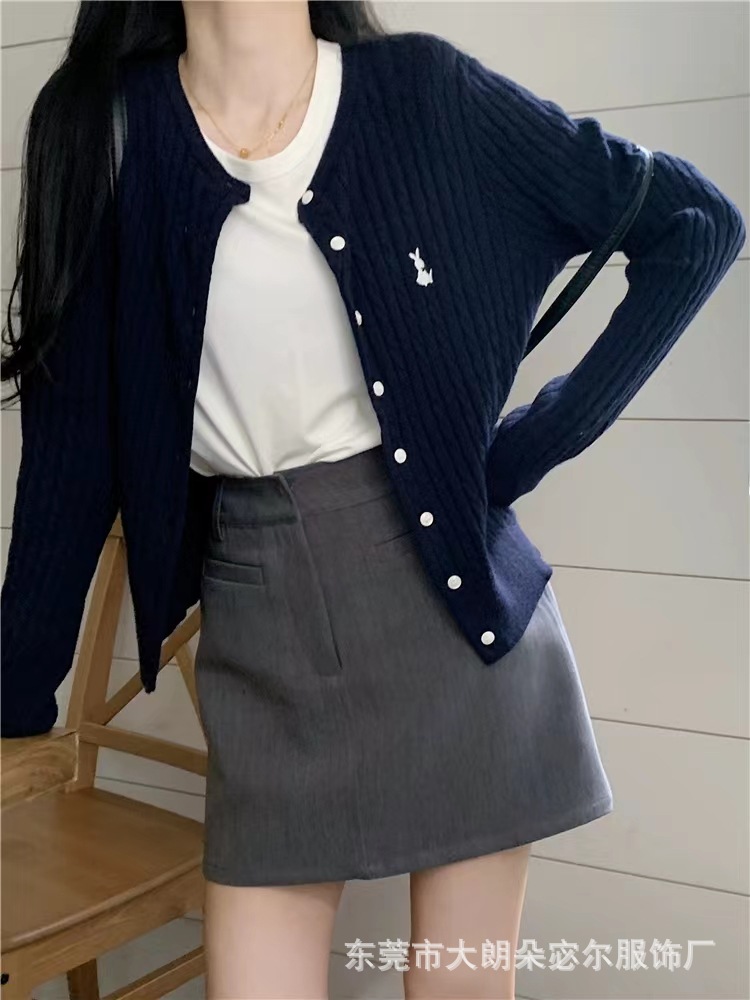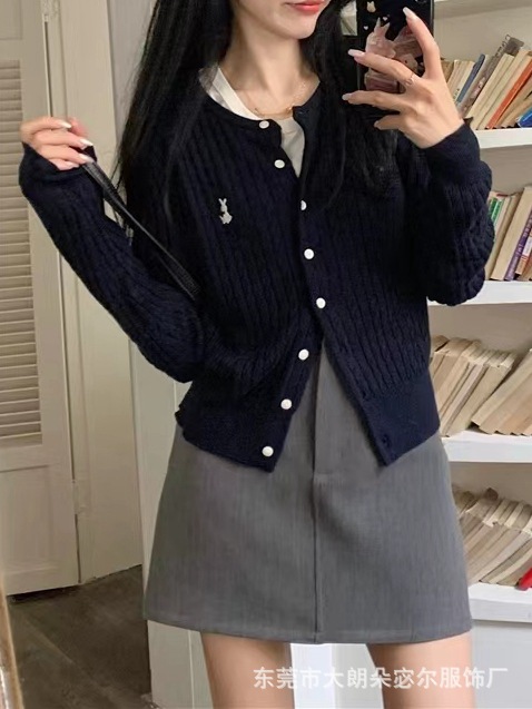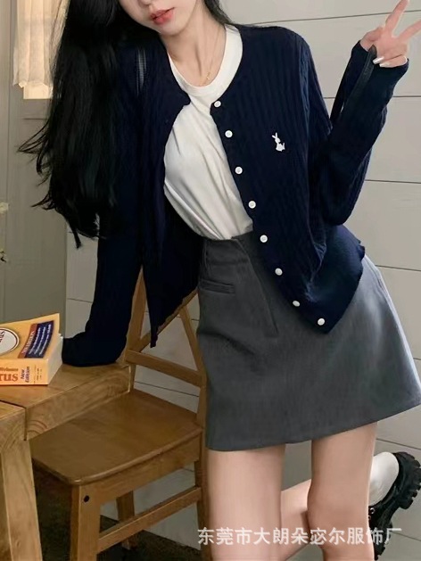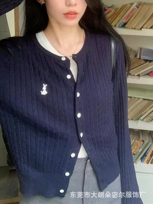 Mantel kardigan rajut bordir gaya Preppy untuk wanita, atasan lengan panjang longgar retro Amerika baru musim gugur 2023