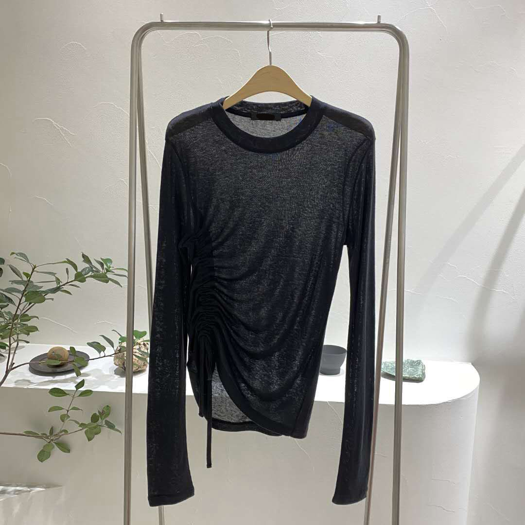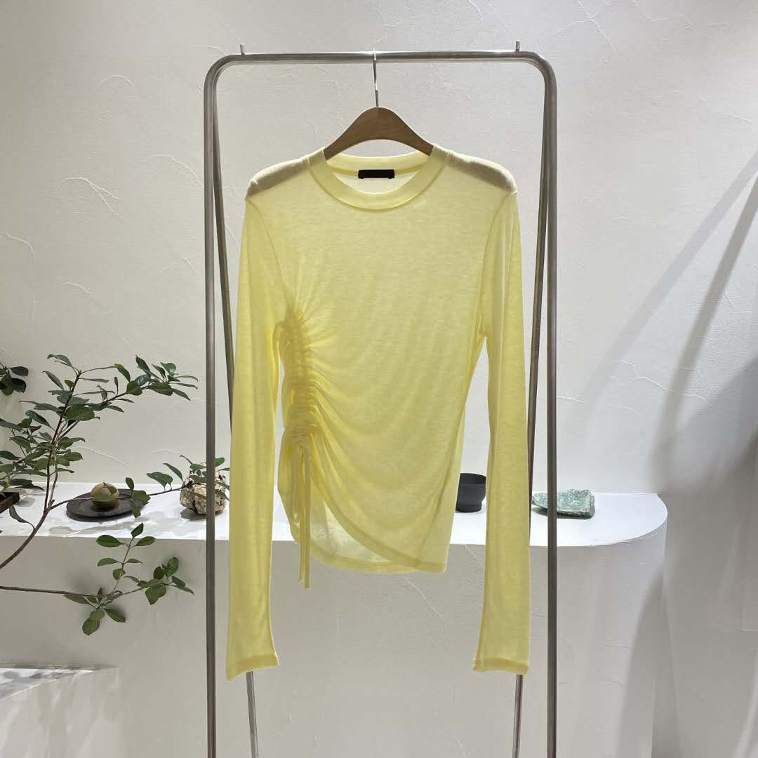 Penawaran khusus kaus pelindung matahari ~ 2024 musim panas baru nyaman tali serut warna polos tipis lengan panjang kaus leher bulat
