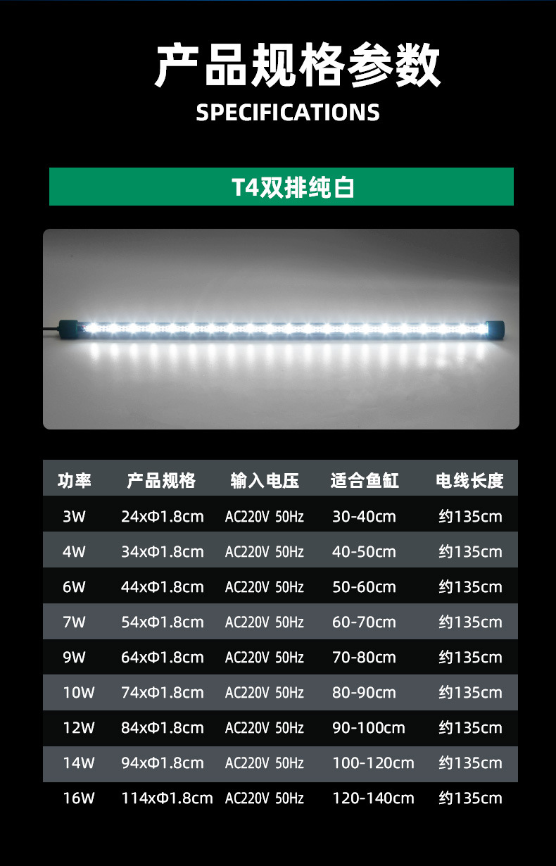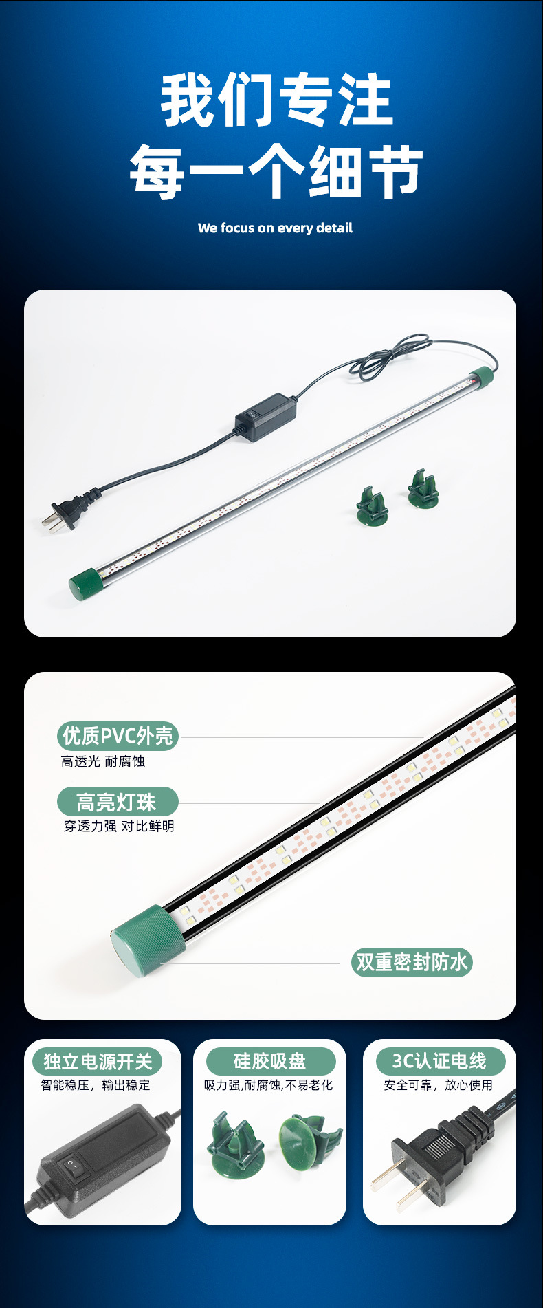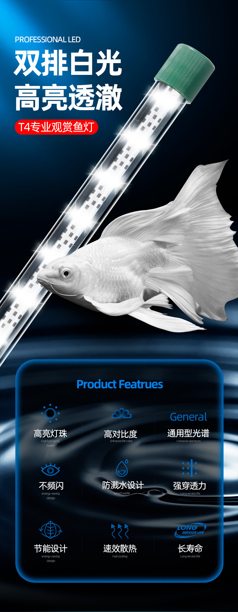 Lampu LED tangki ikan, cahaya super terang putih tahan air kupu-kupu ikan karper ornamental cahaya sedotan air