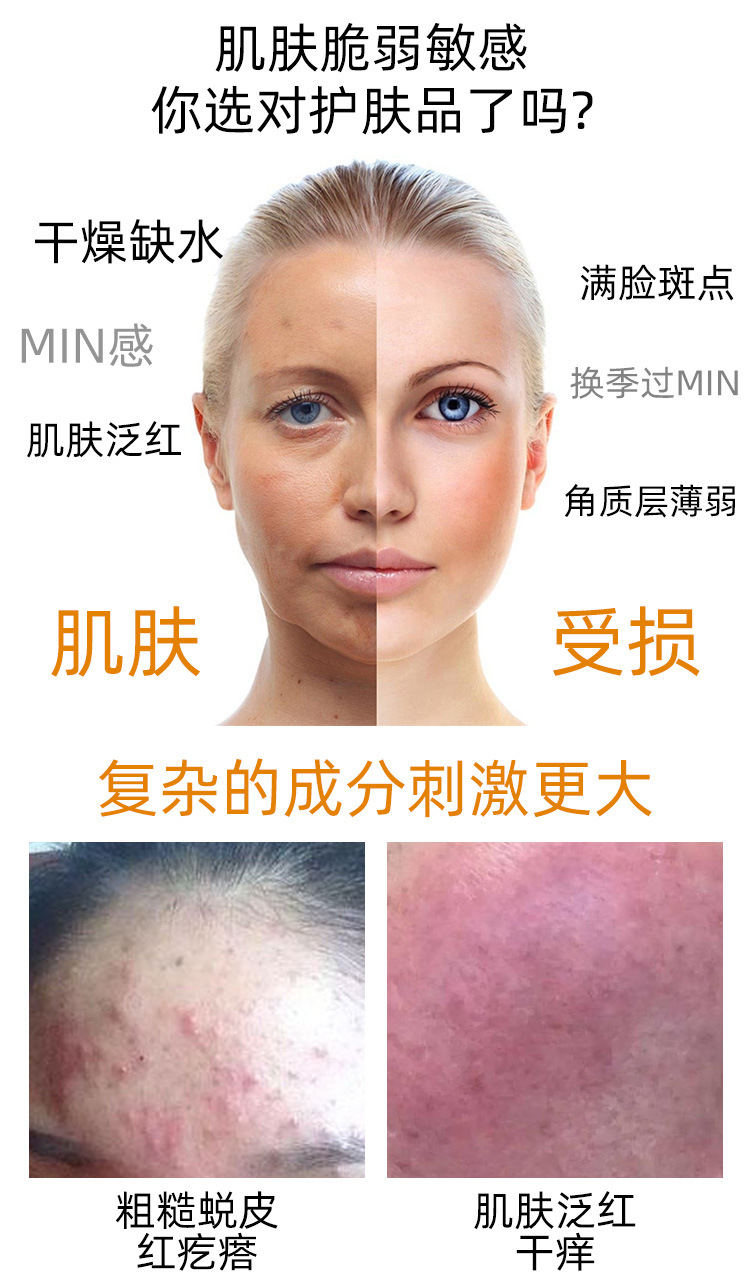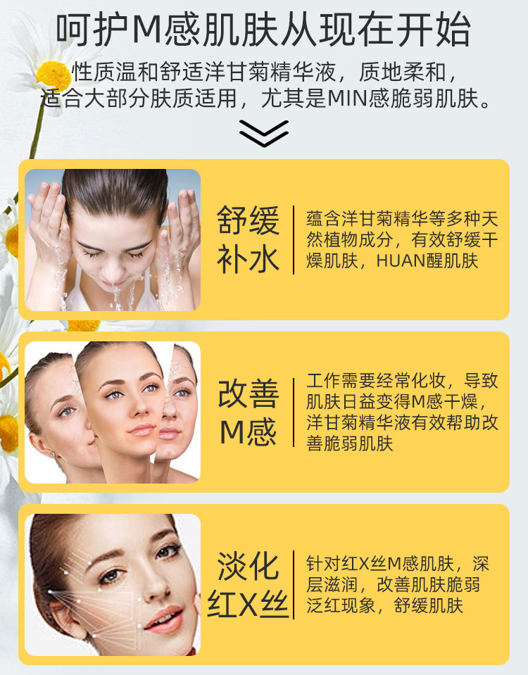 Esensi chamomile kelas atas, cairan alergi memperbaiki kulit menenangkan perbaikan kulit sensitif penghalang sutra darah merah