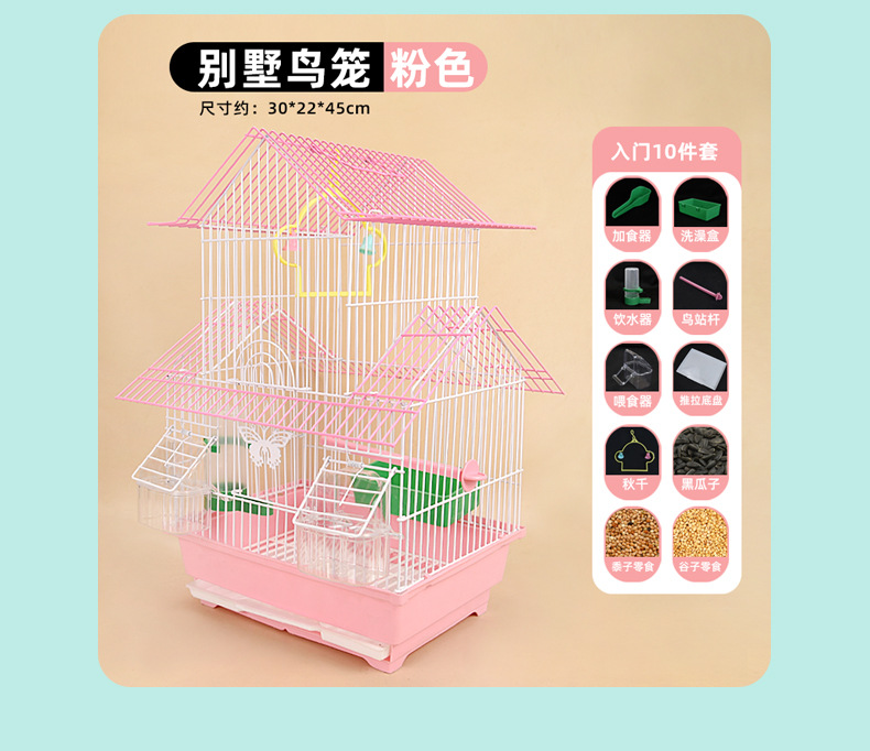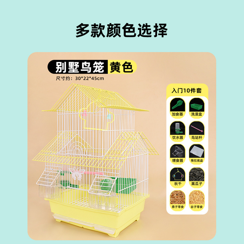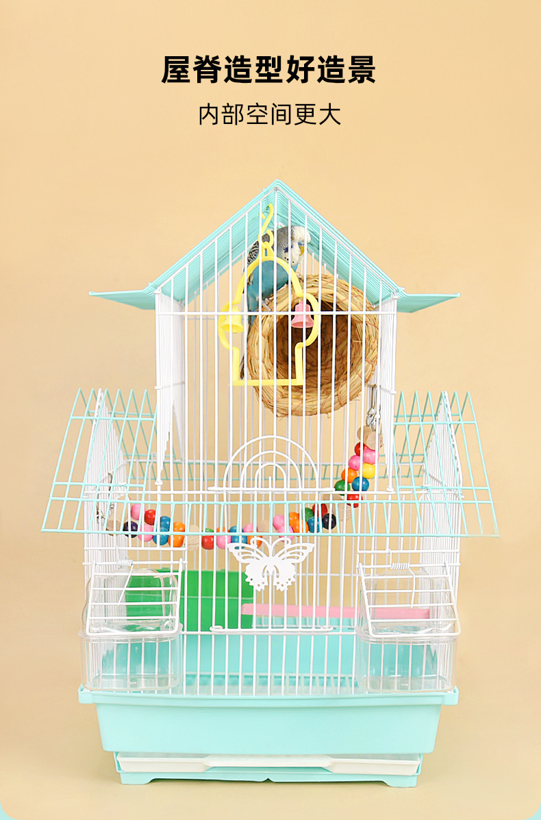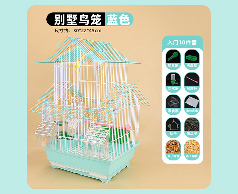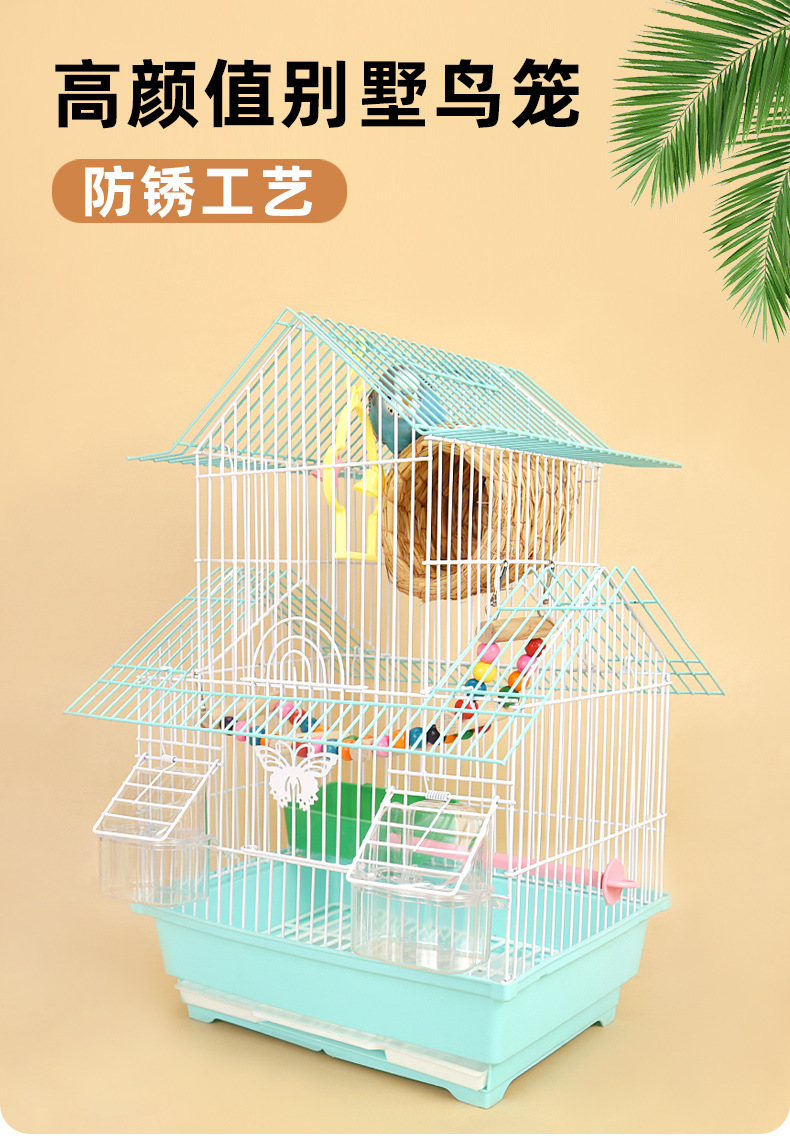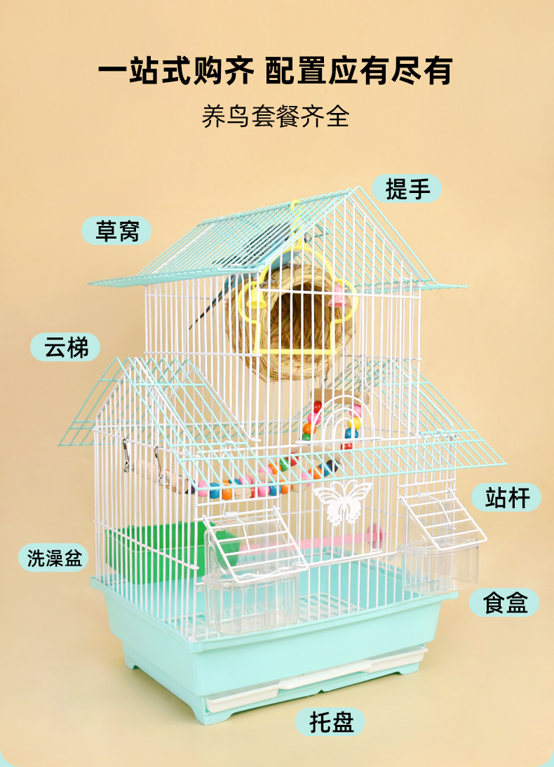 Sangkar burung bayan kulit harimau kandang burung hidup Xuanfeng suapan saudara berjemur alis menniao set lengkap lapisan ganda kecil sedang mewah kandang besar