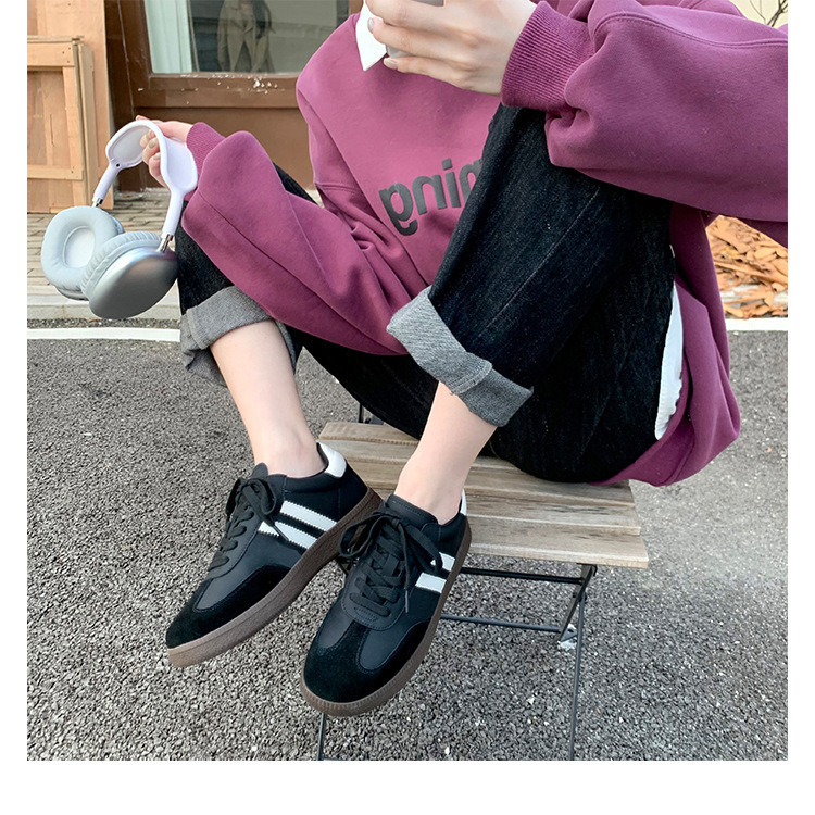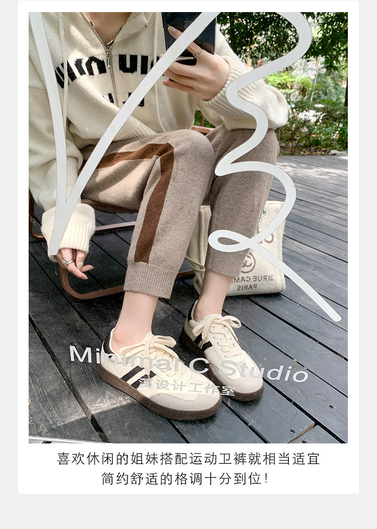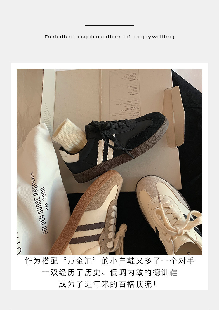 Sepatu sneakers kulit asli putih untuk wanita, model baru musim semi 2026, retro serbaguna dengan warna-warna kontras, sol tebal, sepatu olahraga kasual, sepatu training Jerman untuk wanita.