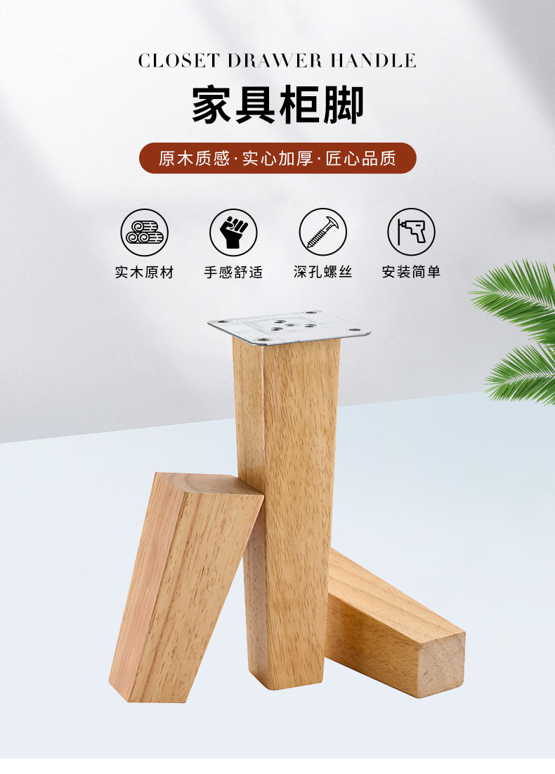 Aksesori kayu padat persegi kaki furnitur kaki meja kaki datar kaki meja kayu persegi kaki sofa kaki kayu solid kaki Kabinet kaki miring