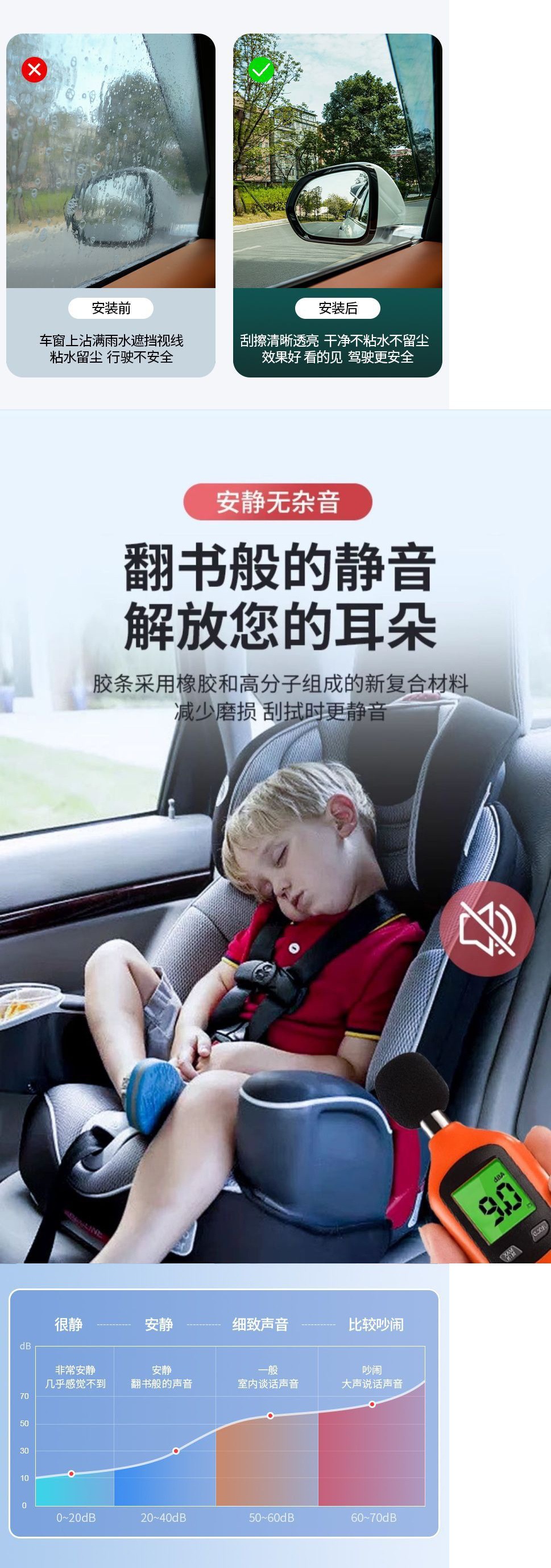 汽车侧窗玻璃雨刮器 车窗雨刷器 主副驾驶两侧玻璃刮水雾去除神器