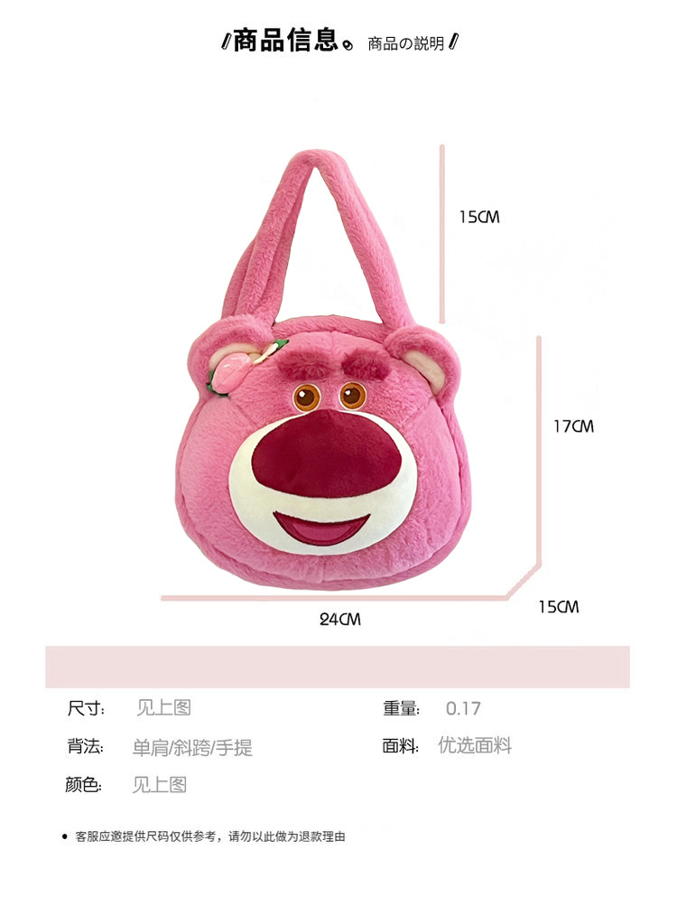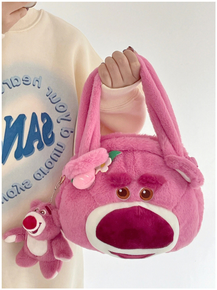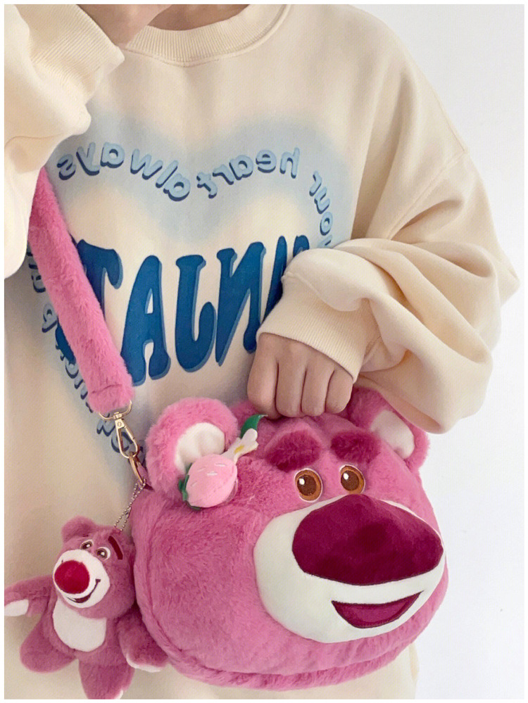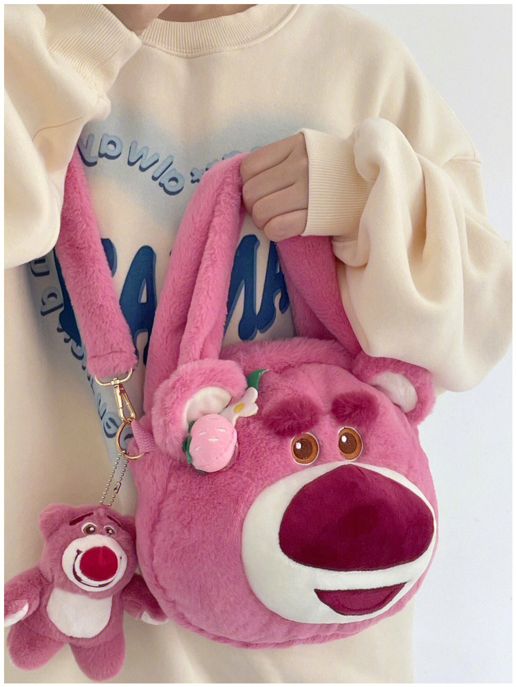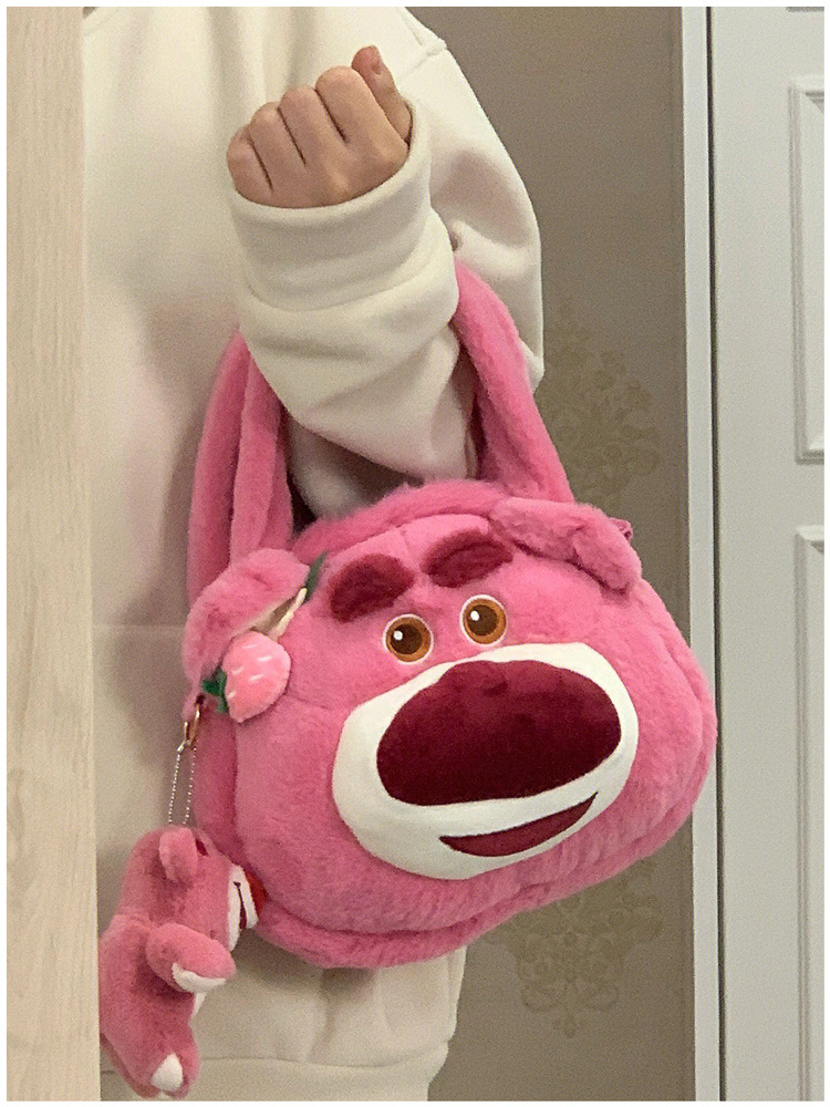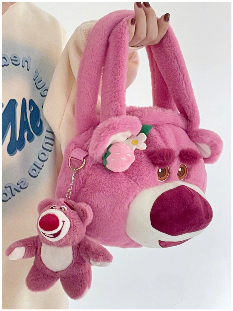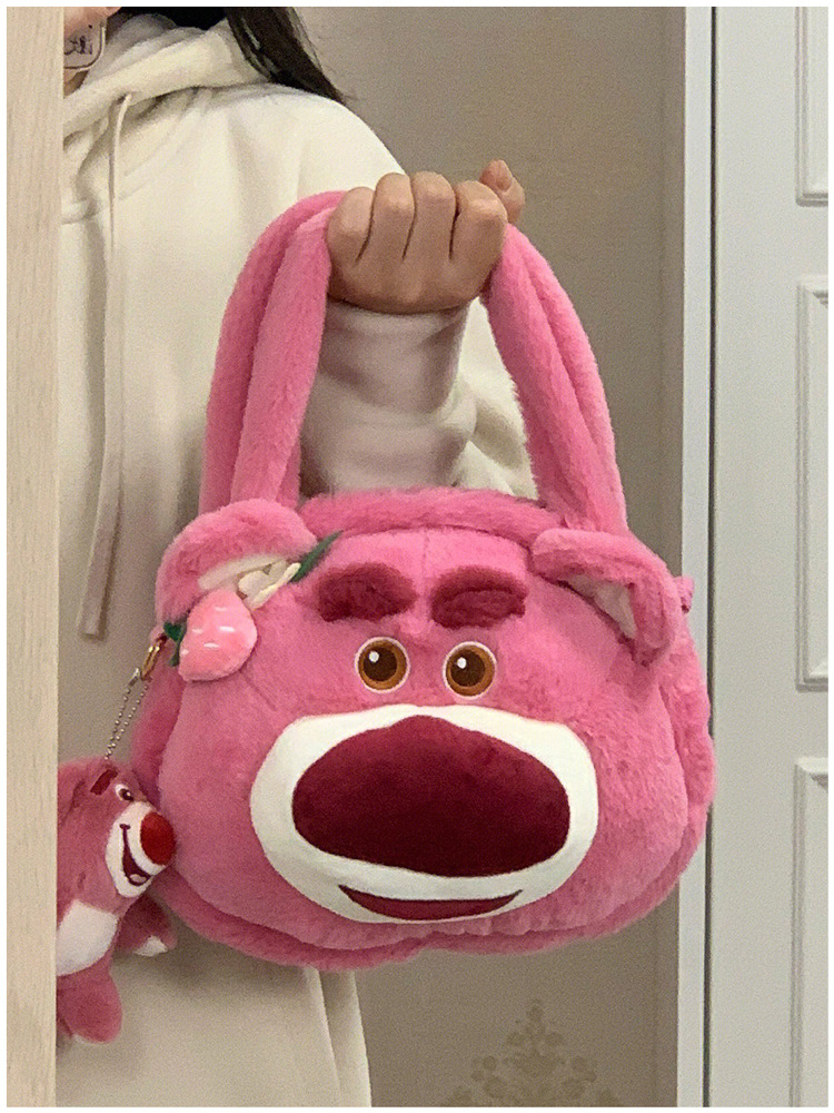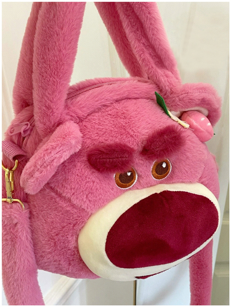 Tas kurir beruang stroberi lucu untuk wanita, tas tangan modis baru 2022, tas kurir bahu berbulu kartun