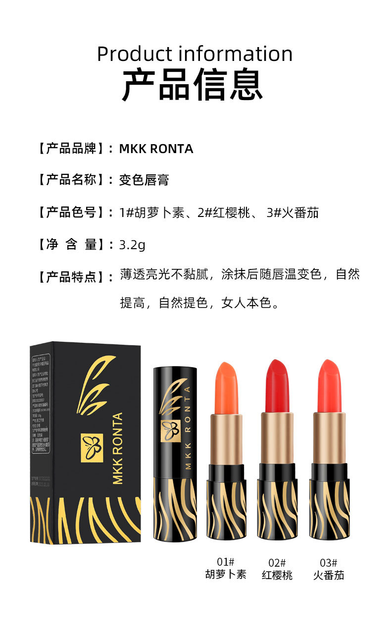 MKK RONTA lipstik warna berubah tahan lama, pelembab tahan lama tidak mudah disentuh cangkir tidak mudah pudar