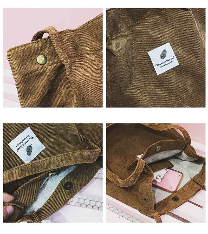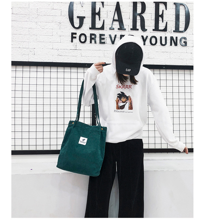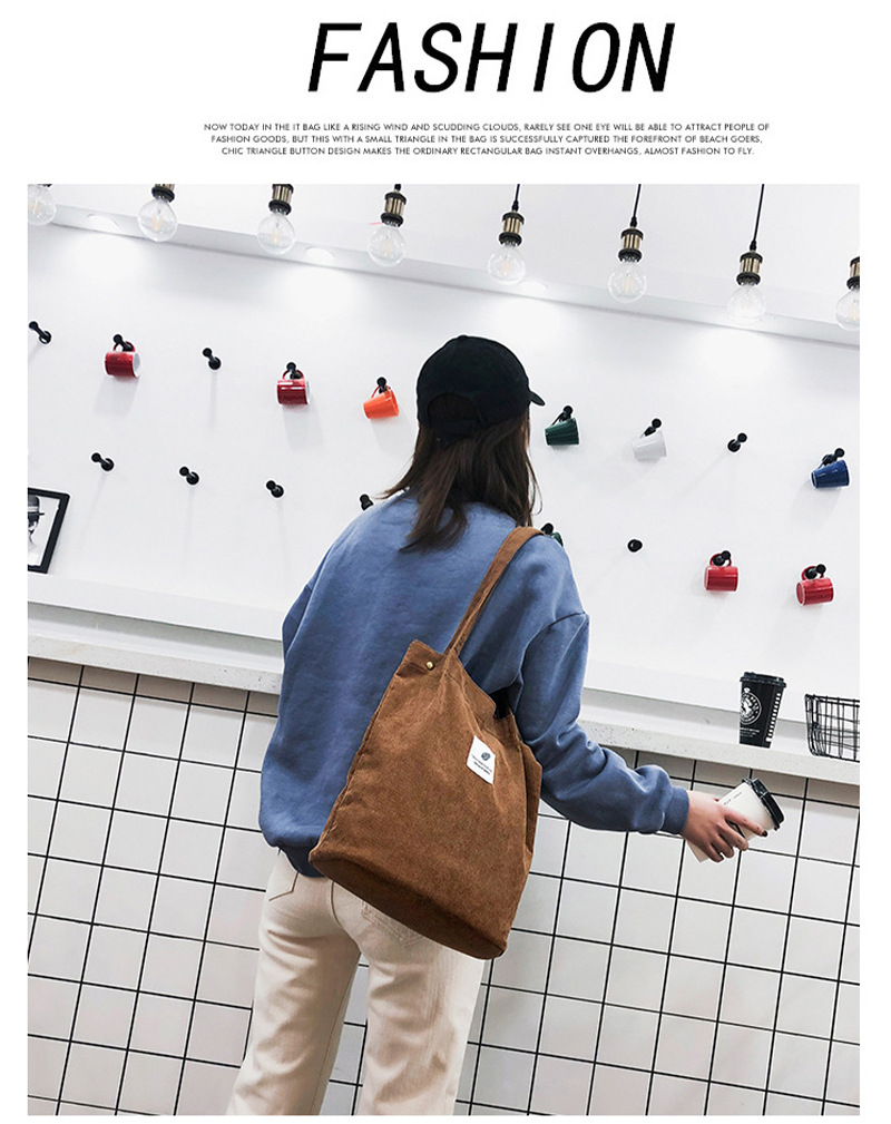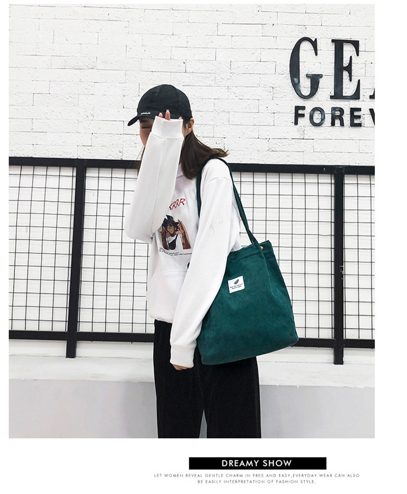 Tas belanja korduroi lipat kasual, tas tote ringan dapat digunakan kembali berkualitas ramah lingkungan