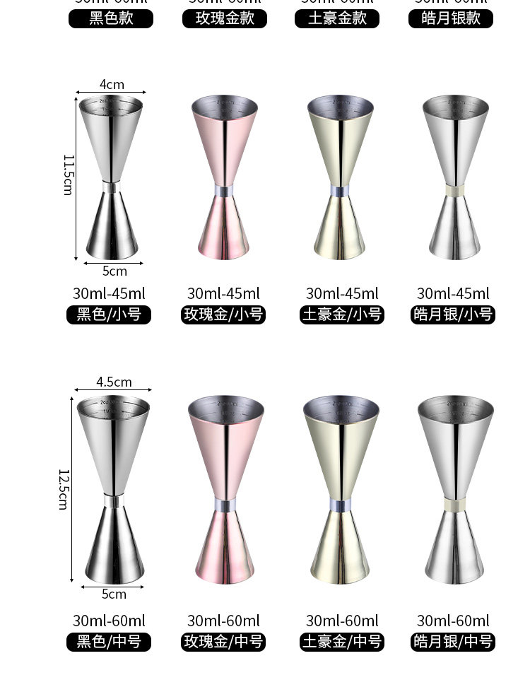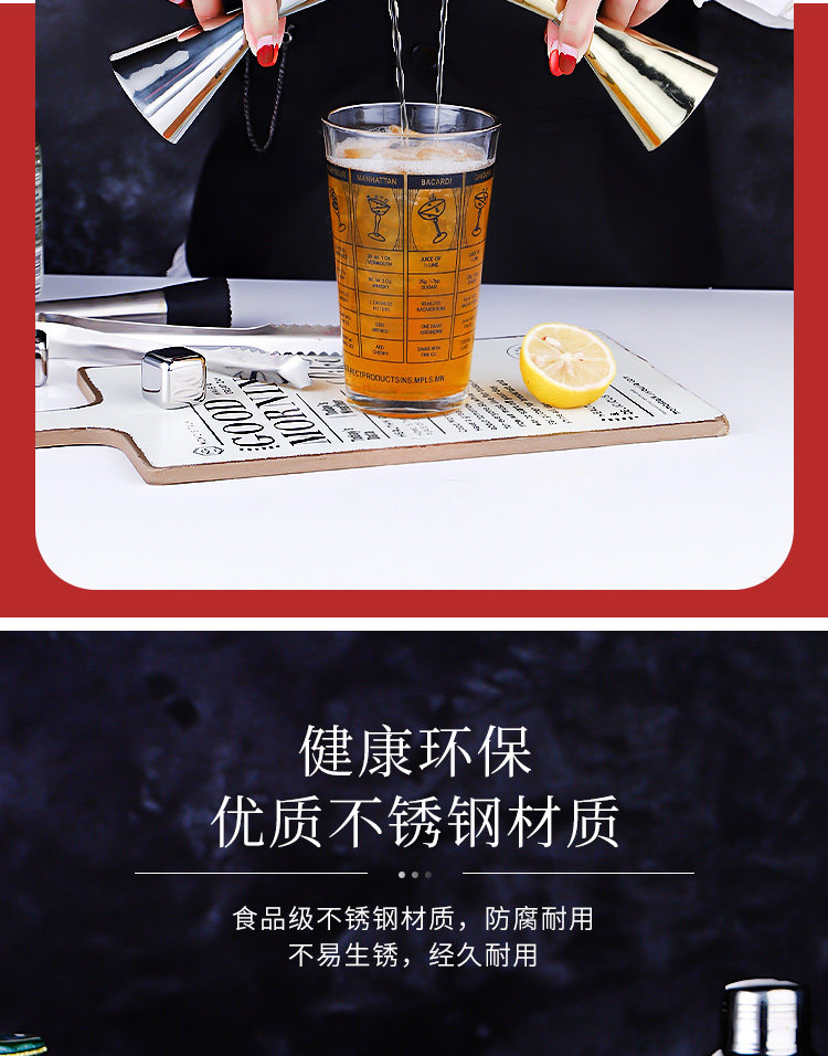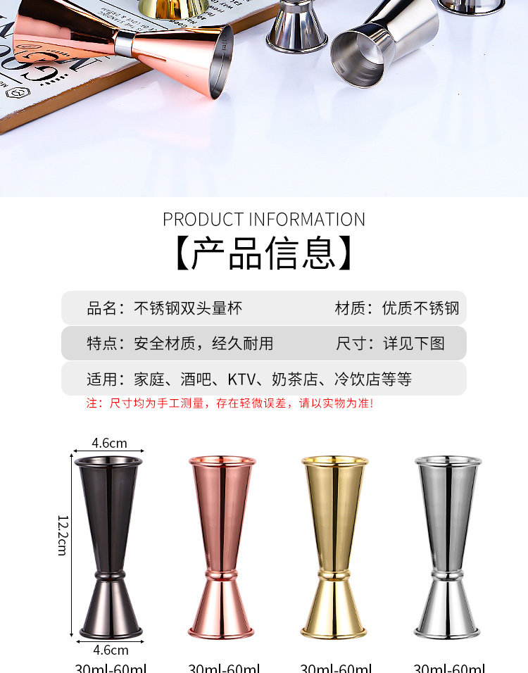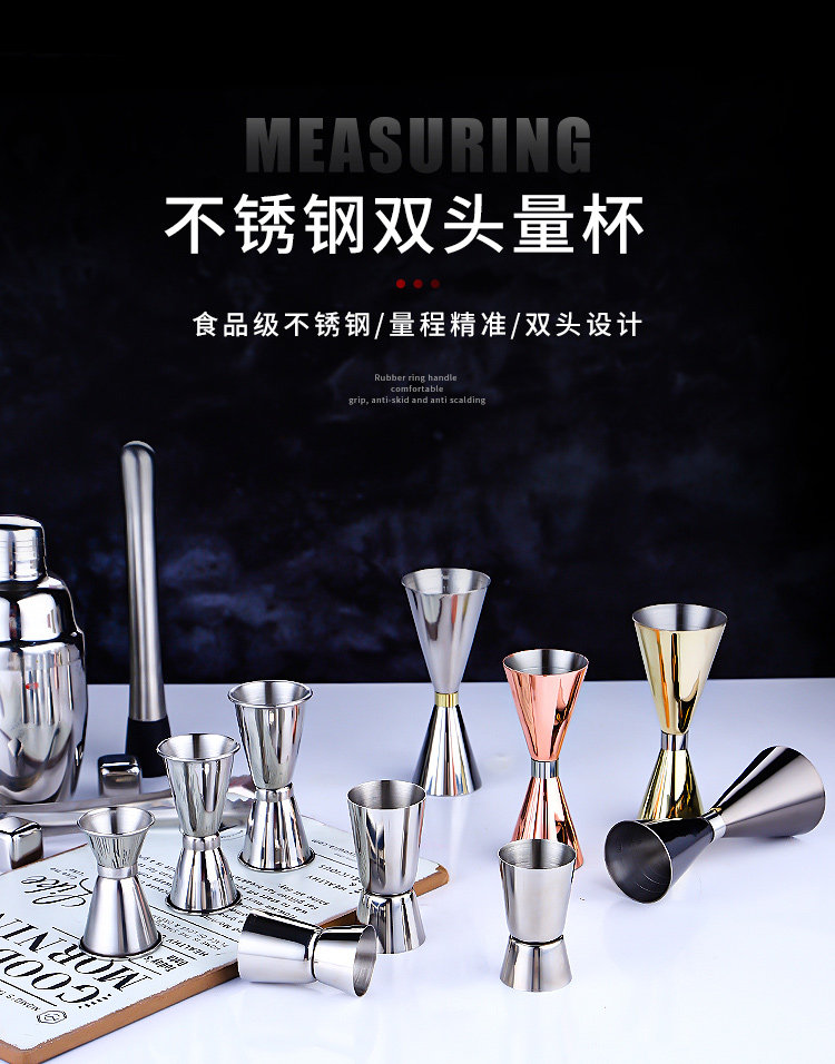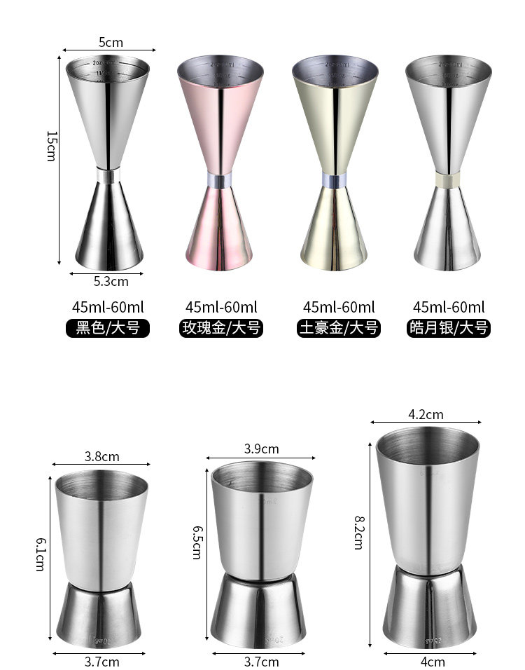 Gelas ukur cocktail berkepala ganda, alat ukur anggur ons dengan skala Oz