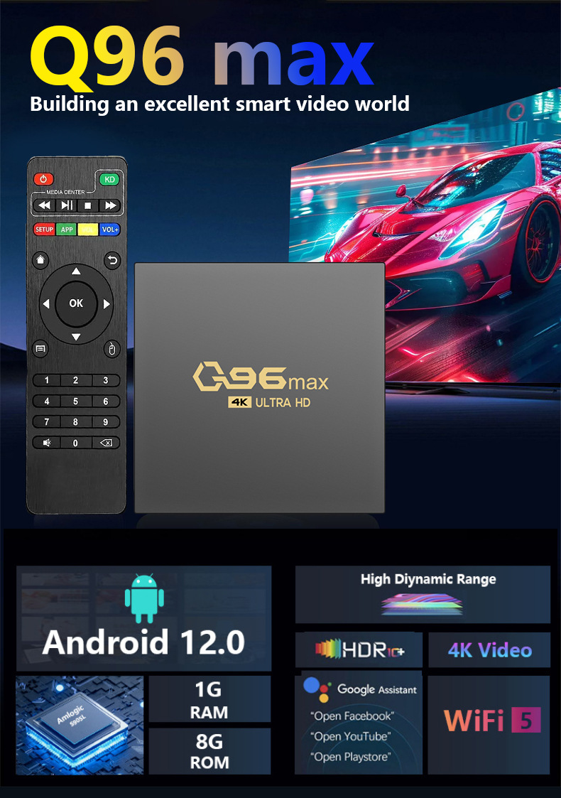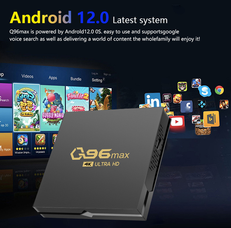 Q96MAX kotak video Android baru 4K set-top box jaringan lintas batas TVBOX Bluetooth nirkabel rumah 5GWIF