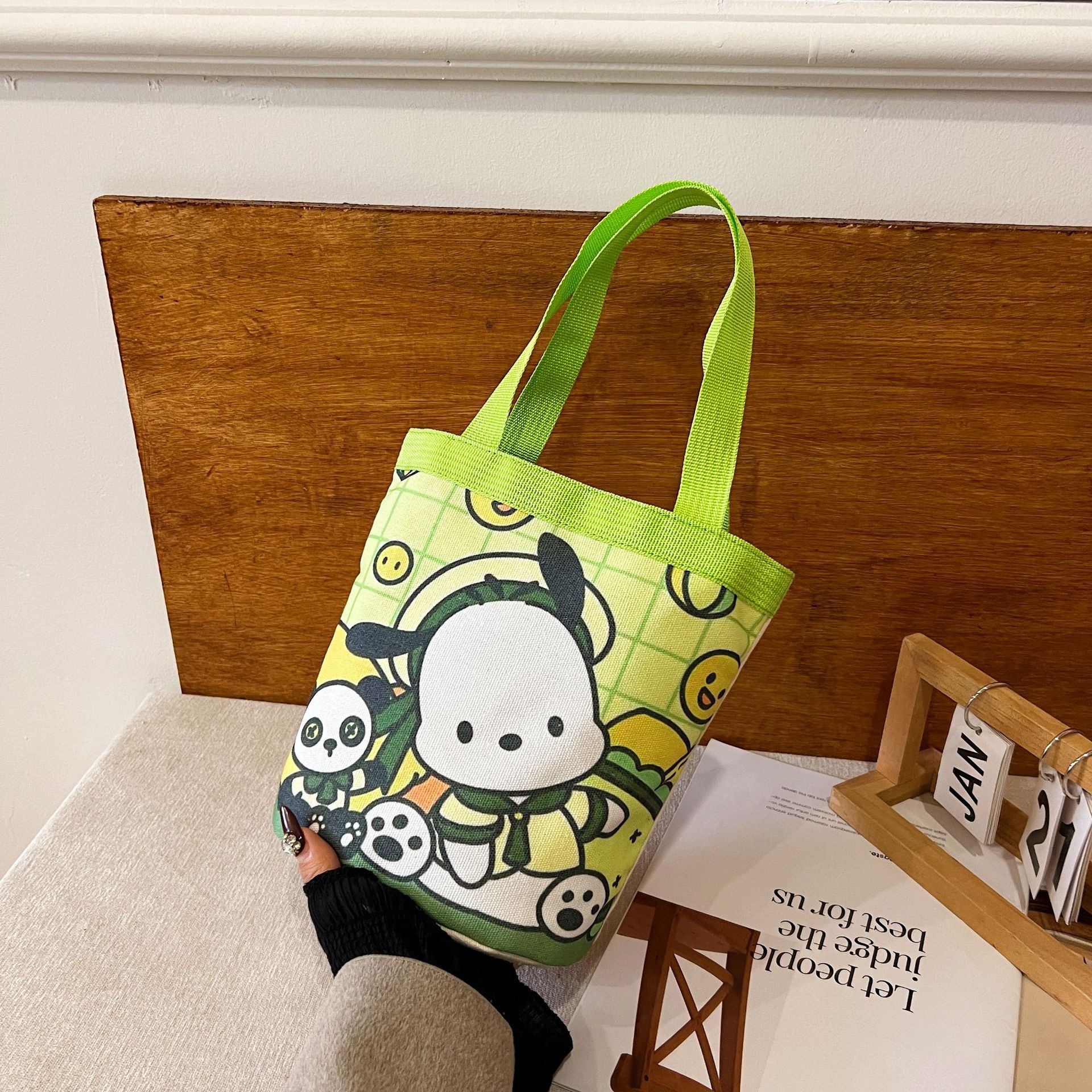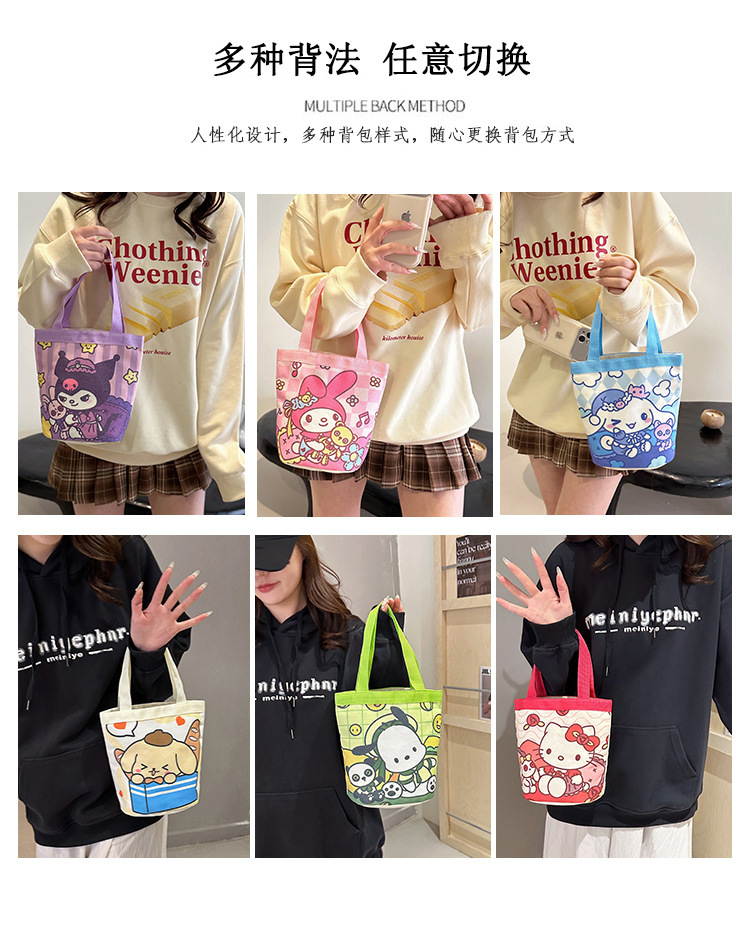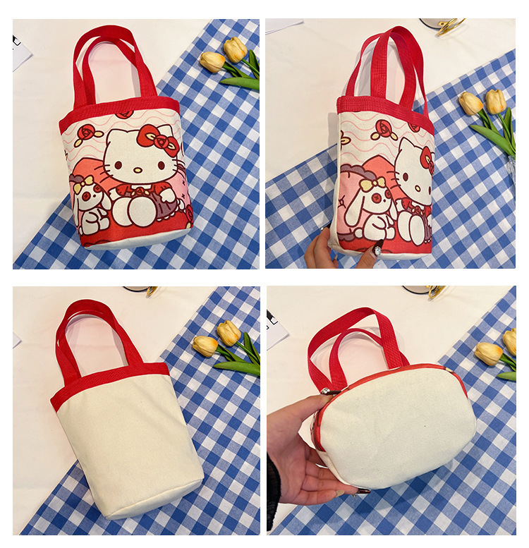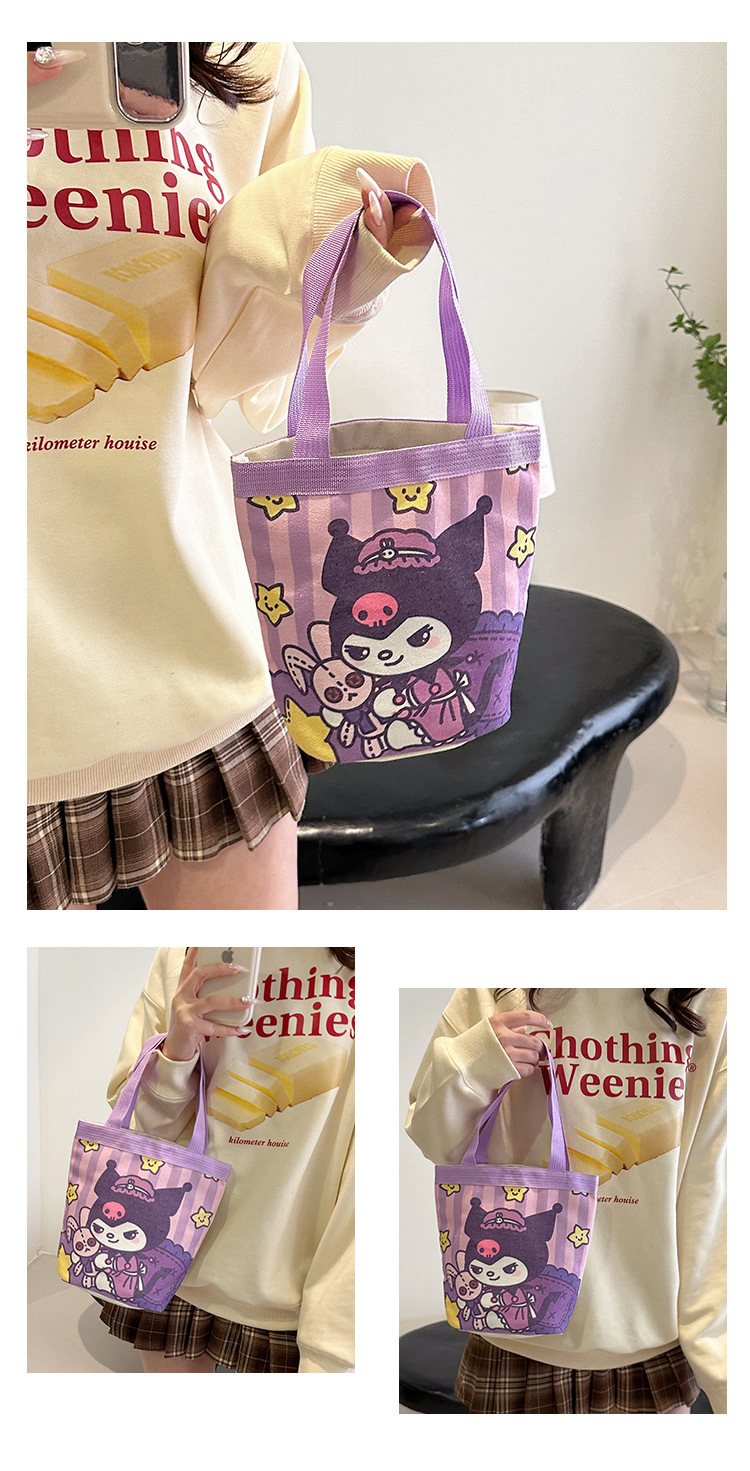 Bucket tas tangan kecil bergaya Korea, tas kanvas grafiti anak perempuan Hati Ibu tas makan siang bekerja anak-anak