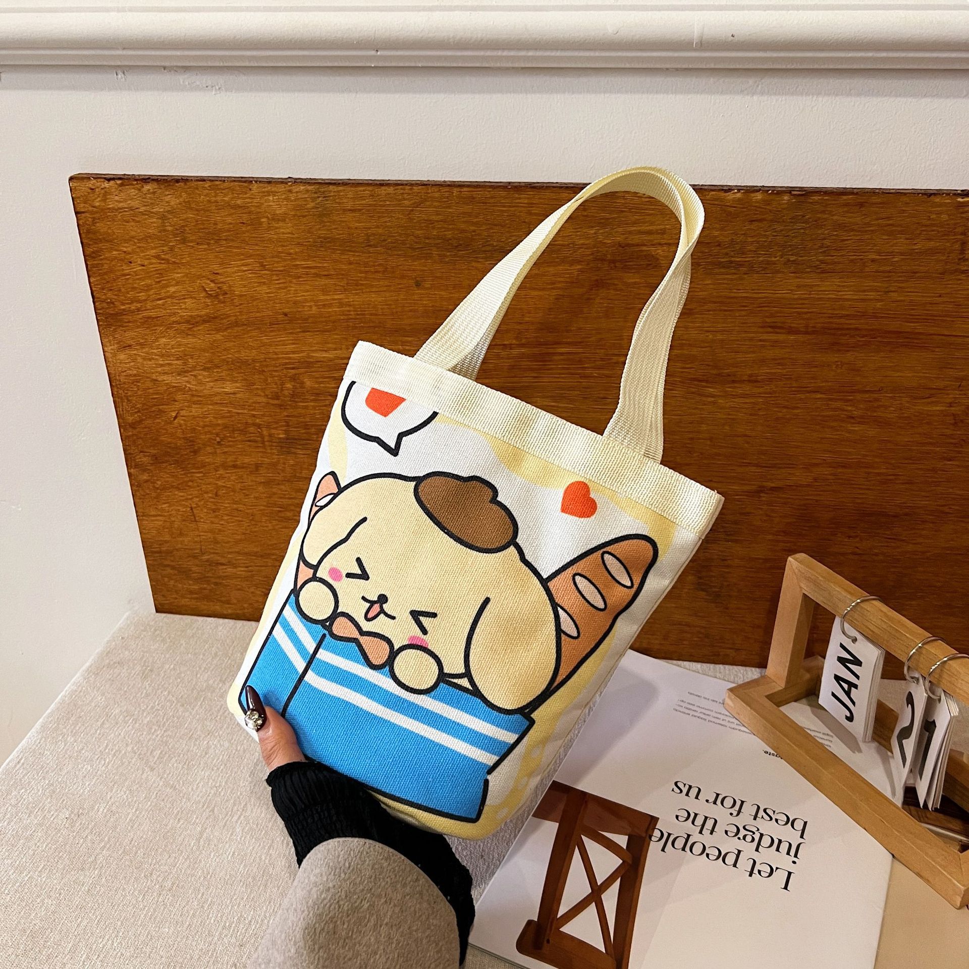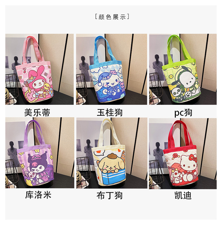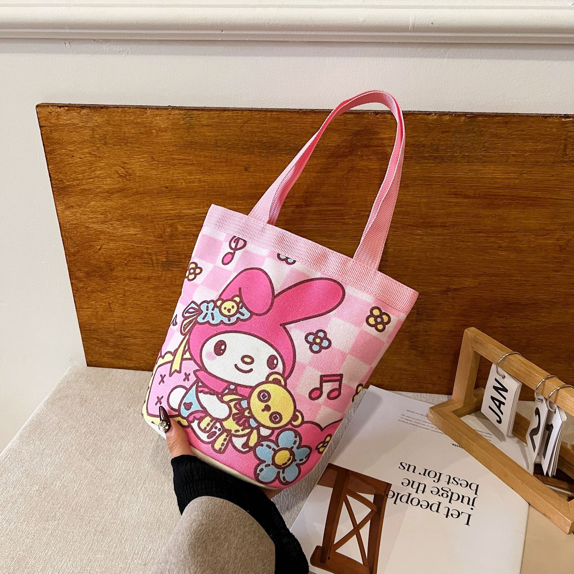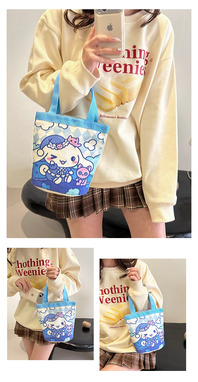 Bucket tas tangan kecil bergaya Korea, tas kanvas grafiti anak perempuan Hati Ibu tas makan siang bekerja anak-anak