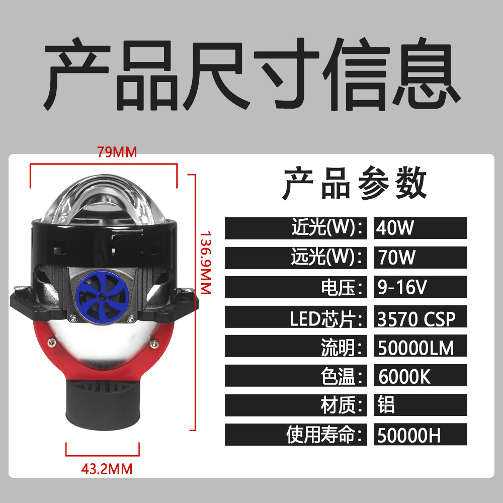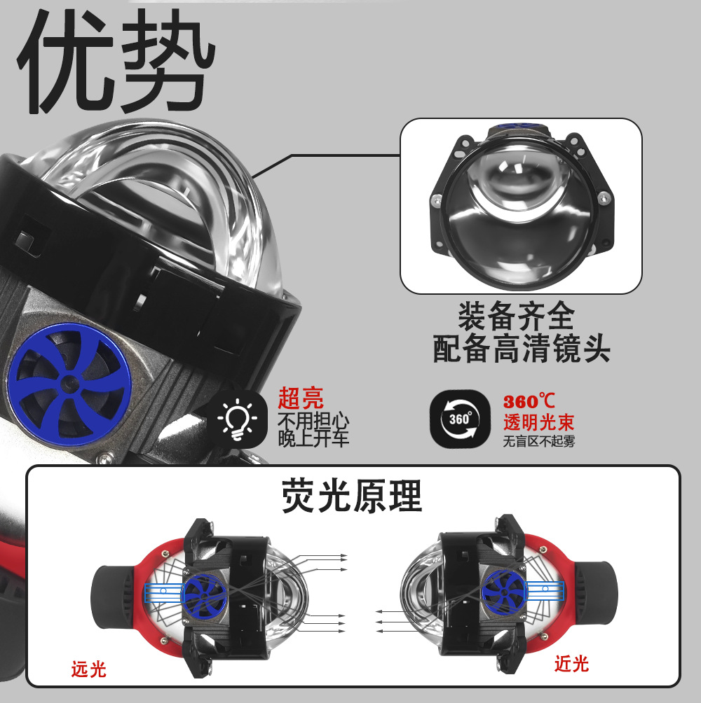 Lampu depan laser led mobil 3.0 inci, lampu depan led mobil, lampu ganda lensa led jauh dan dekat lampu depan terintegrasi