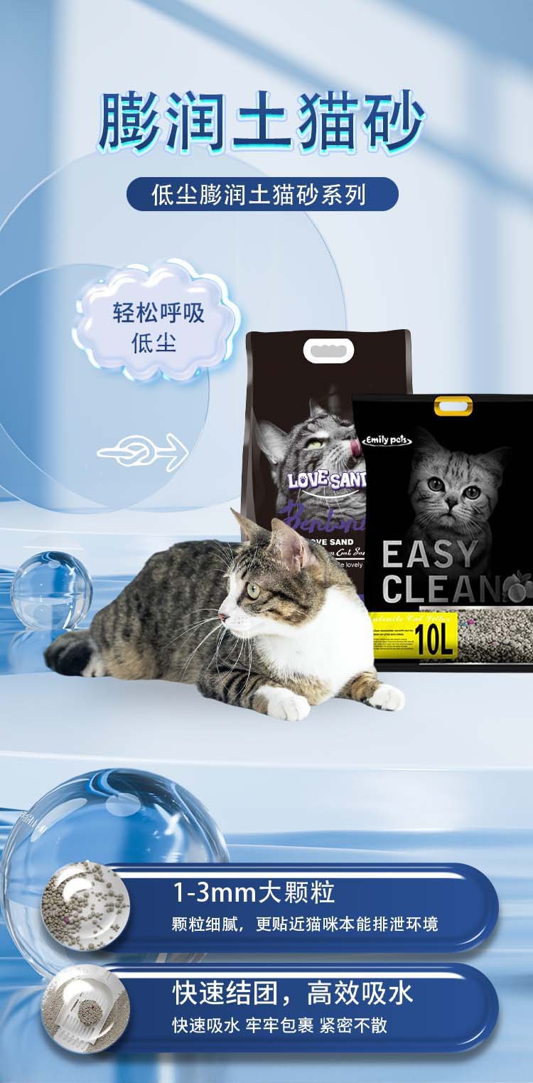 Pasir kucing bentonit Emily menyerap air dan menggumpal dengan cepat, granul kecil 1-3mm, 10L/8, cepat menggumpal untuk kucing, 10kg bebas debu.