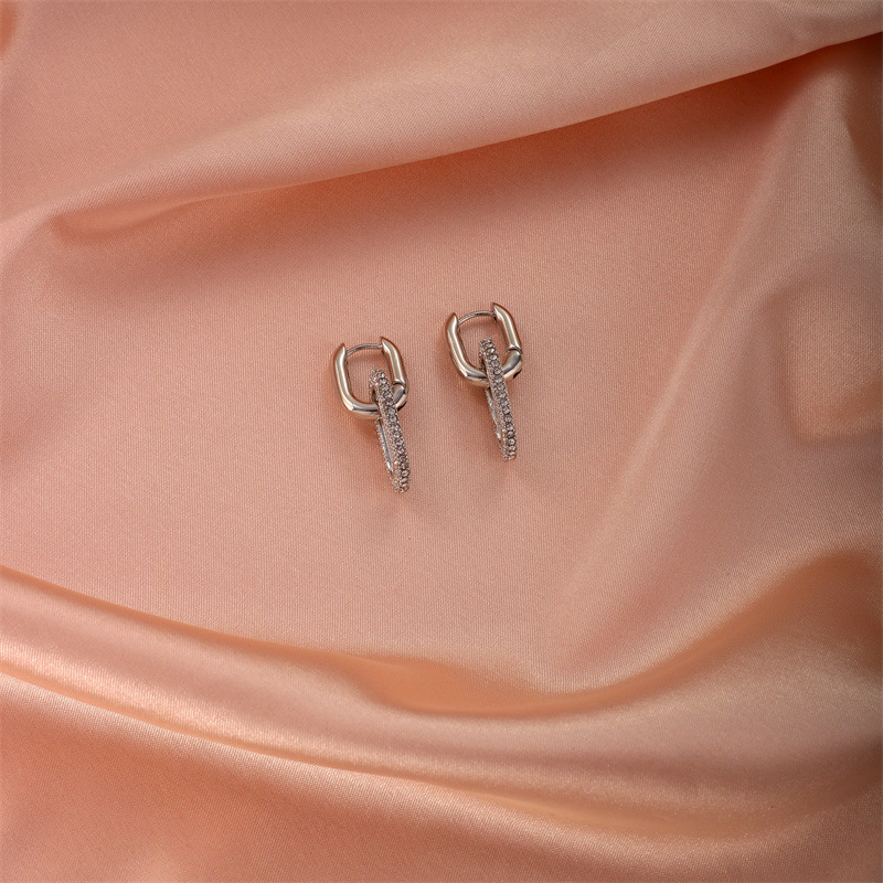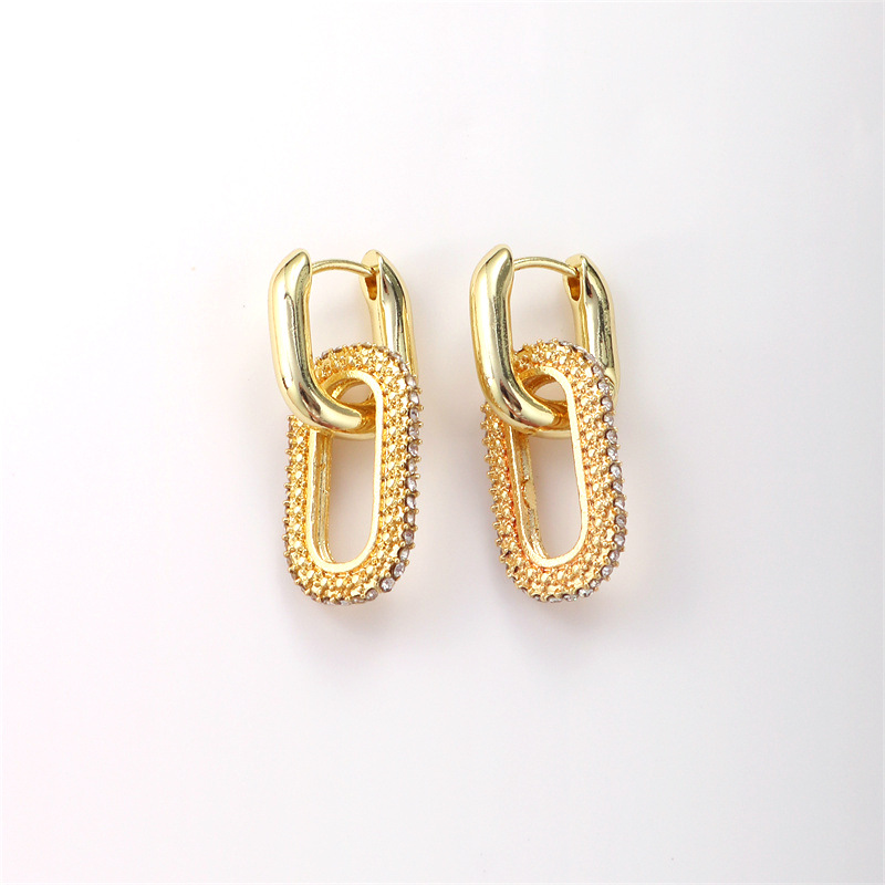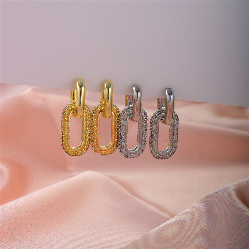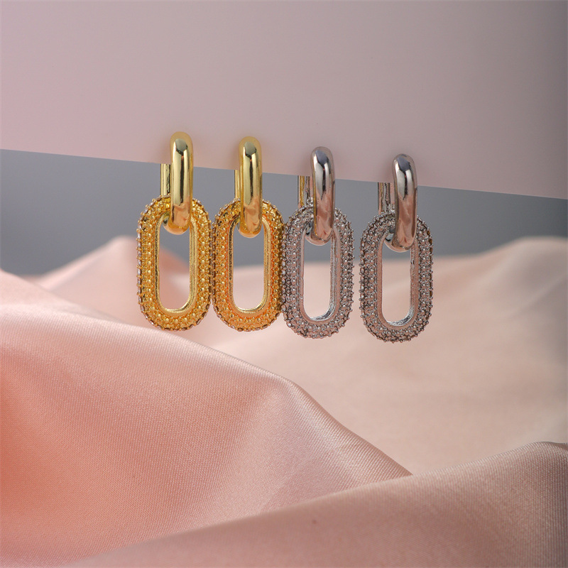 Anting-anting unik mode Eropa dan Amerika gesper telinga Oval berlian penuh gesper telinga cincin ganda desain niche trendi baru 2024