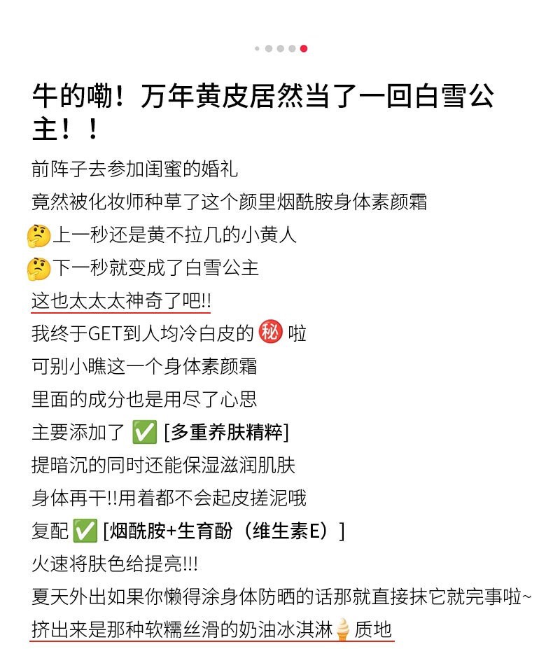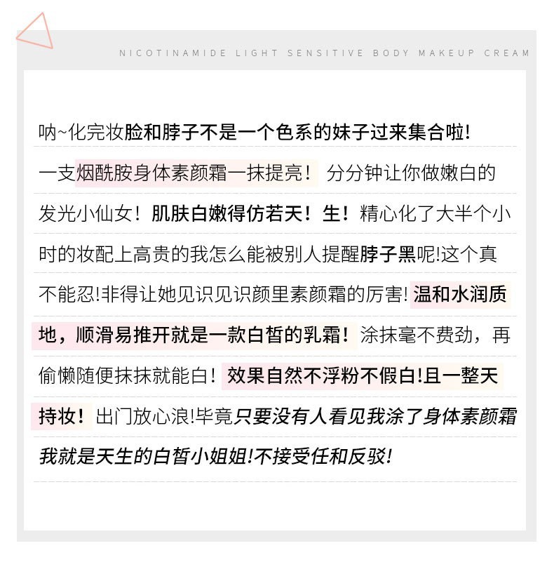 烟酰胺身体素颜霜全身冷白皮润肤乳提亮肤色持久留香保湿霜懒人霜