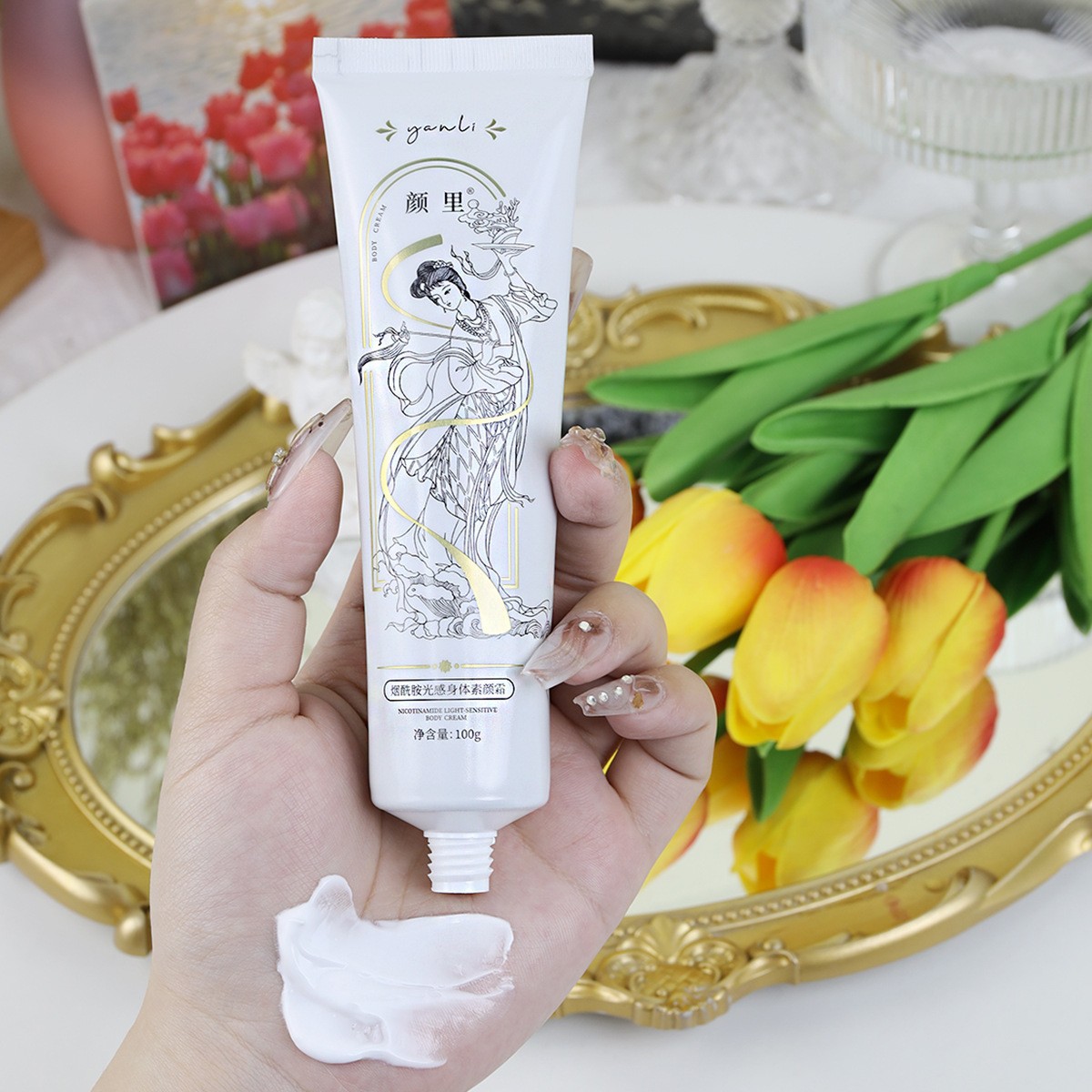 Nicinamide krim riasan tubuh seluruh tubuh, Losion Kulit putih dingin mencerahkan warna kulit, krim pelembap wangi tahan lama