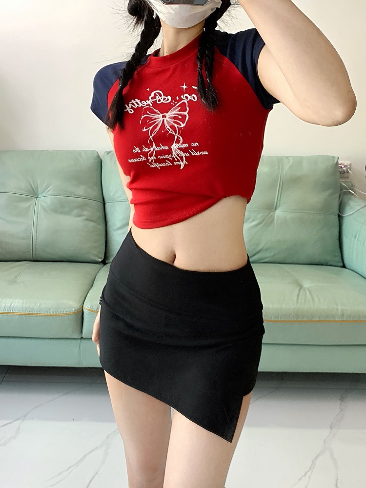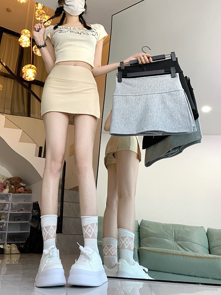 Rok olahraga wanita pinggang tinggi, rok pinggul belah samping katun sutra dingin 210g, Rok olahraga kulot anti paparan