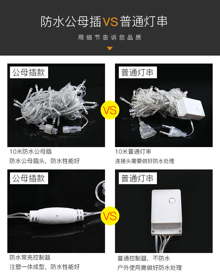 led闪灯串灯满天星户外防水工程亮化树上挂的公母接常亮小彩灯