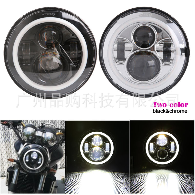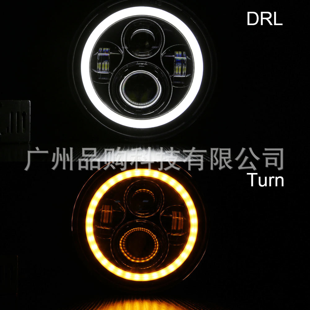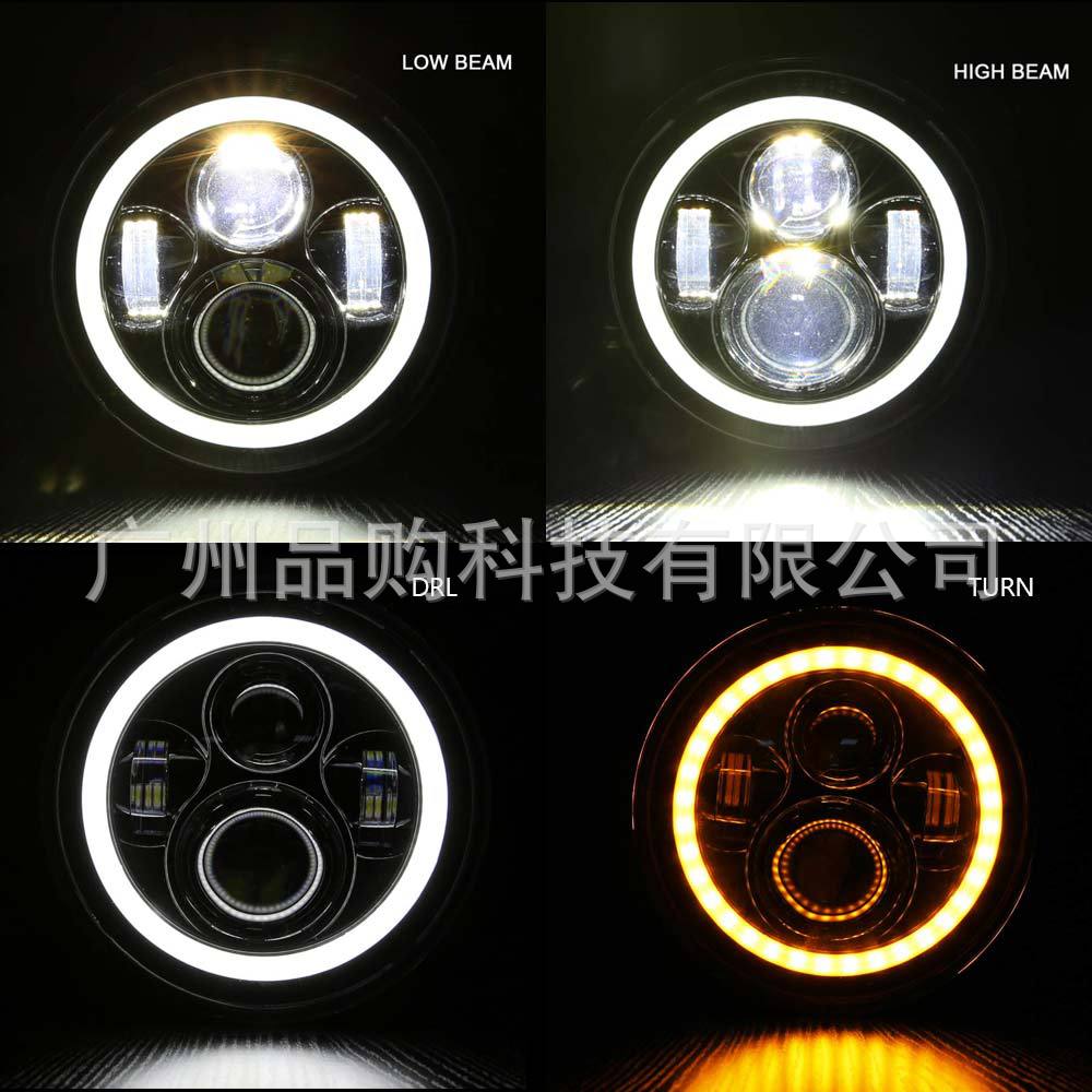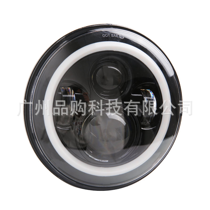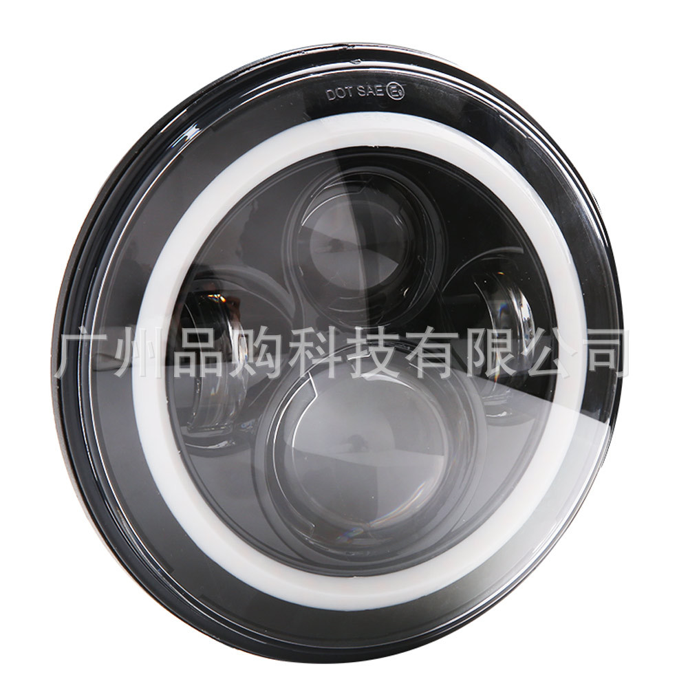 Lampu depan led mobil 7 inci, lampu depan mobil Harley off-road kendaraan lintas batas mata malaikat diskon besar