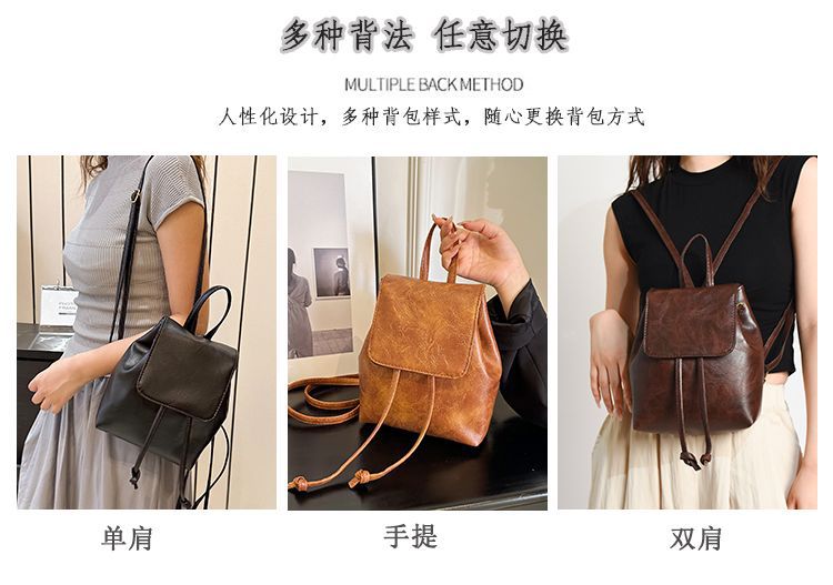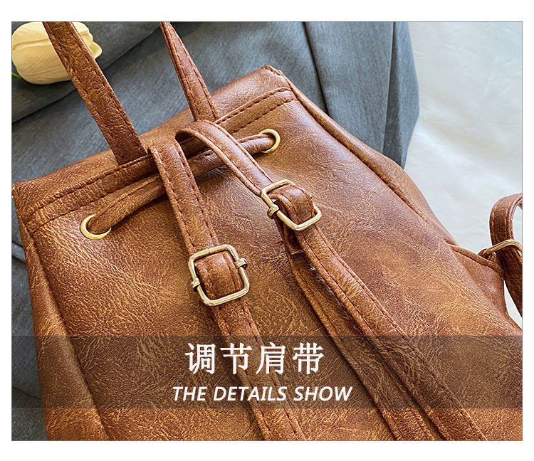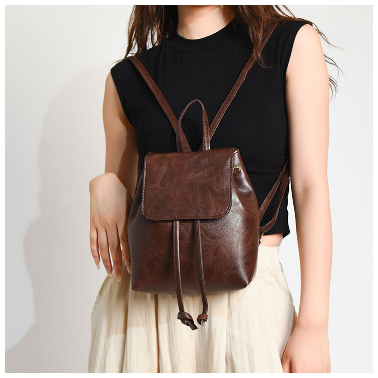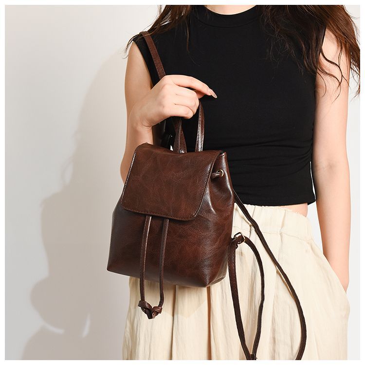 Tas Ransel Wanita Musim Semi dan Musim Panas 2025 Gaya Baru Tas Sastra Sederhana dan Serbaguna Tas Bahu Serut Coklat Retro Ceruk Wanita