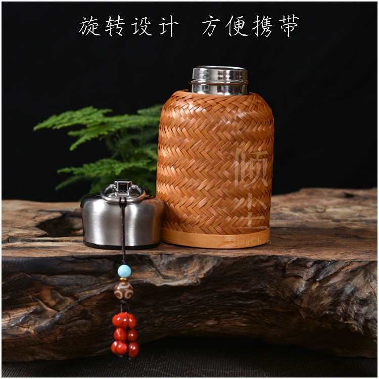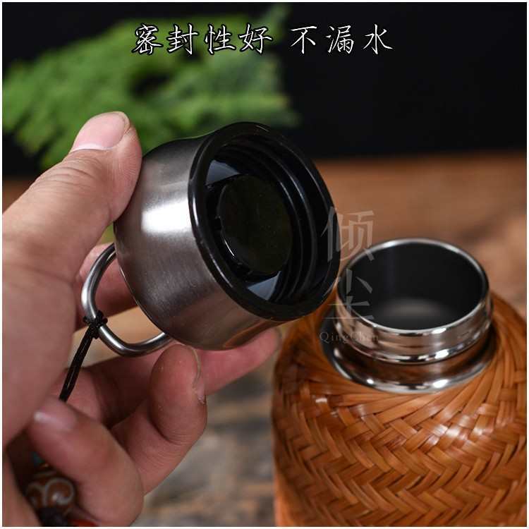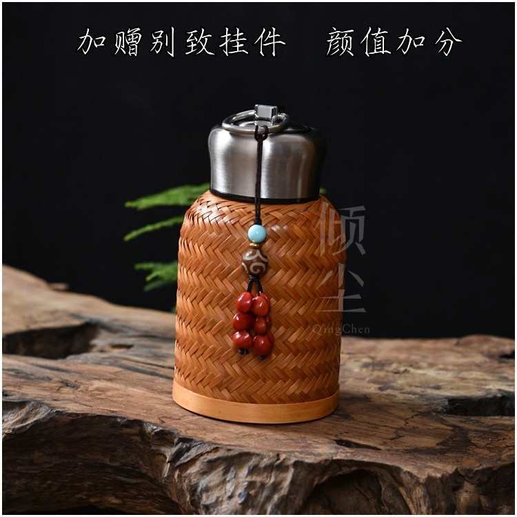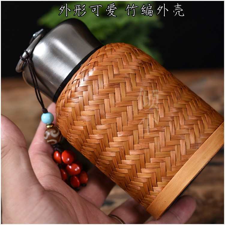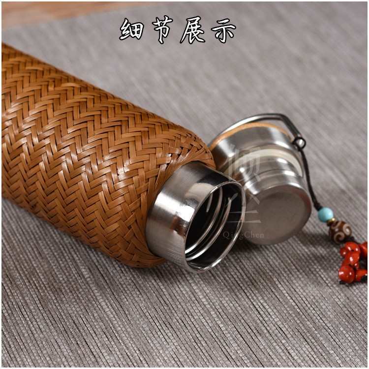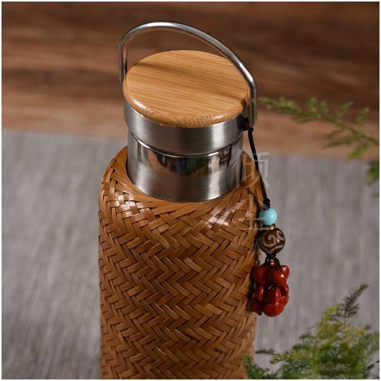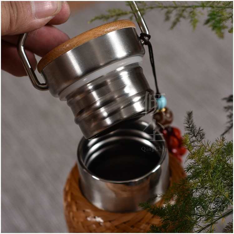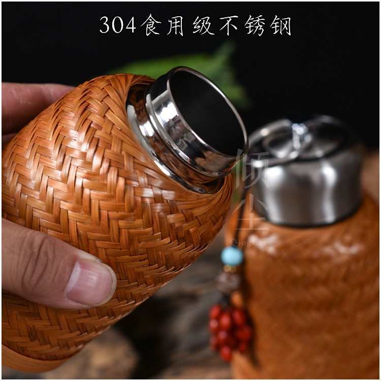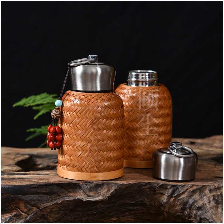 Cangkir vakum cangkir bambu buatan tangan grosir cangkir portabel perjalanan cangkir vakum baja tahan karat ukuran kecil antik