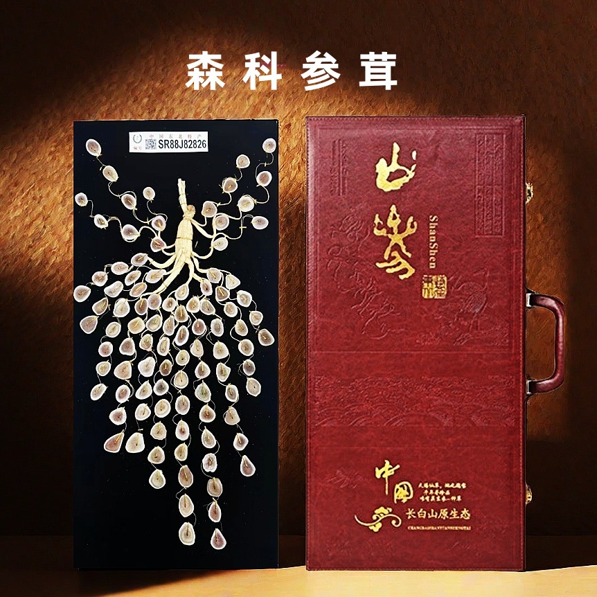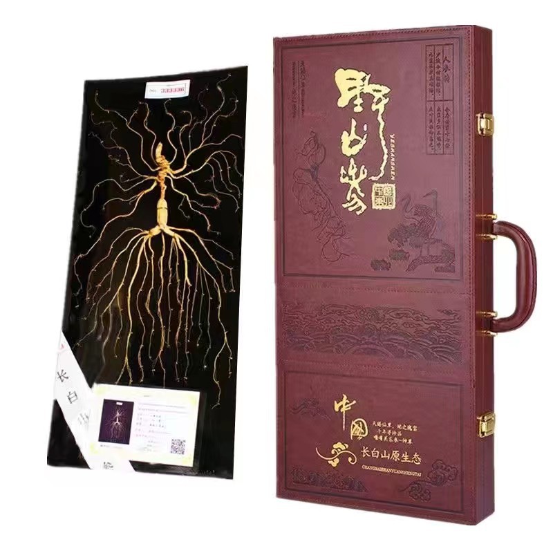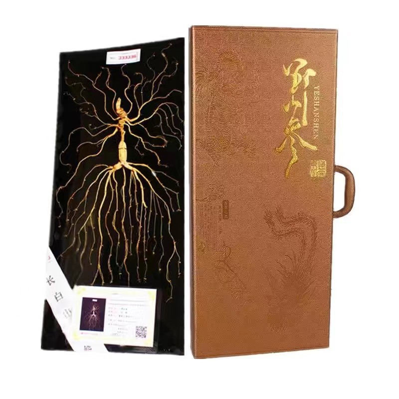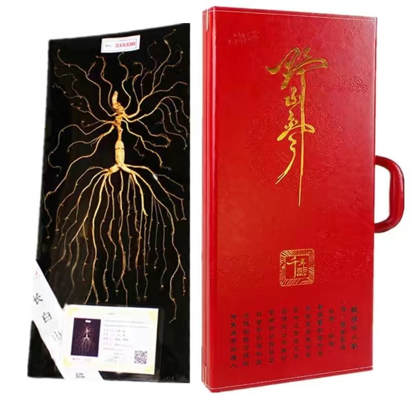 Produsen Grosir Kotak Hadiah Ginseng Kotak Hadiah Kelas Atas Khas Pegunungan Changbai Timur Laut Direndam Dalam Anggur Ginseng Hutan Jilin 60 Cm