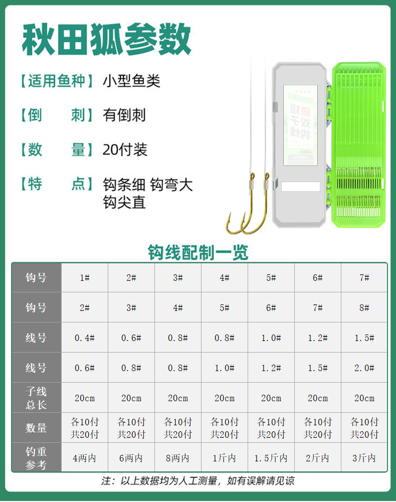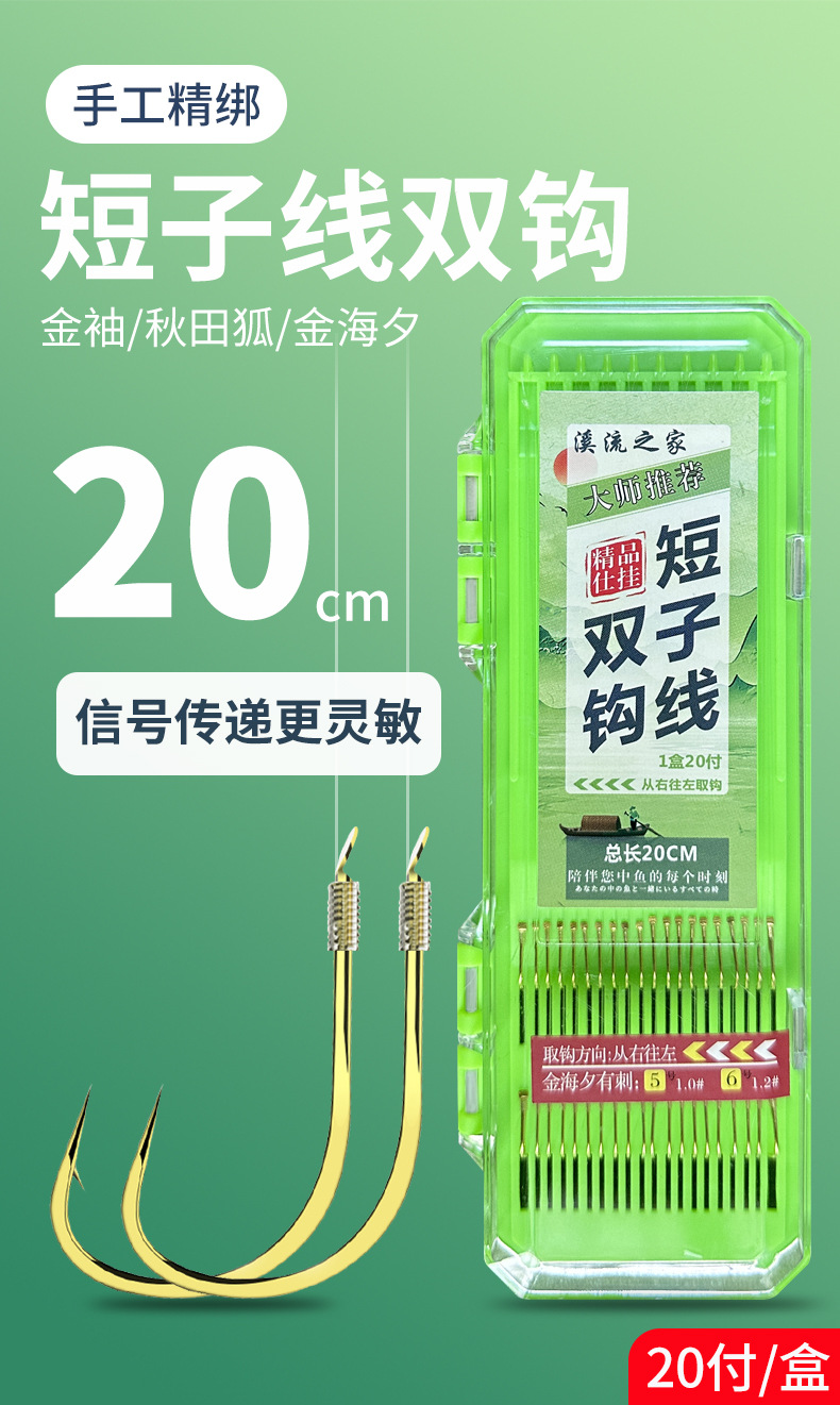 20 buah kotak sub benang ganda kait pendek sub-thread selesai lengan emas jinhaixi Qiutian Fox hook perlengkapan memancing 20CM