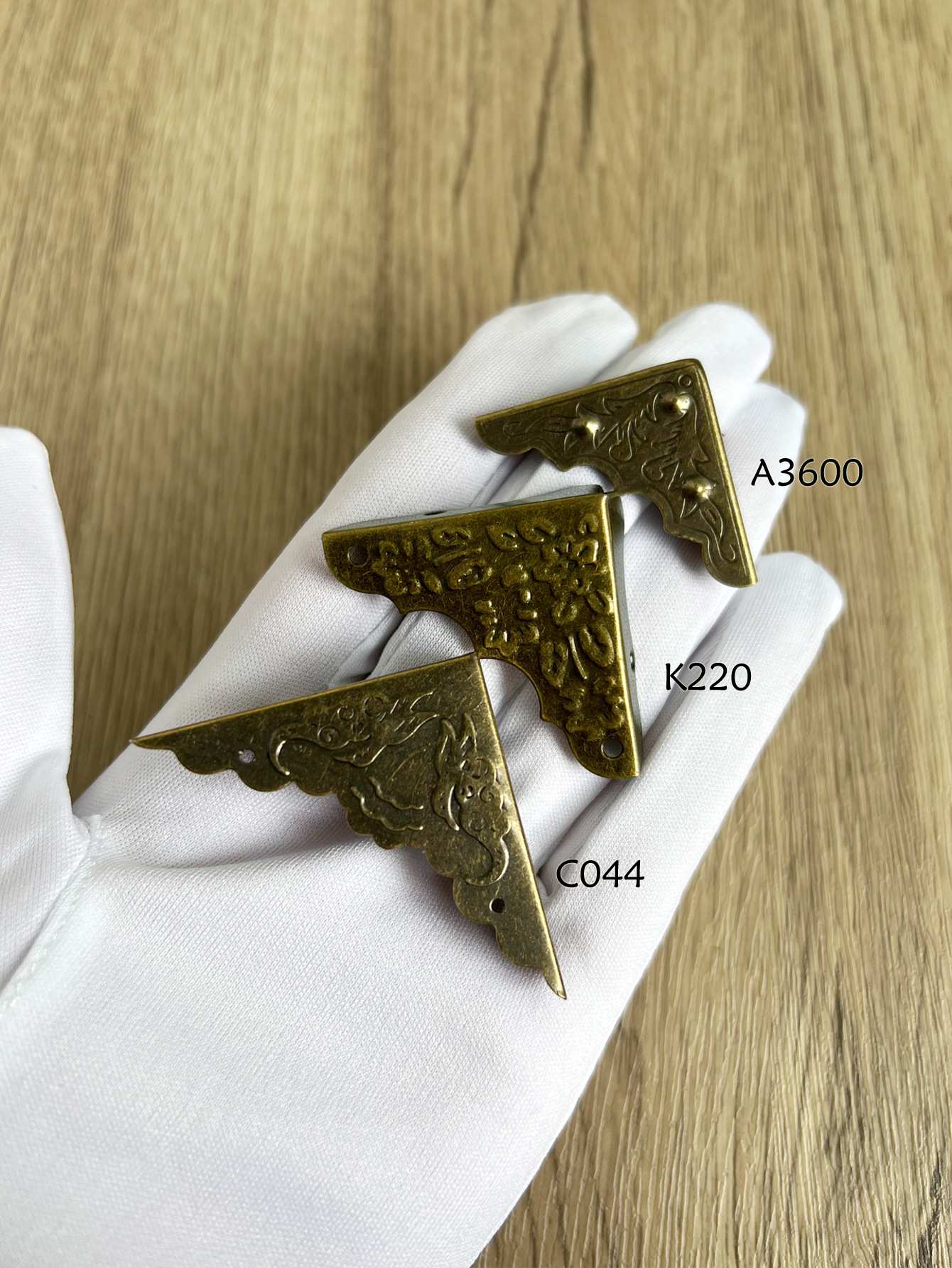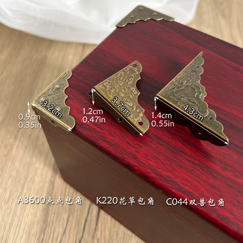 Braket sudut besi sudut rendah tiga sisi bergaya vintage untuk kotak kayu, sudut kotak penerbangan siku-siku, sudut empat sisi bergaya antik yang dipertebal.