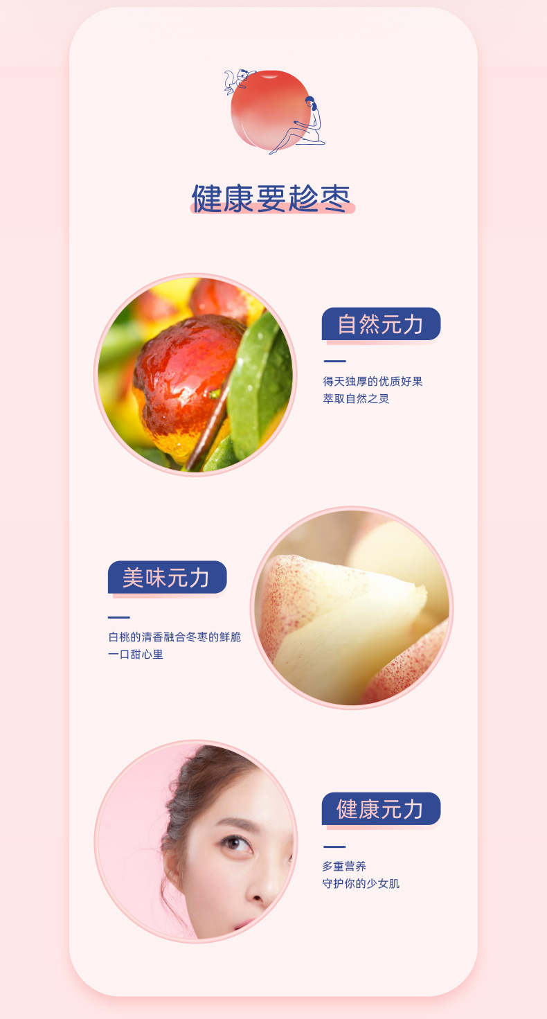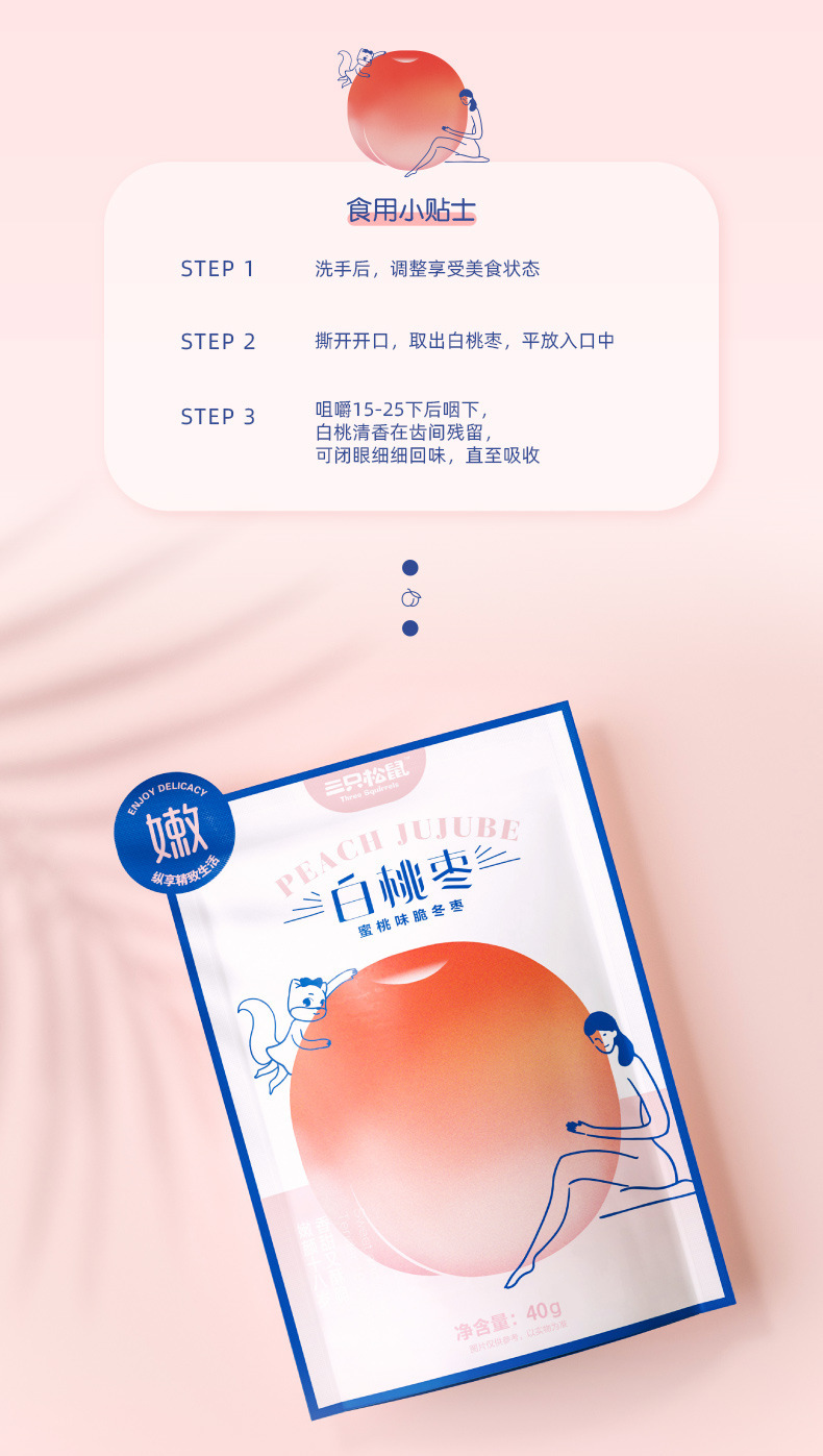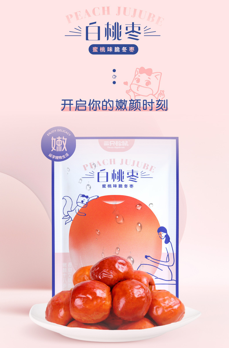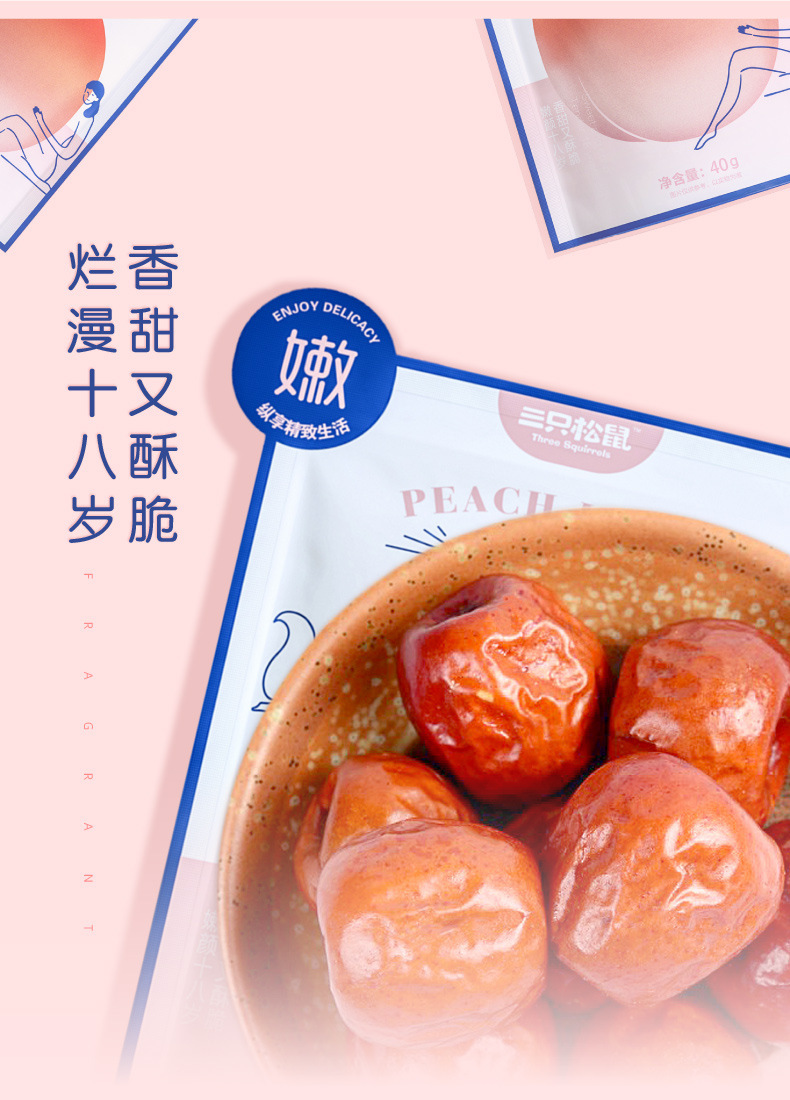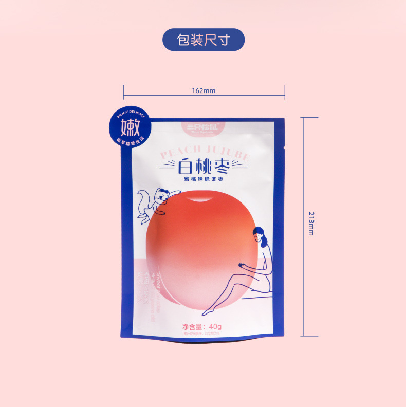 [Tiga tupai putih peach jujube 40g] renyah jujube merah tanggal madu Jujube tanpa inti makanan ringan bersih merah