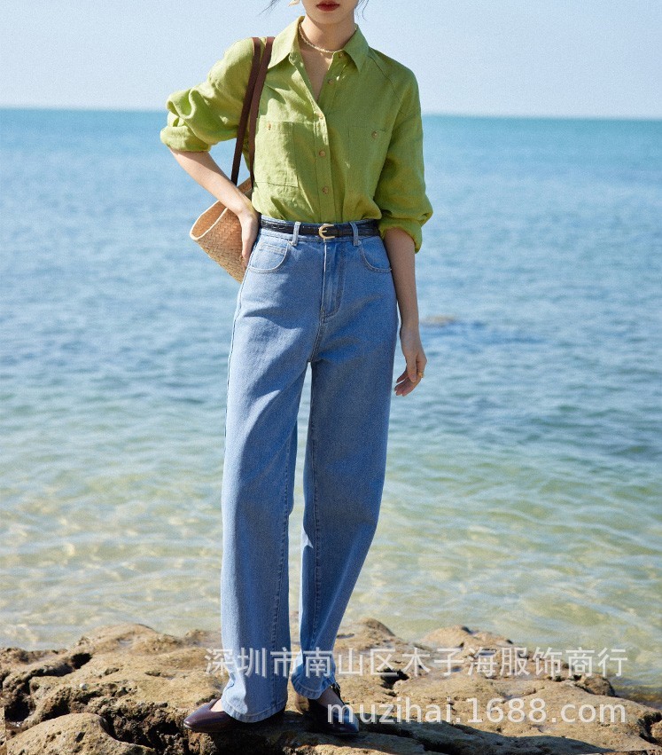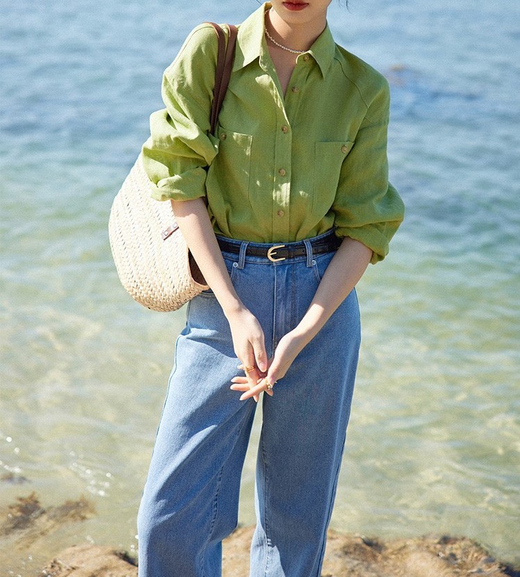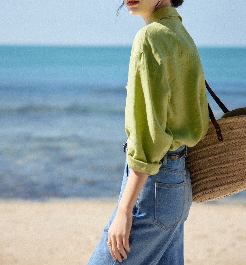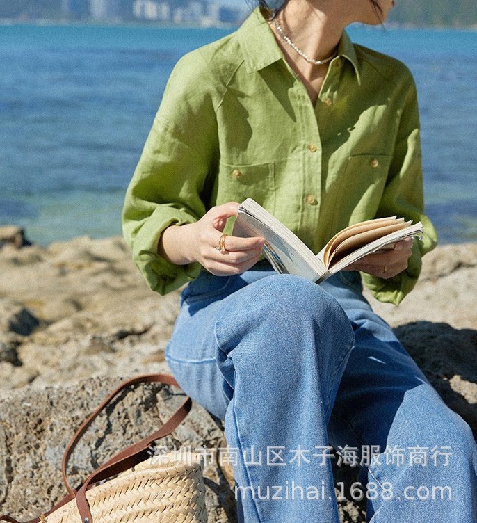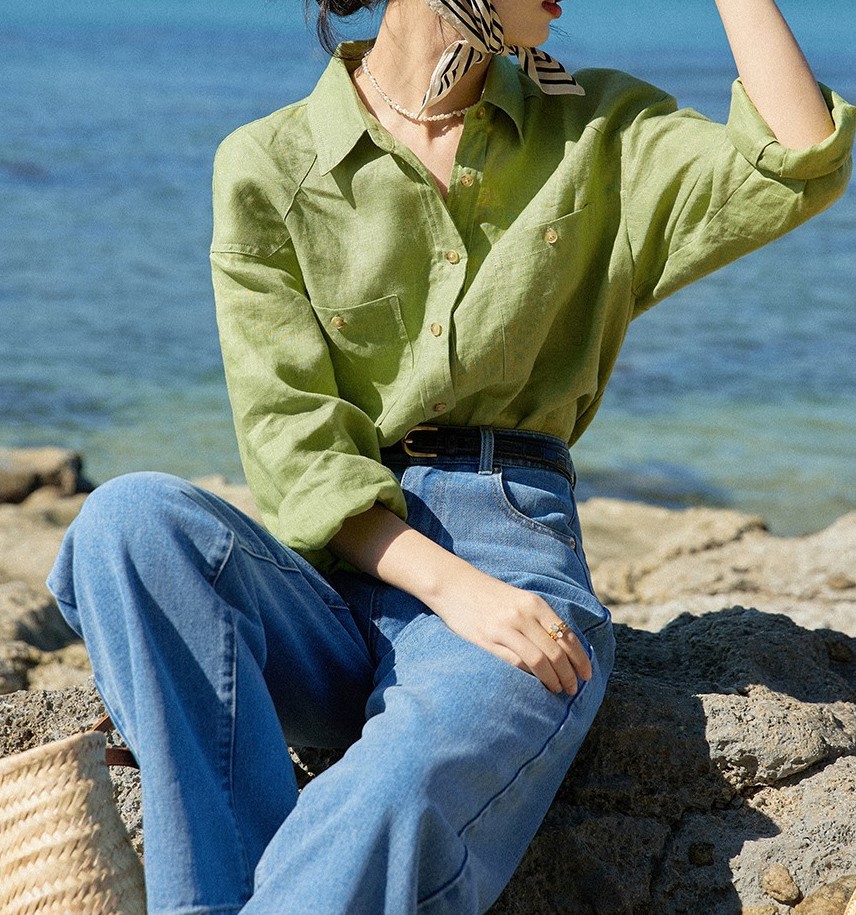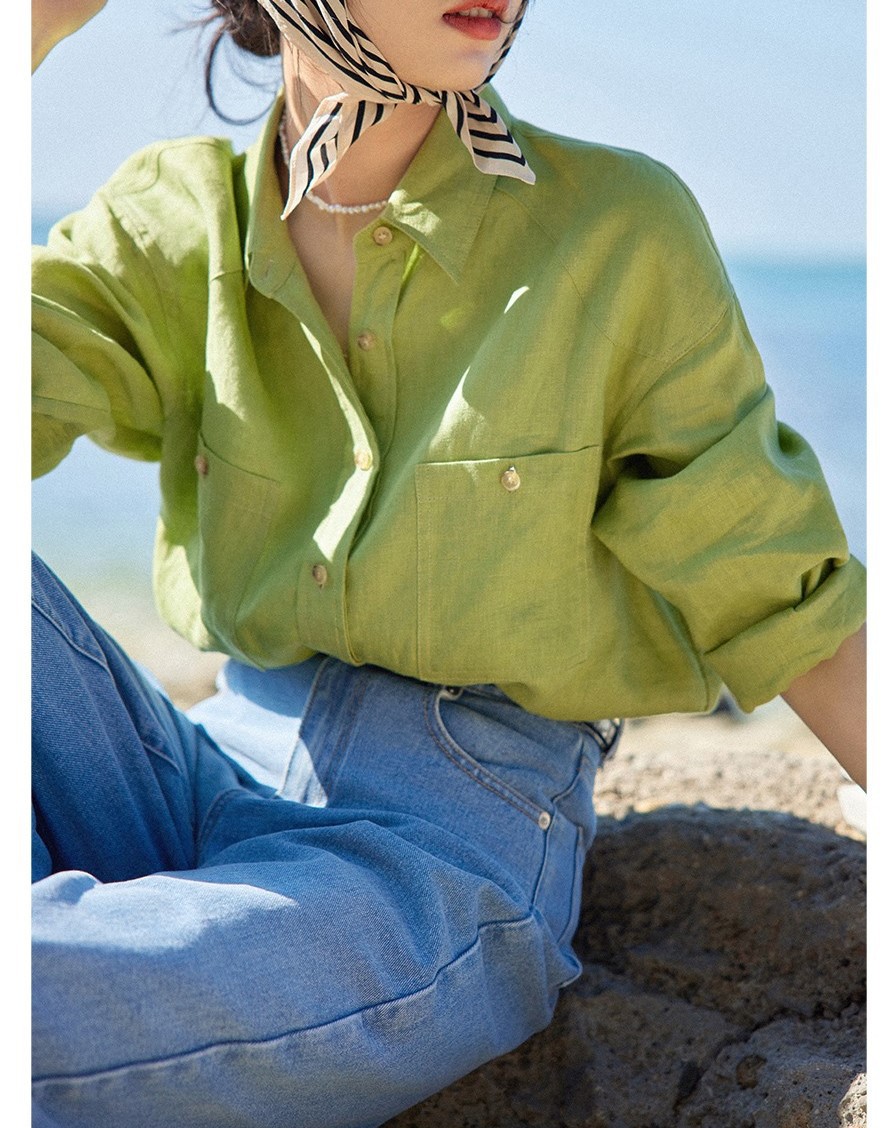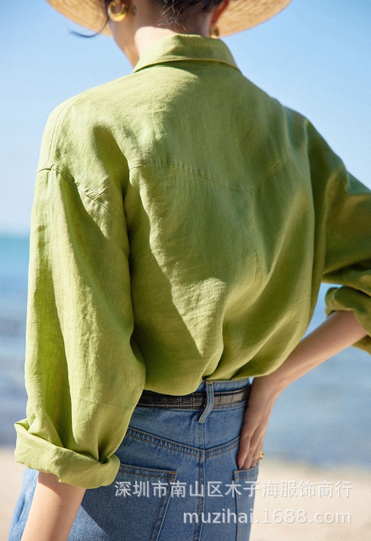 Beautiful Emperor kemeja wanita, kemeja longgar kasual awal musim semi, kemeja garam lengan panjang hijau Semua linen 14