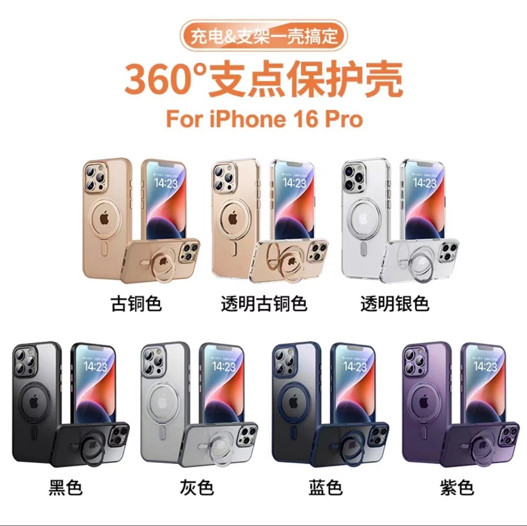 Cocok untuk Casing Ponsel iPhone16Promax Dudukan Logam Tumpu Berputar 360 Derajat Apple 16/15 Anti Jatuh