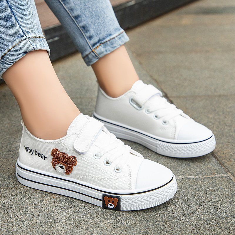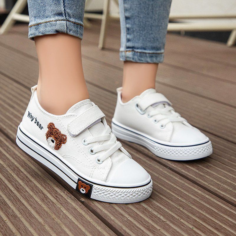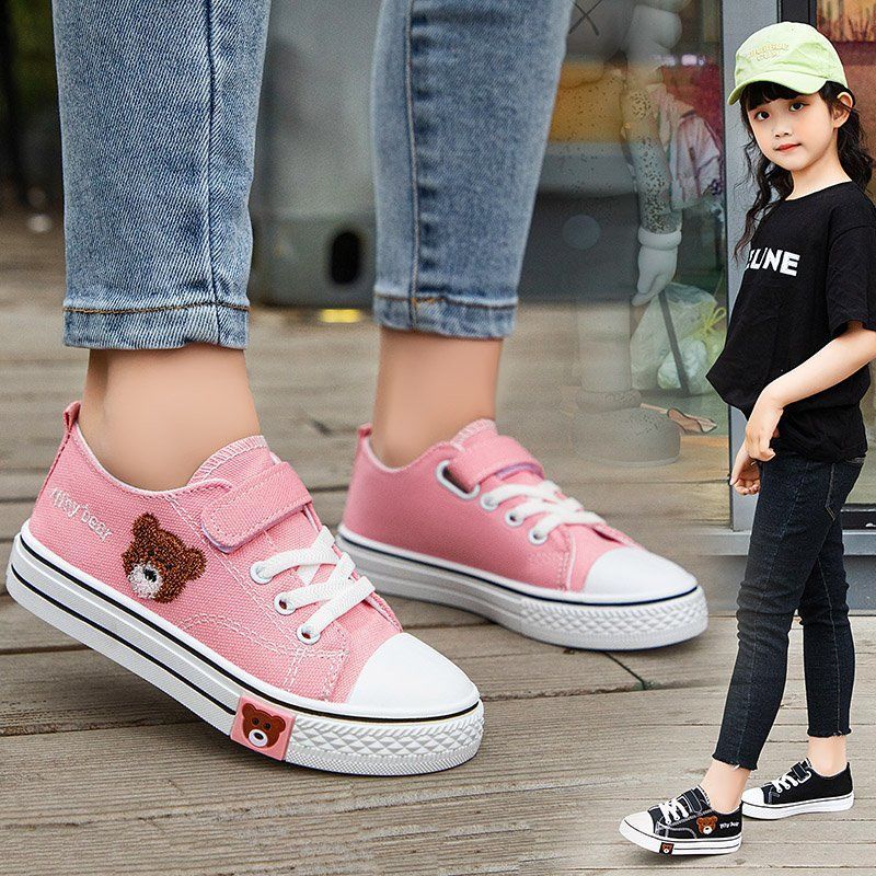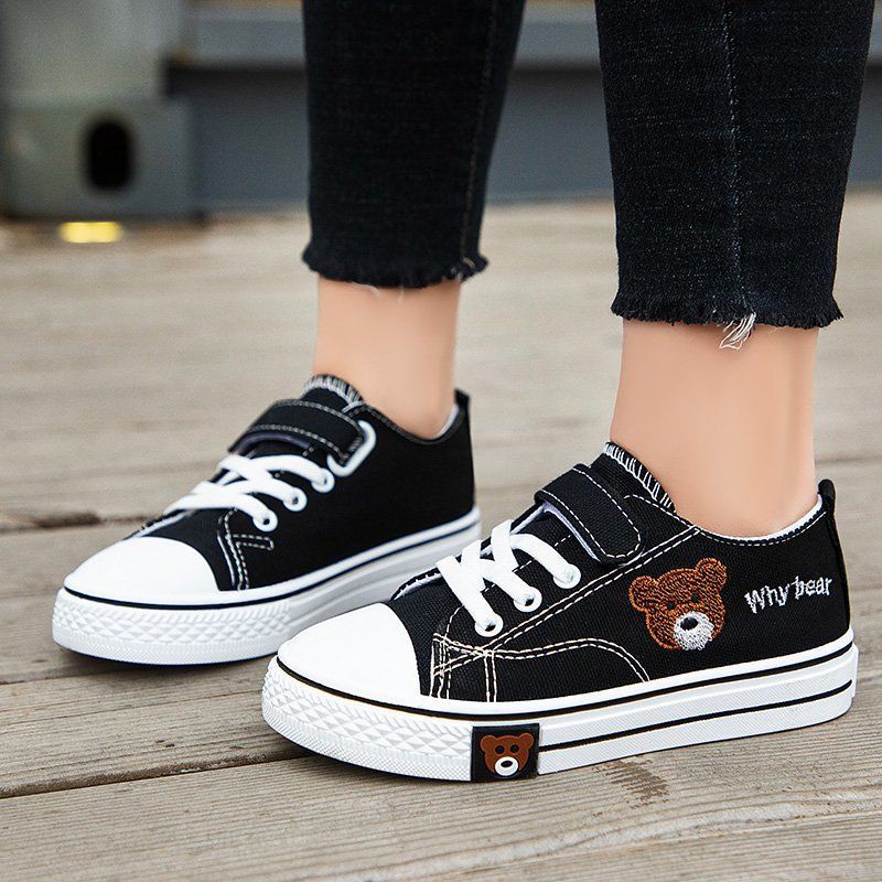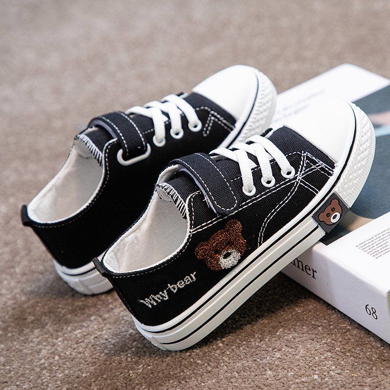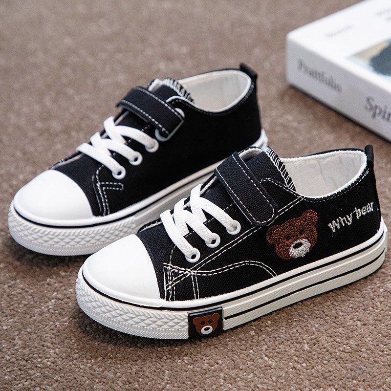 Sepatu kanvas anak-anak dengan sol lembut, sepatu anak laki-laki musim semi 2025, sepatu siswa sekolah dasar, sepatu anak-anak dengan Velcro, sepatu bernapas untuk anak-anak ukuran kecil dan sedang.