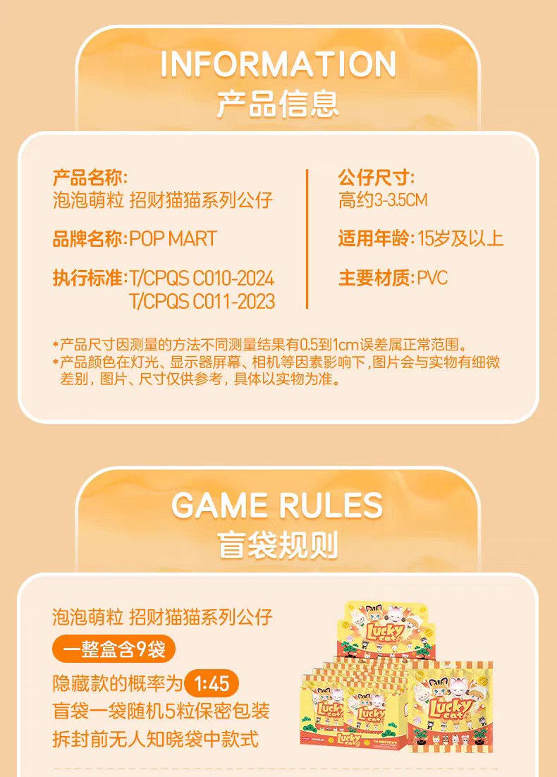 POPMART泡泡玛特泡泡萌粒 招财猫猫系列公仔盲袋潮流玩具礼物摆件