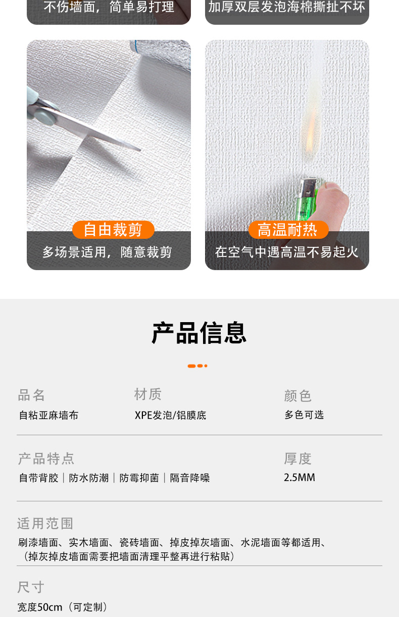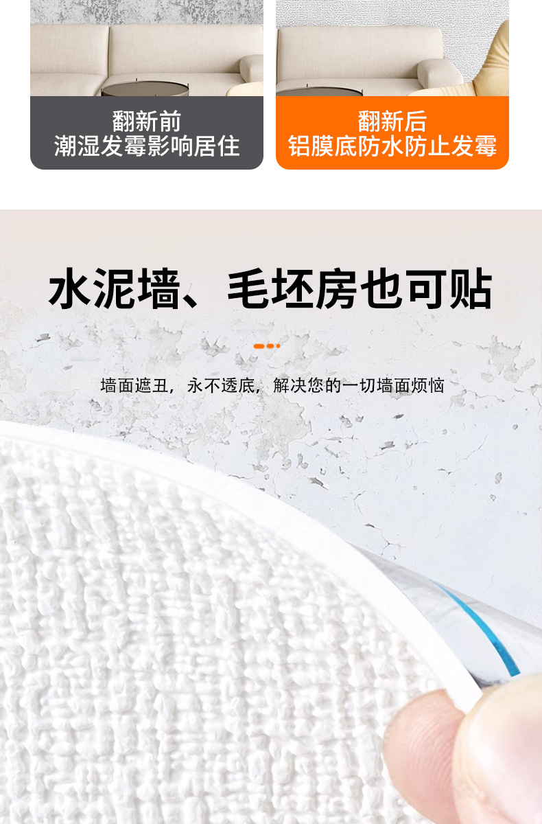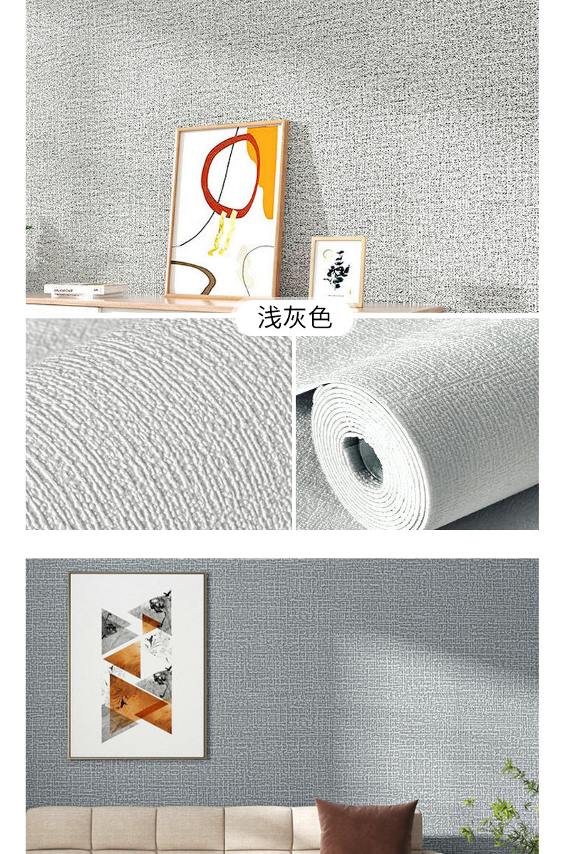 Kertas dinding khusus dinding abu-abu dengan perekat, stiker dinding 3D anti-lembap tahan air, stiker dinding linen tiga dimensi untuk rumah tangga, kamar tidur