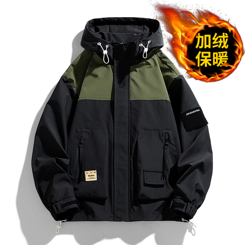 Jaket bertudung untuk pasangan, jaket multisaku kasual longgar Semua cocok Musim semi musim gugur bermerek modis baru
