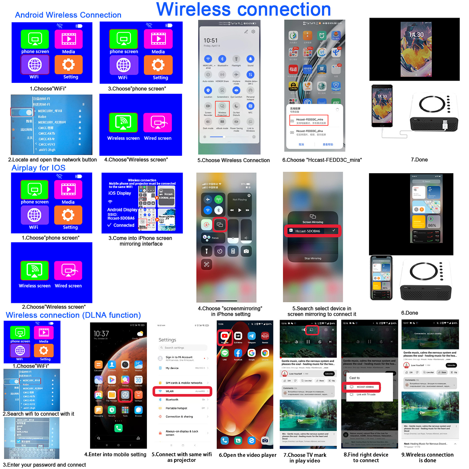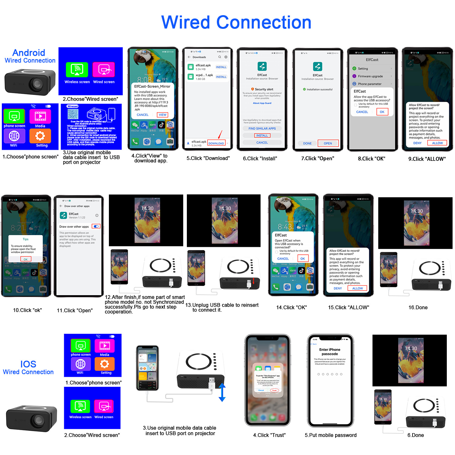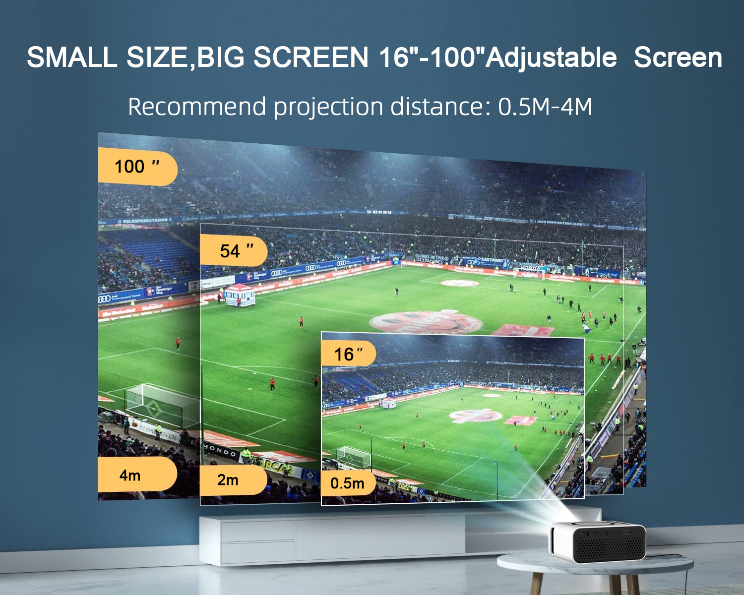 YT300 proyektor ponsel, proyektor mini rumah portabel lintas batas dengan layar sama berkabel + kabel