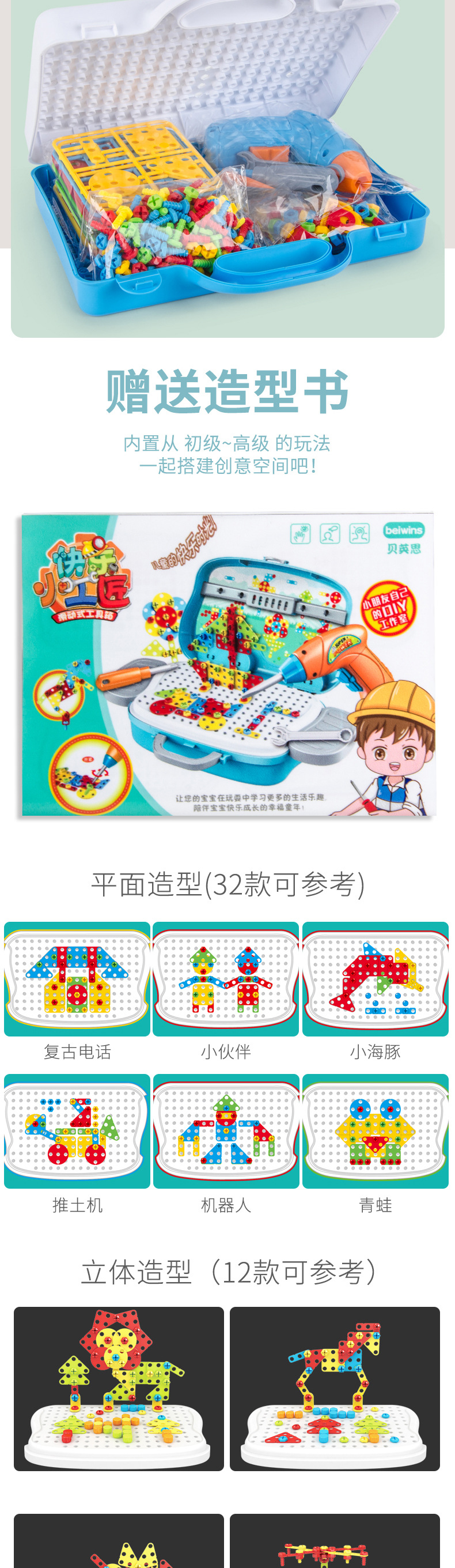 Kotak penyimpanan alat reparasi rumah bermain anak, mainan anak laki-laki, setelan obeng bor tangan simulasi
