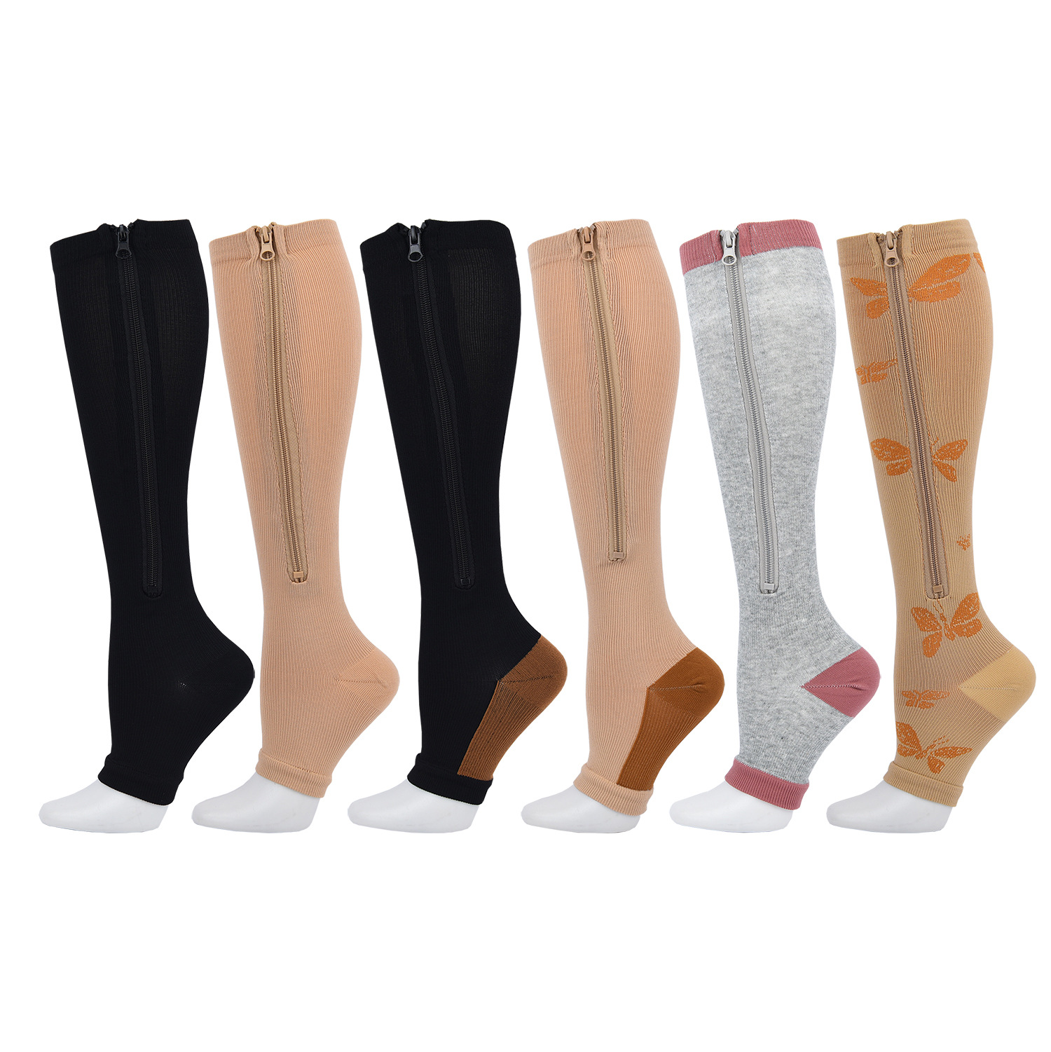 Kaus kaki ritsleting kompresi lintas batas Amazon kaus kaki kompresi olahraga tabung panjang kaus kaki kompresi elastis pembuluh darah kaus kaki sox