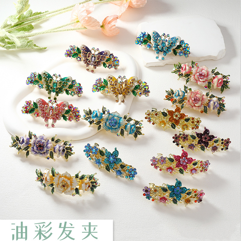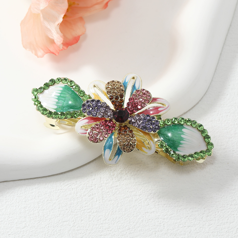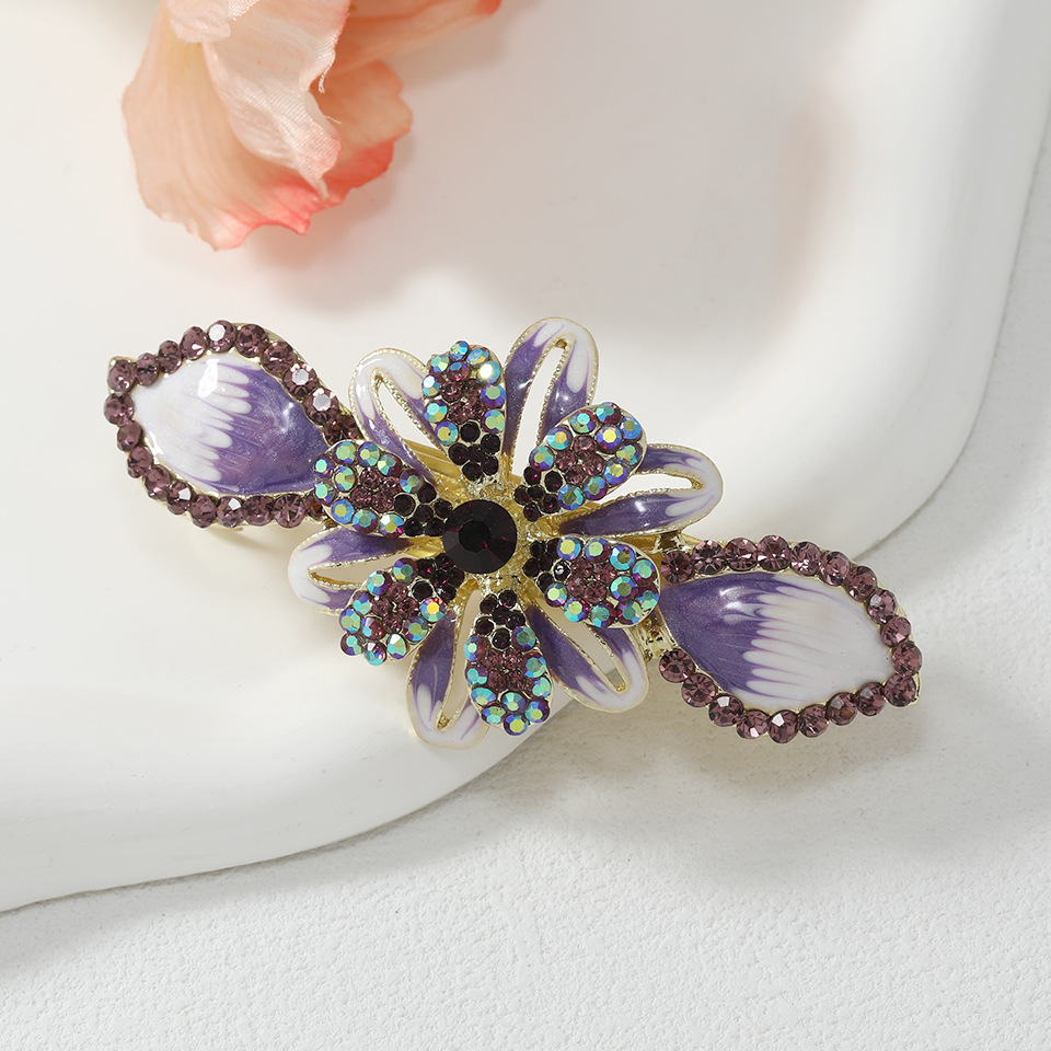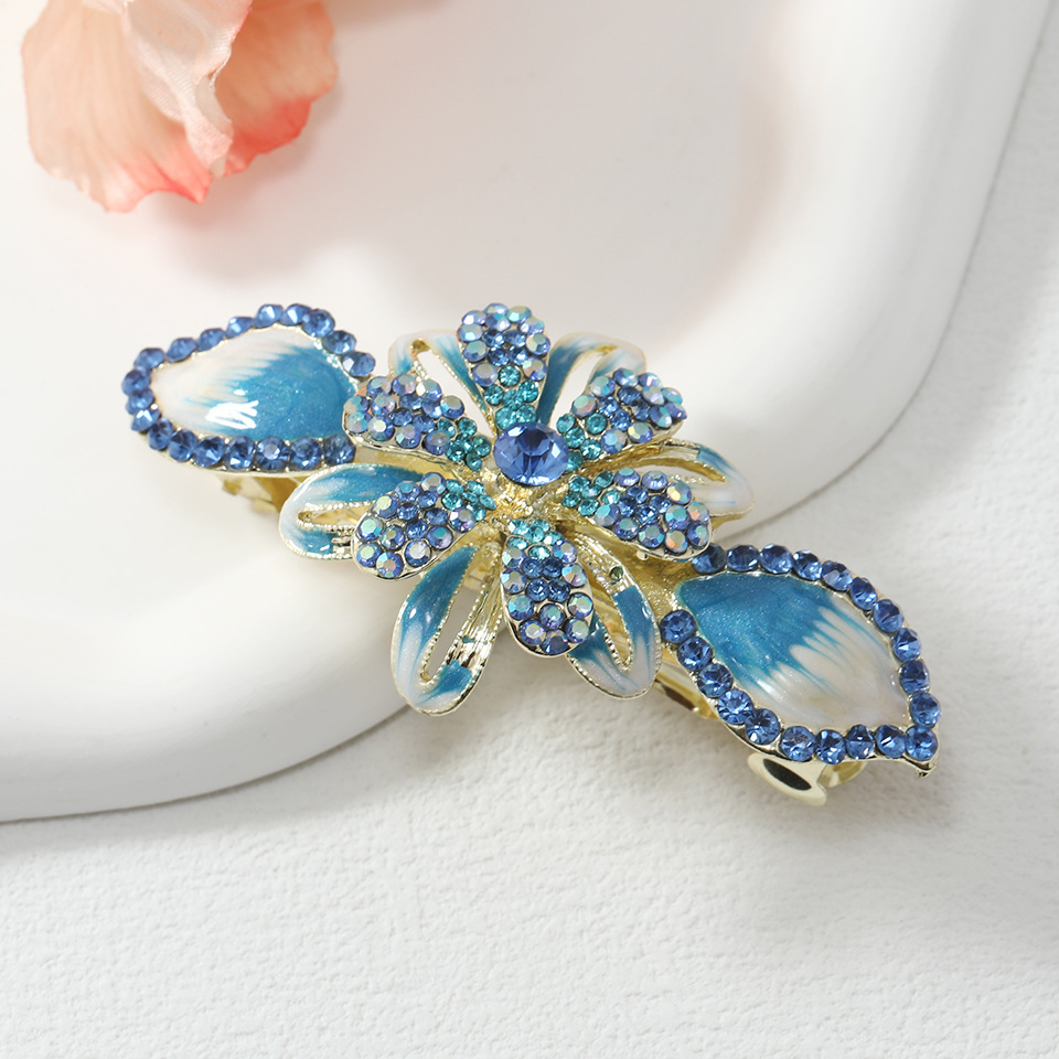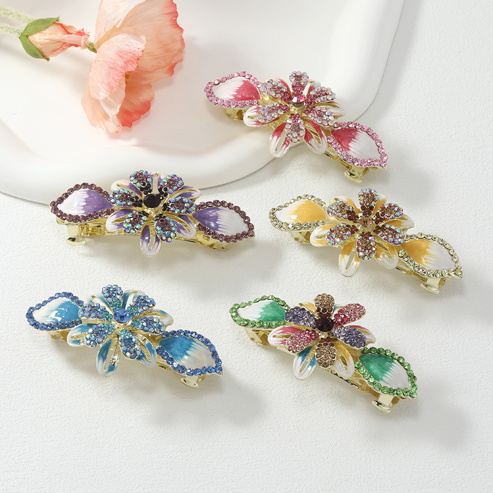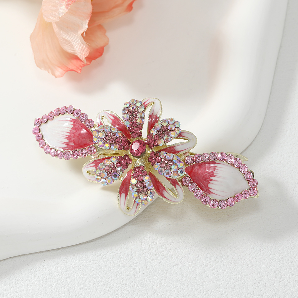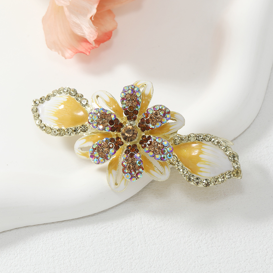 Produsen Yiwu grosir perhiasan cat minyak kecerahan tinggi berlian imitasi bunga jepit rambut setengah diikat gaya indah jepit rambut klip atas kepala