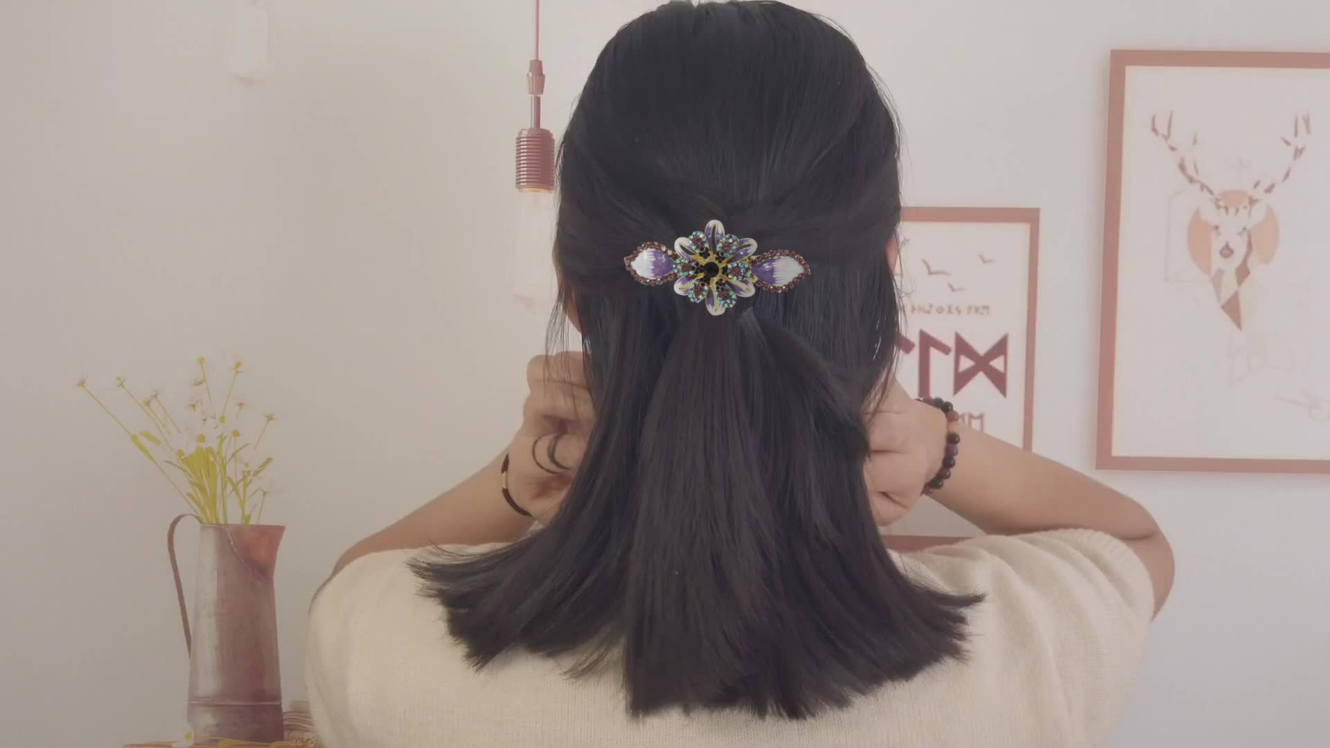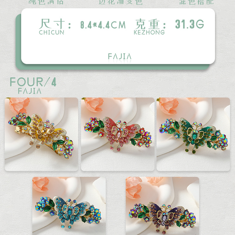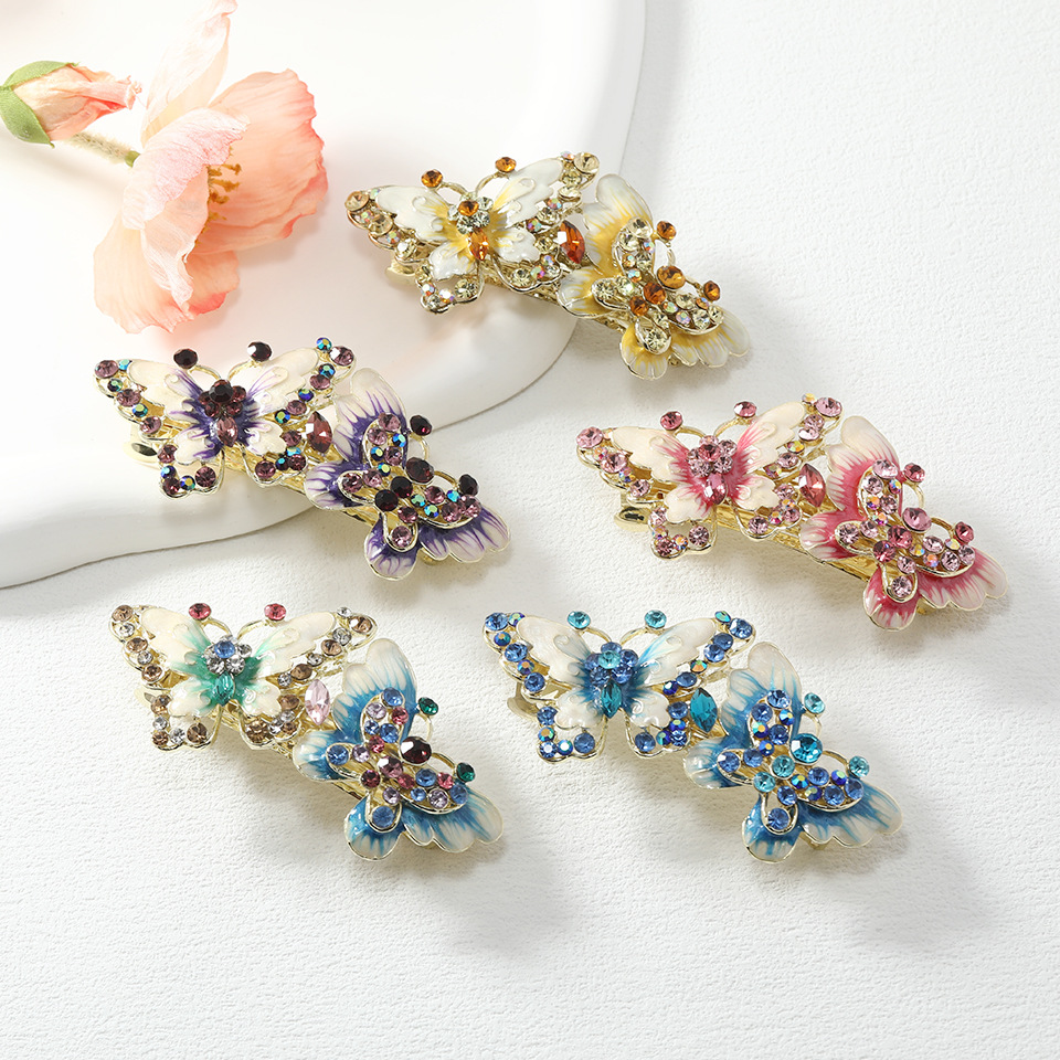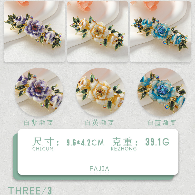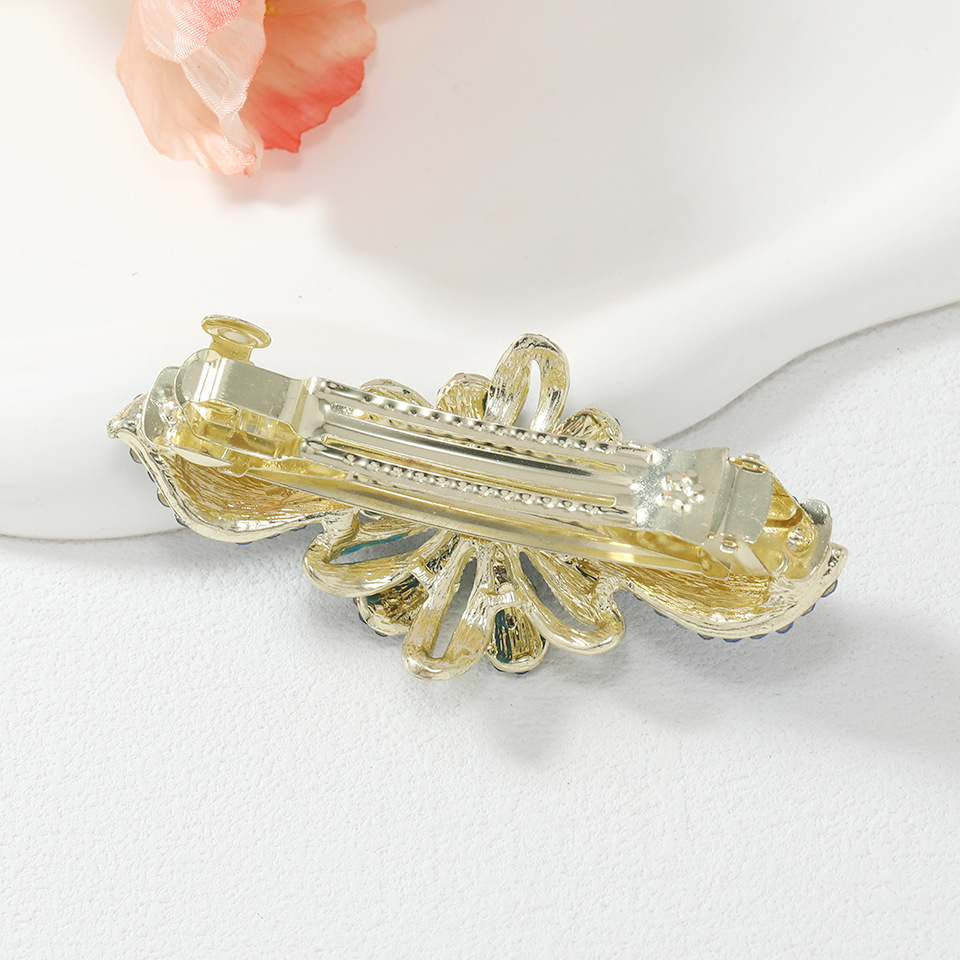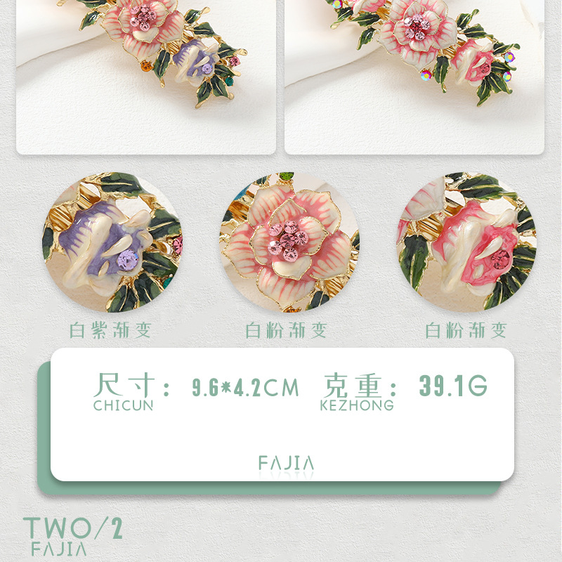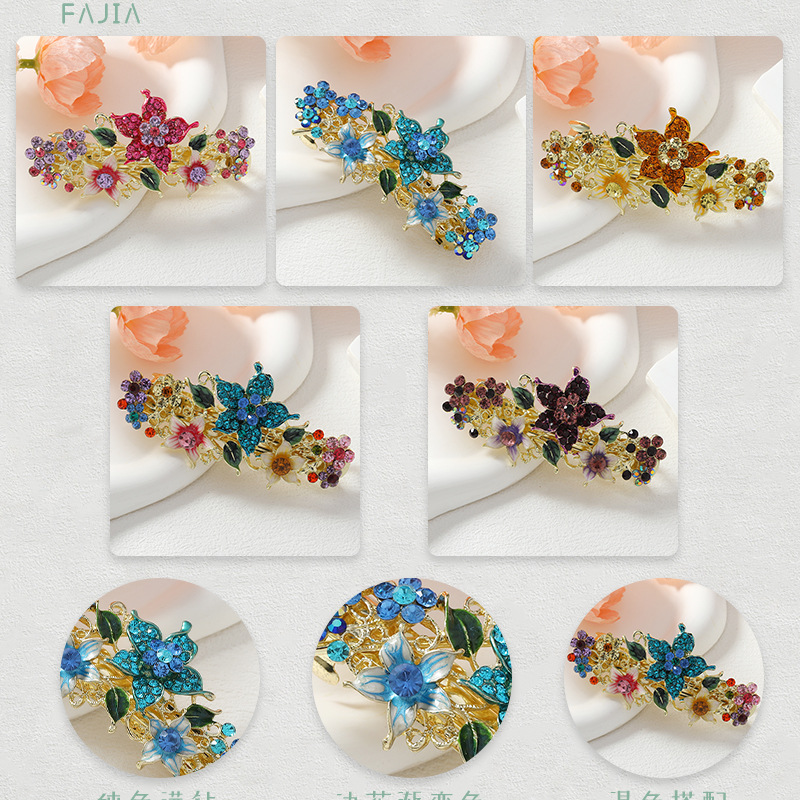 Produsen Yiwu grosir perhiasan cat minyak kecerahan tinggi berlian imitasi bunga jepit rambut setengah diikat gaya indah jepit rambut klip atas kepala