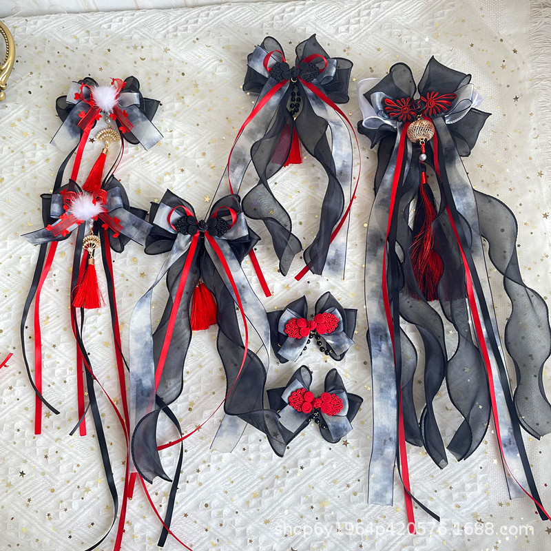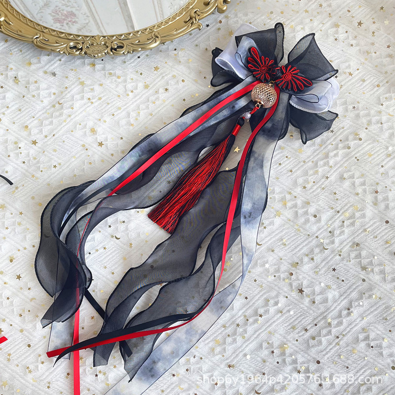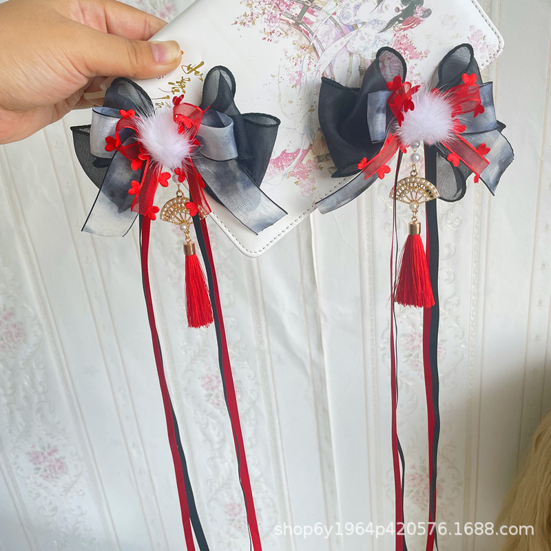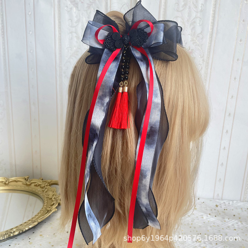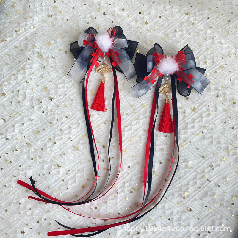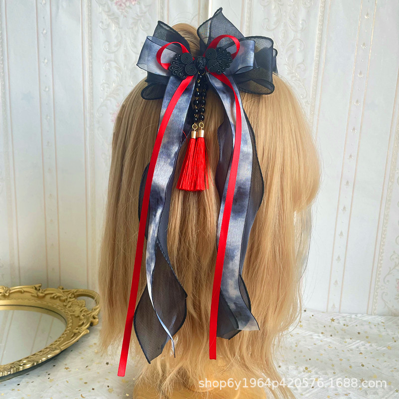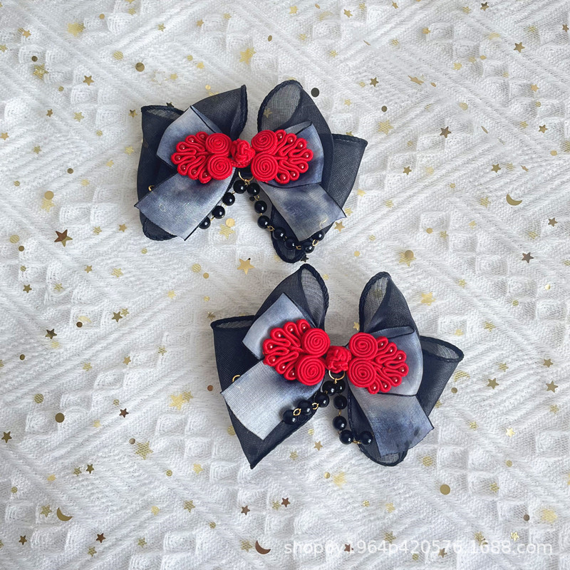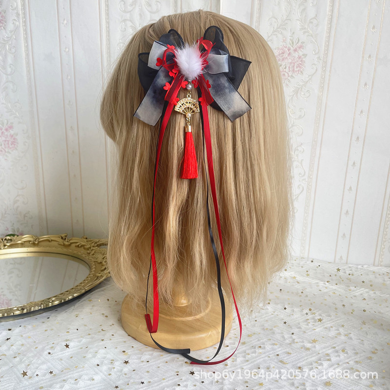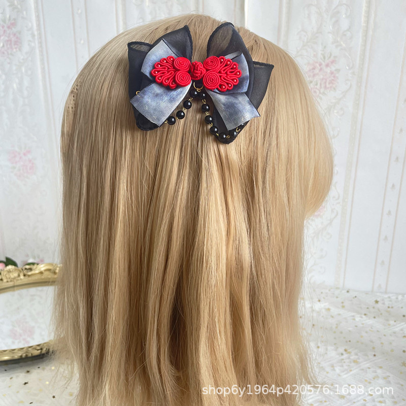Aksesori rambut busur celup tinta gaya kuno Tiongkok baru aksesori pakaian Han gaya nasional mewah OK klip kipas Grup lukisan tinta