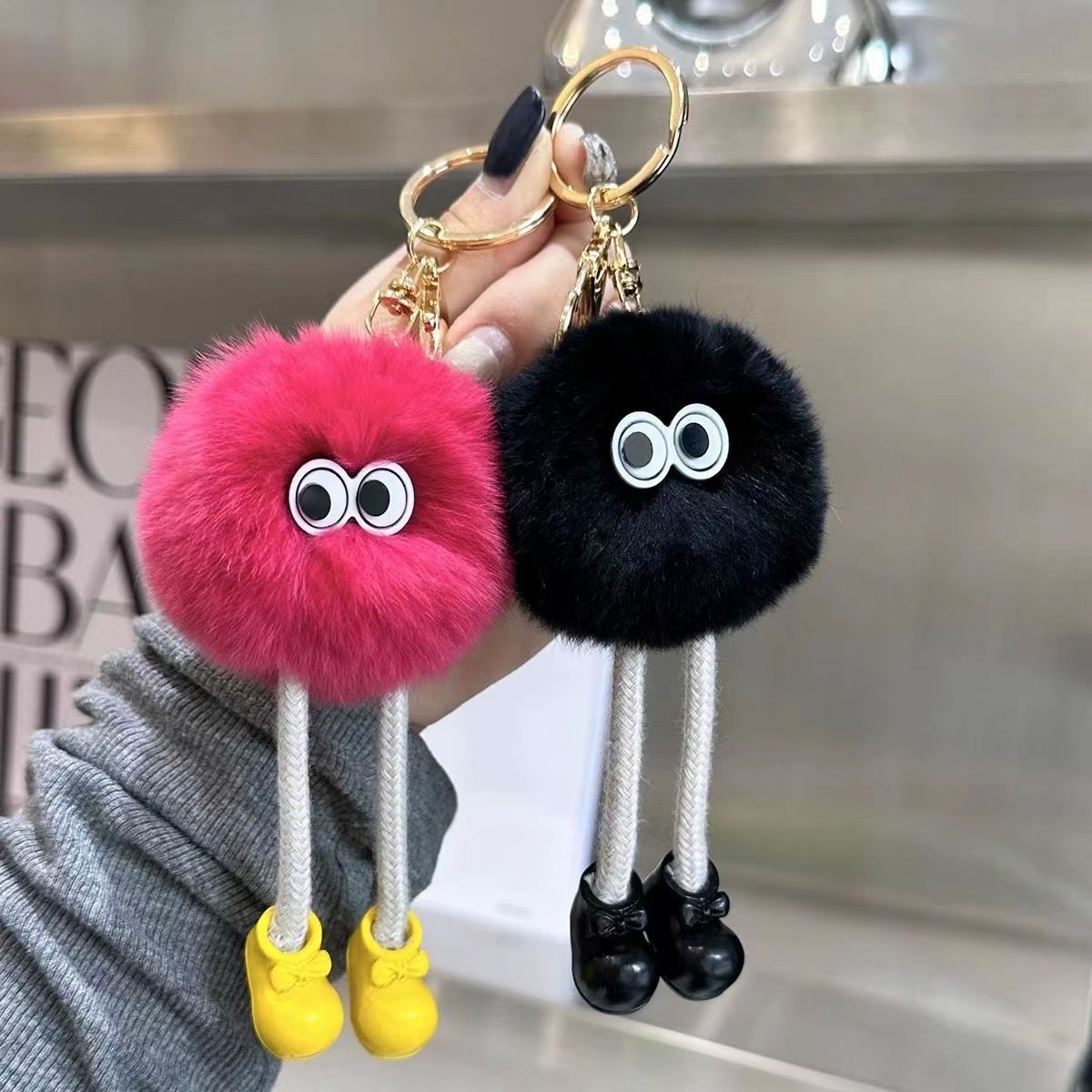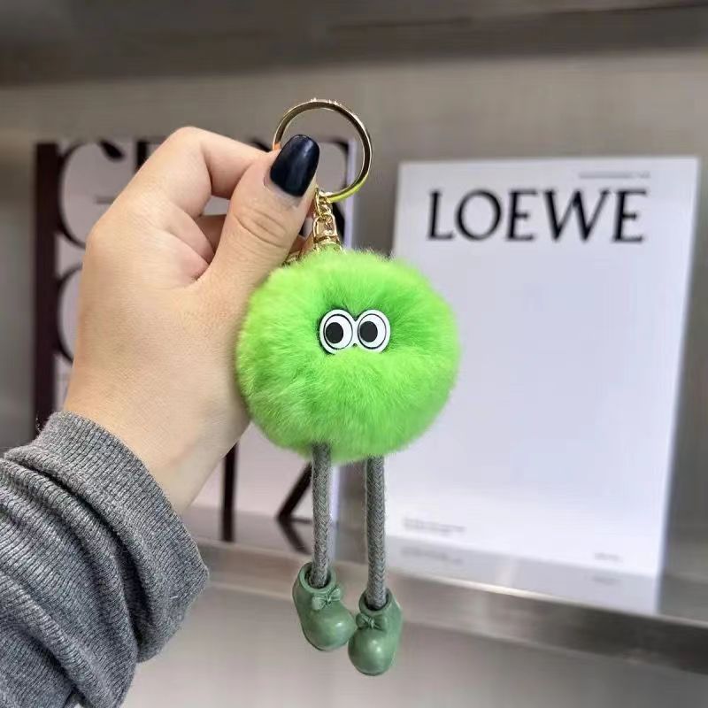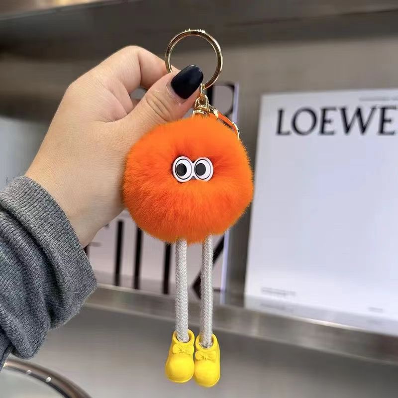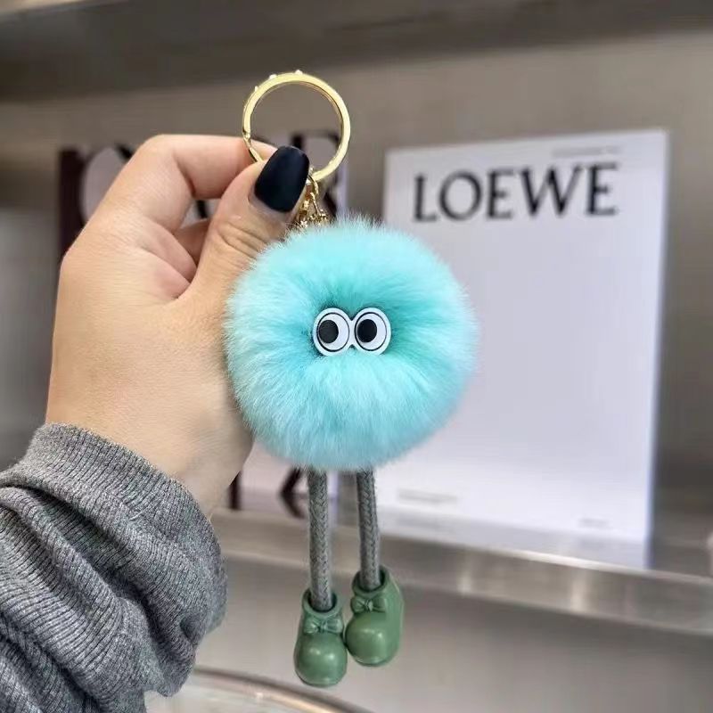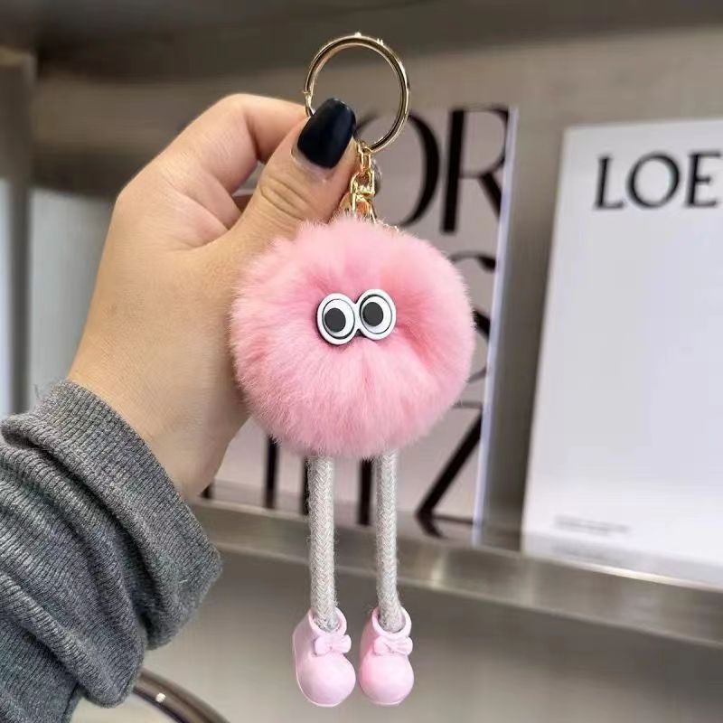 Gantungan Kunci Boneka Kelinci Rex Imitasi Berkaki Panjang Bentuk Bola Batu Bara Kecil, Liontin Serbaguna, Gantungan Tas Kartun