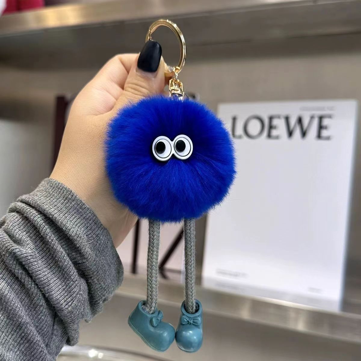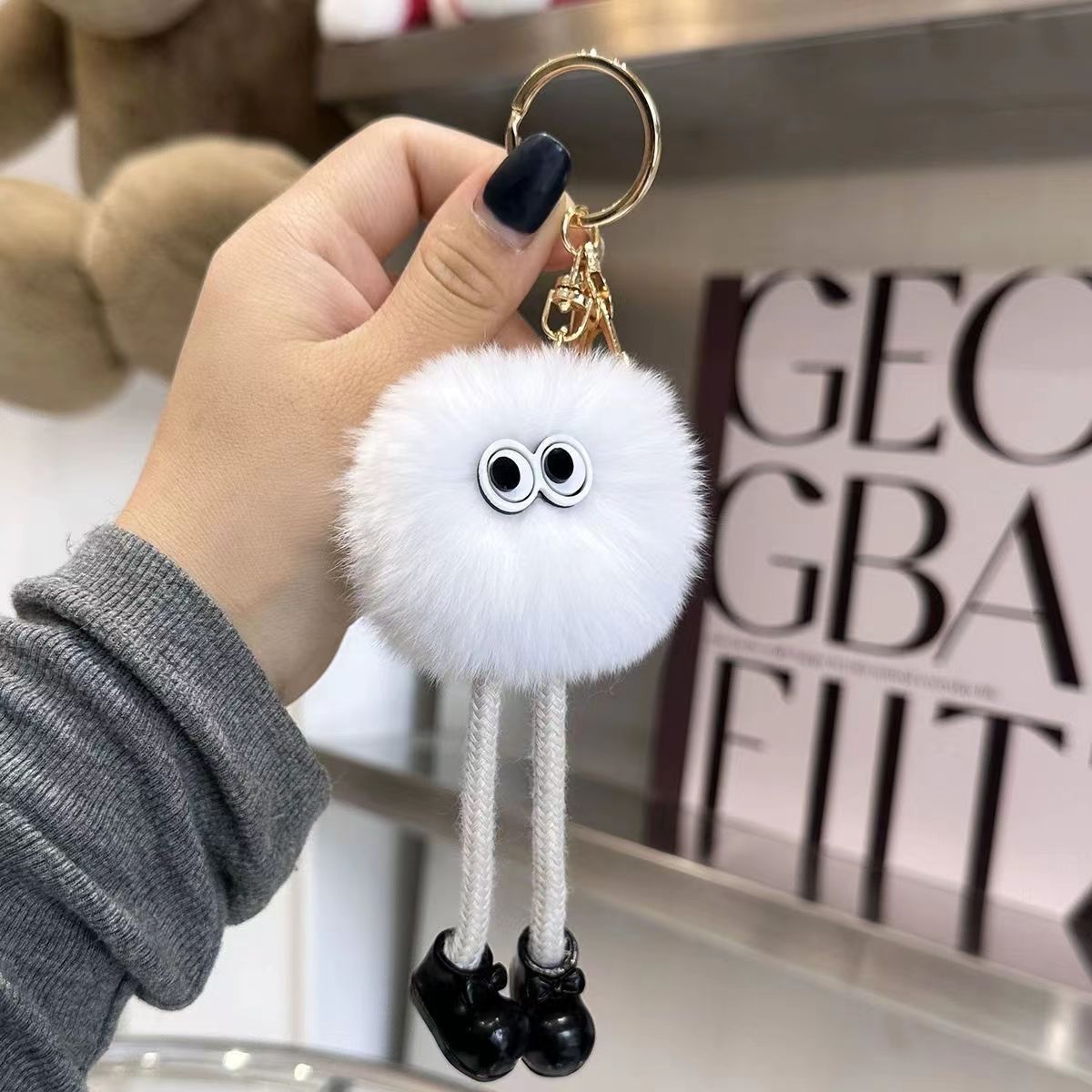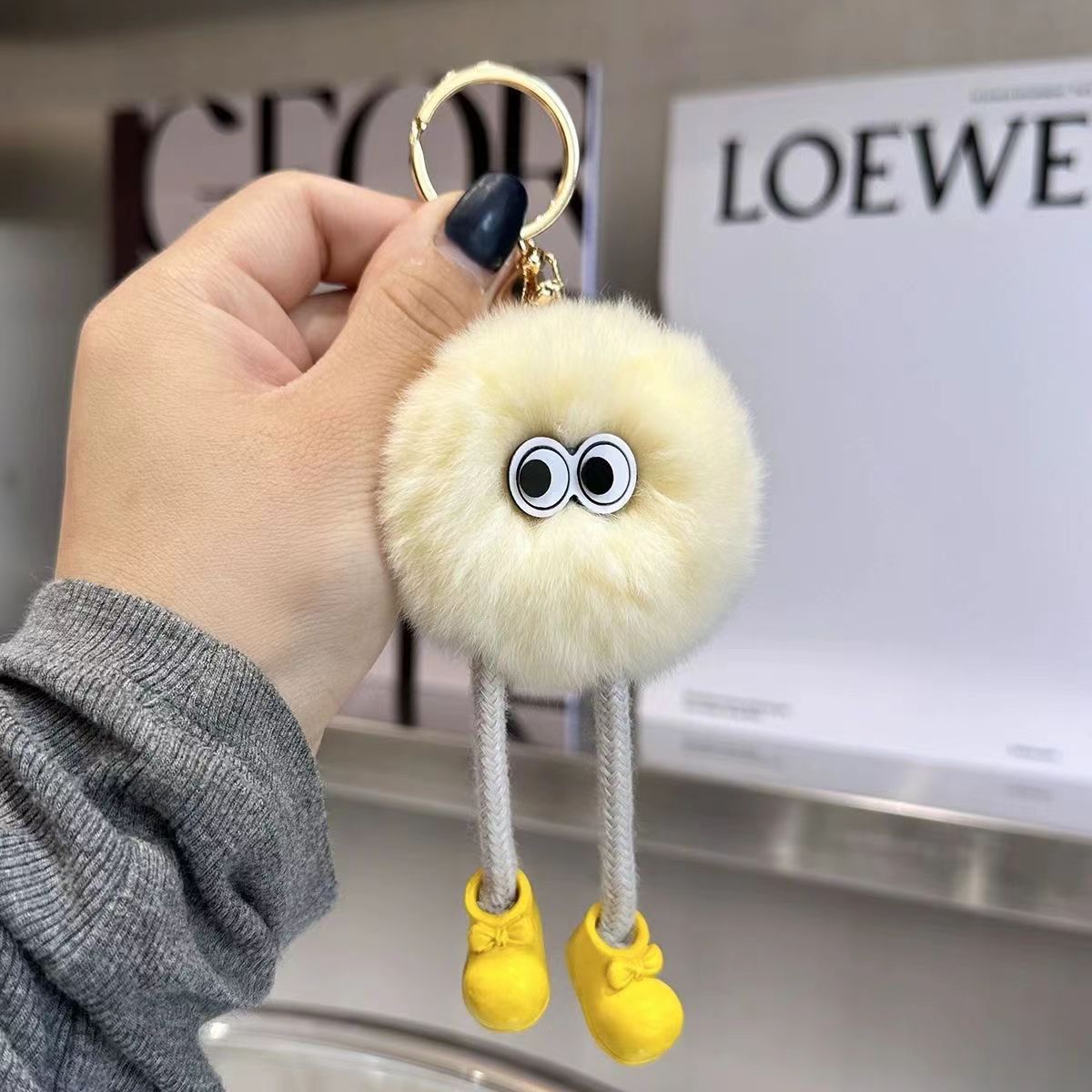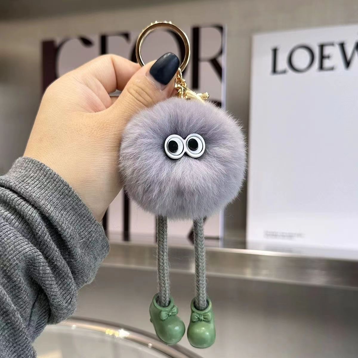 Gantungan Kunci Boneka Kelinci Rex Imitasi Berkaki Panjang Bentuk Bola Batu Bara Kecil, Liontin Serbaguna, Gantungan Tas Kartun