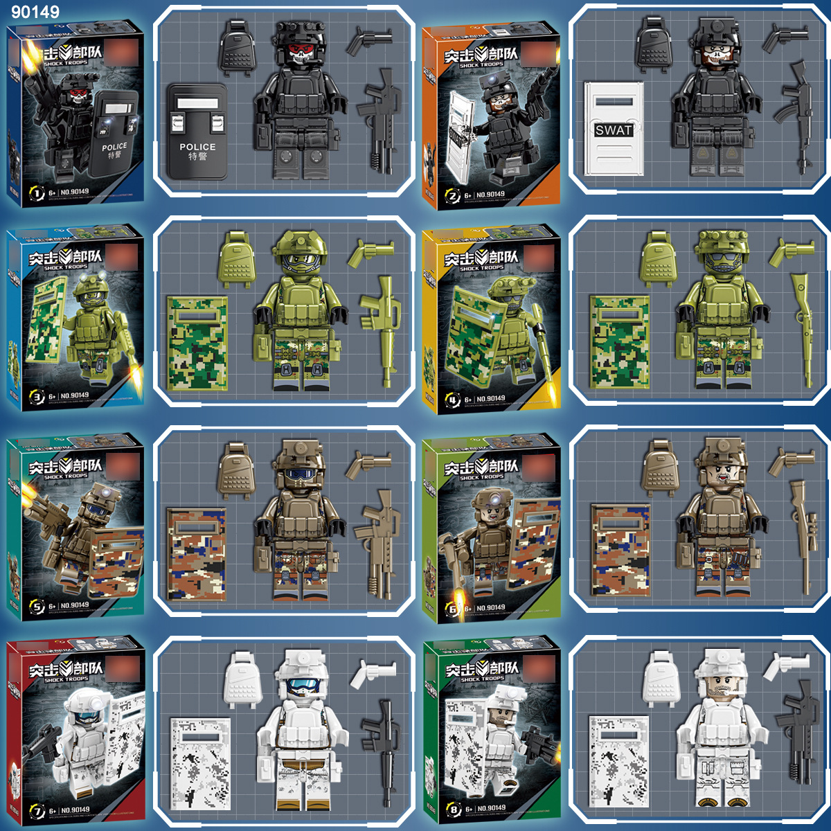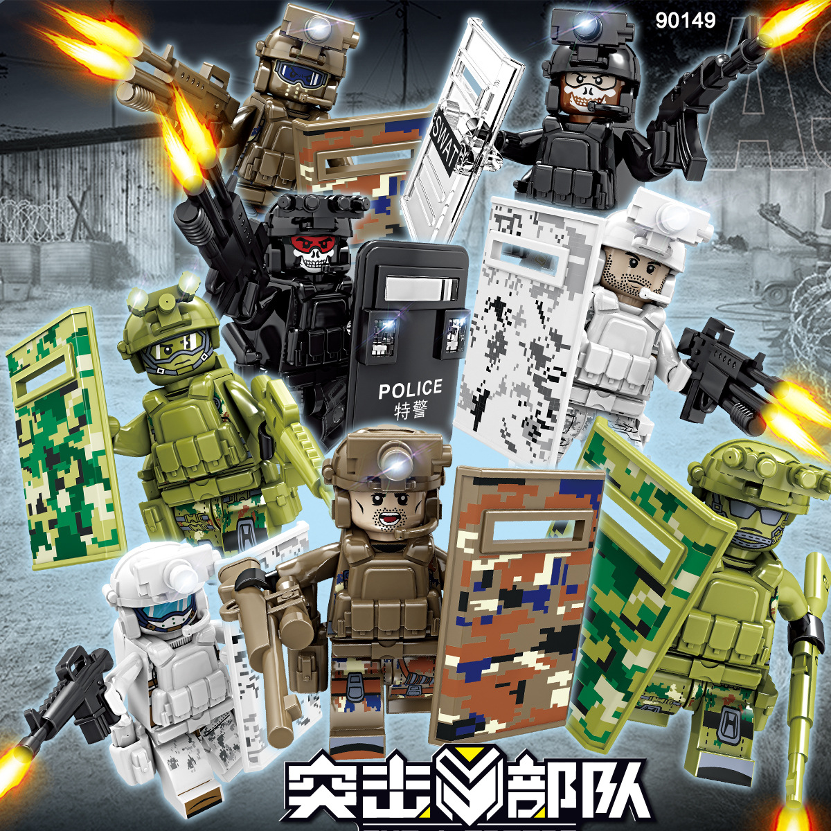 Setelan Pria polisi spesial kedap ledakan kota lintas batas setelan senjata militer anak laki-laki blok bangunan dirakit boneka pasukan khusus 6moc